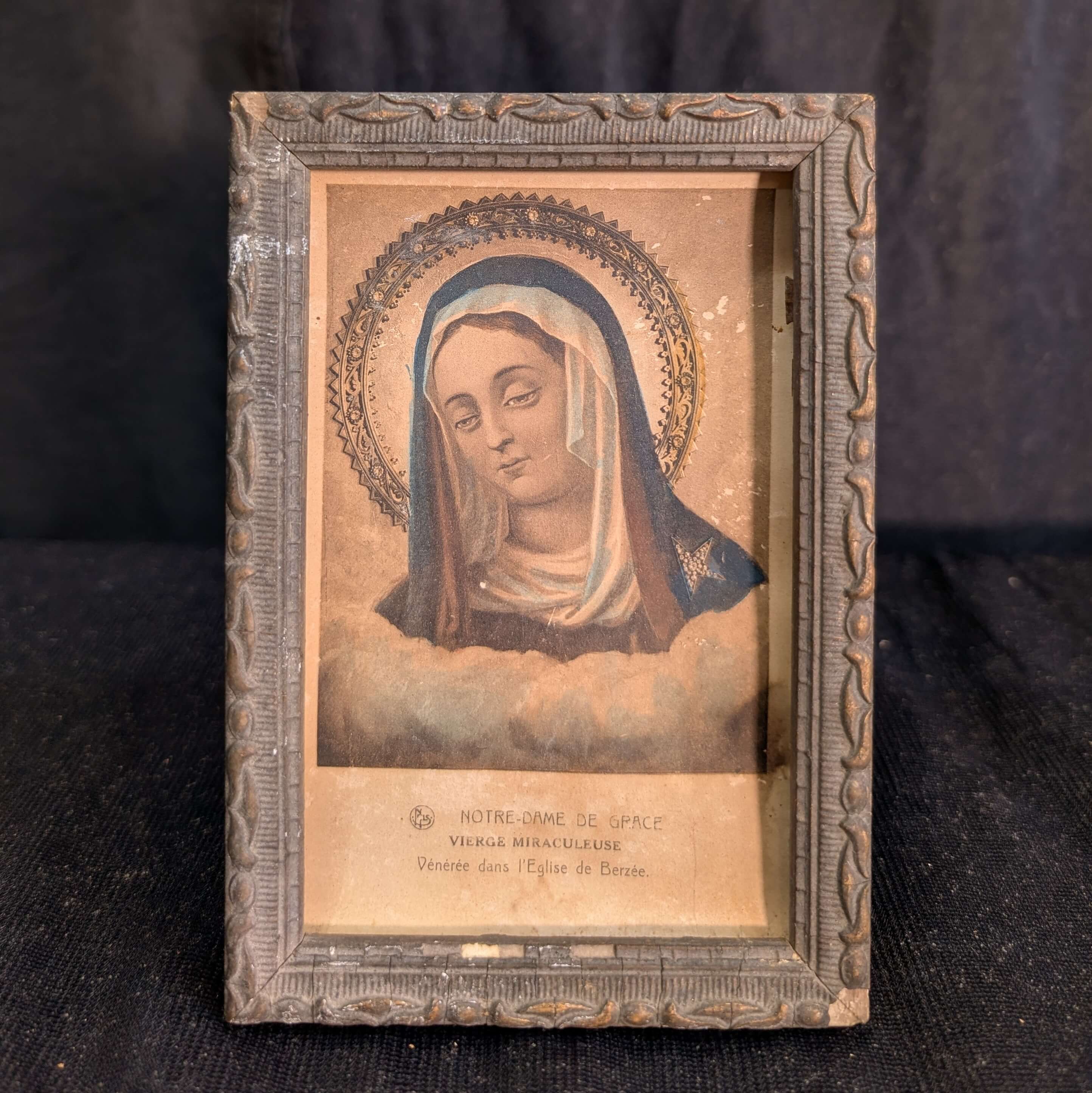 Our product shown on this page Crypt Find Miniature French Framed Print of Our Lady of Grace (SOLD) is currently available for hire.