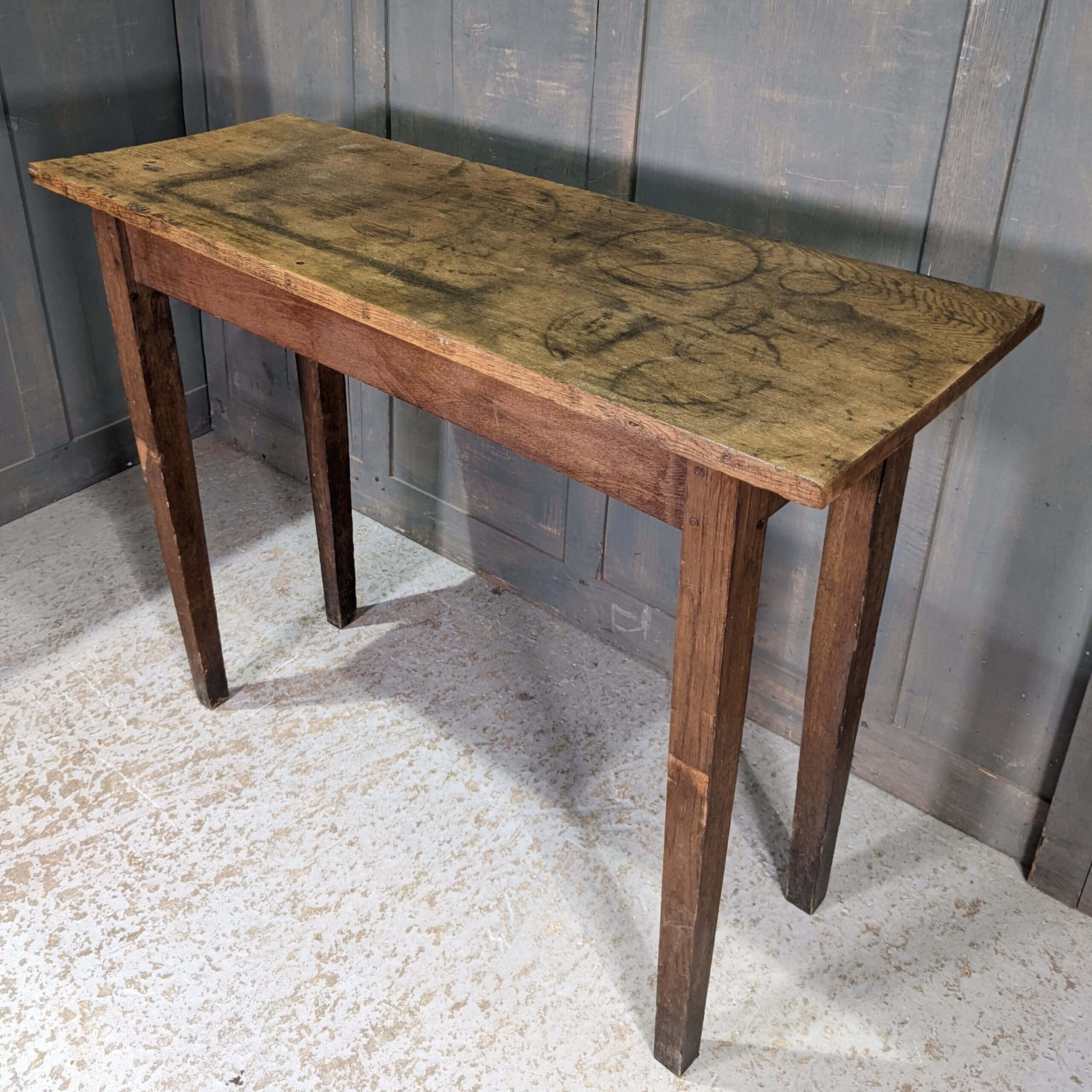 Crypt Find Small Battered & Stained Antique Oak Narrow Hall Table (SOLD)