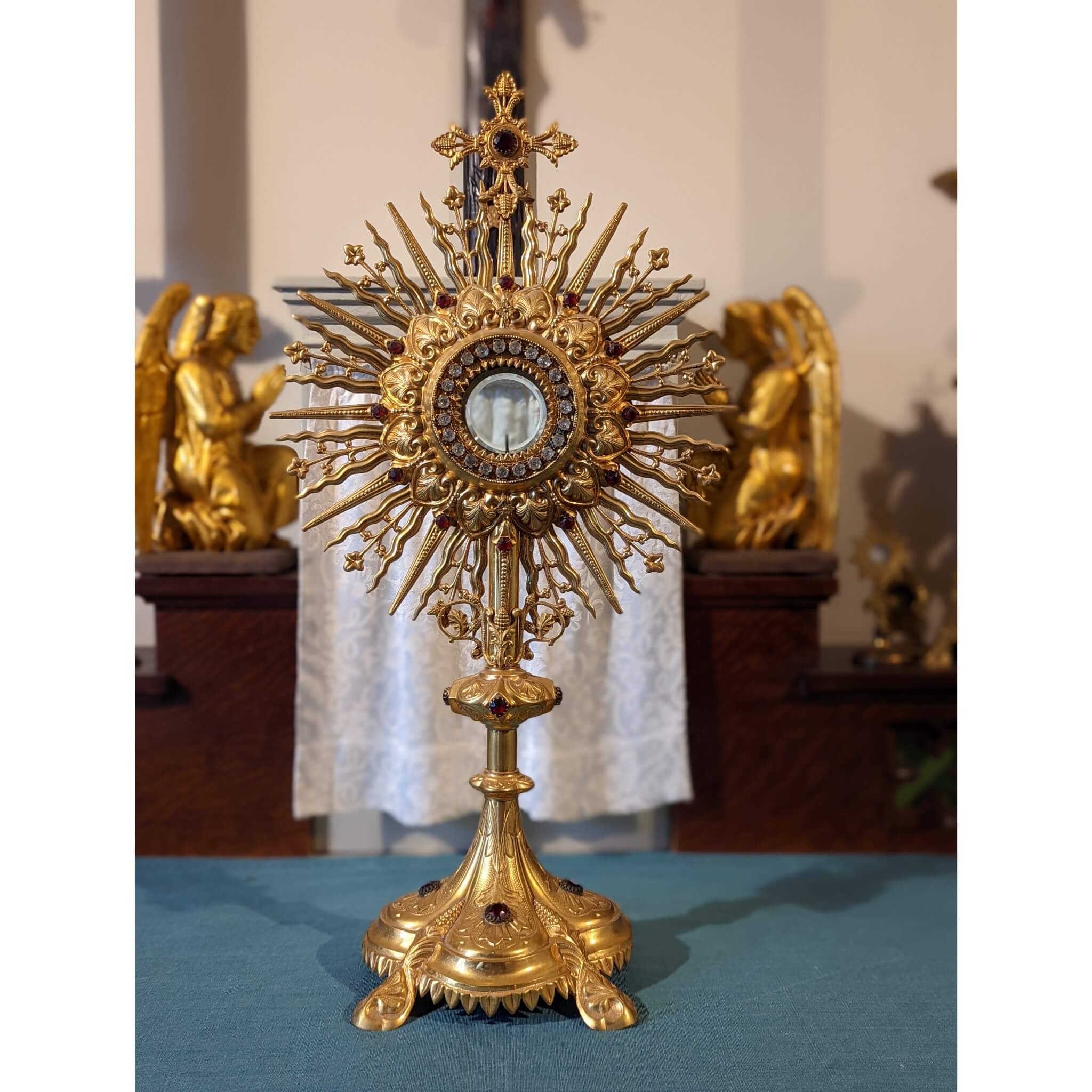 Dazzling Antique Gilded & Bejewelled French Monstrance with Case (SOLD)