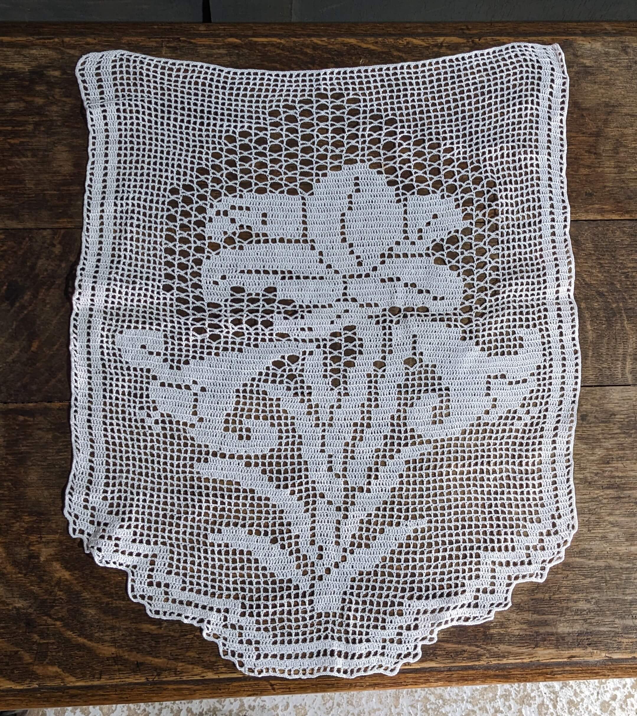 Our product shown on this page Delicately Embroidered White Lily Small White Thread Cloth Covering Hanging is currently available for hire.