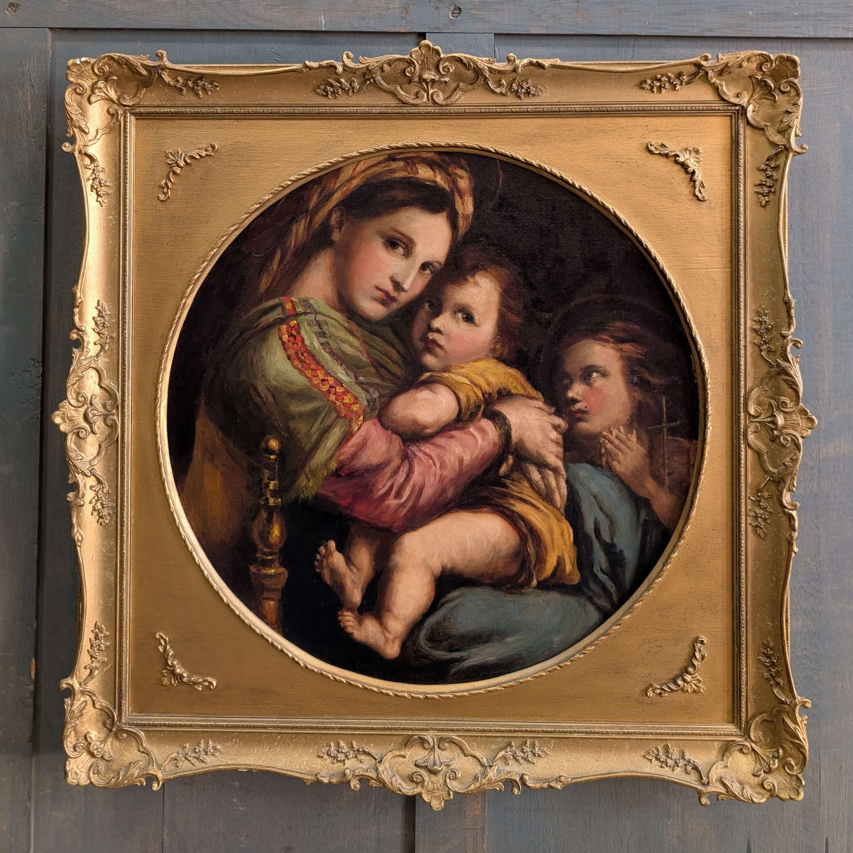 Our product shown on this page Early 20th Century Italian Religious Painting after Raphael’s Madonna of the Chair (SOLD) is currently available for hire.