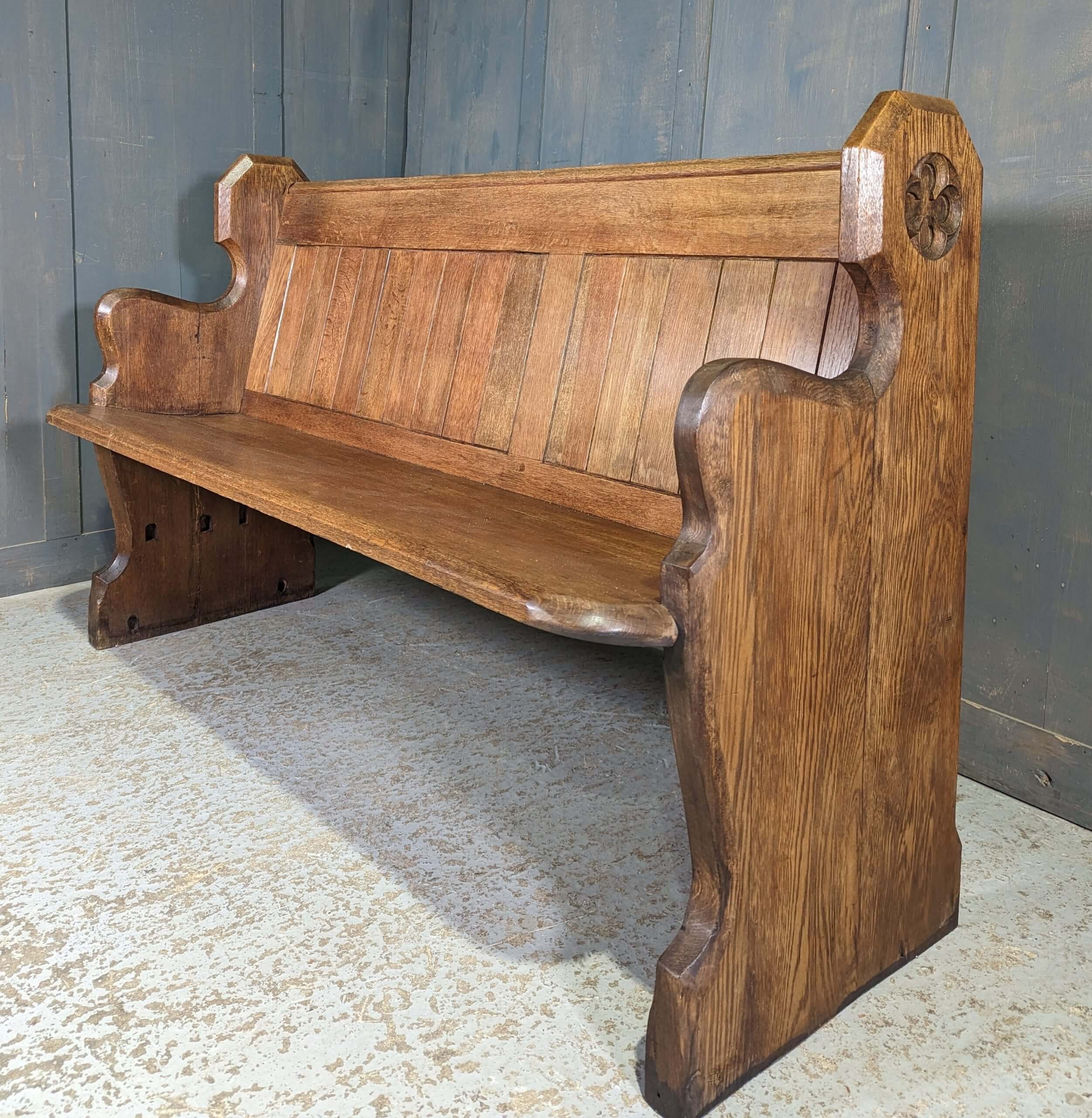 Eccles Antique Solid Oak Church Chapel Pews Benches with Carved Gothic Quatrefoils (SOLD)