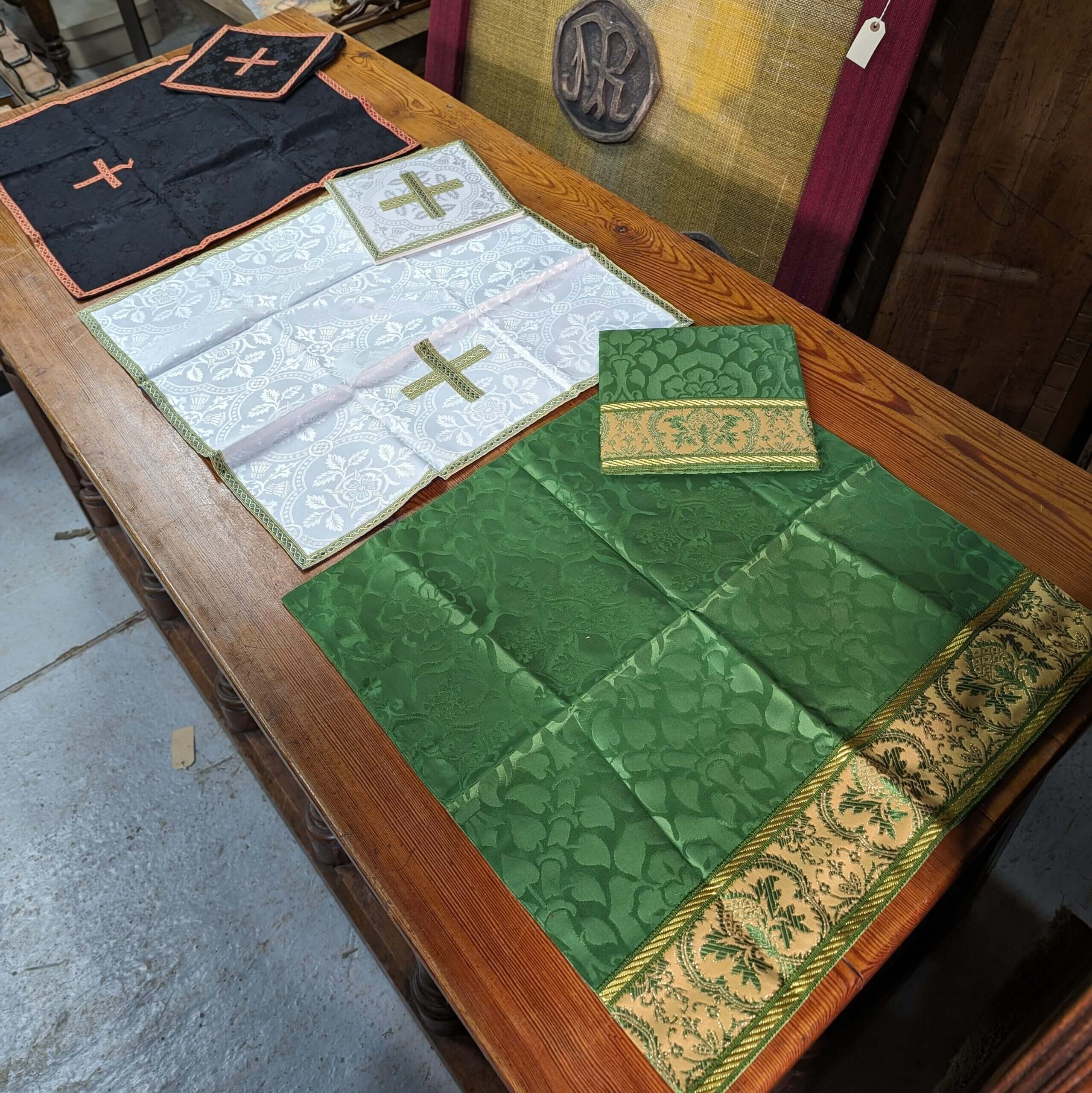 Ecclesiastical Religious Church Vintage Textiles – 3 Burses & Veils in Black White & Green (SOLD)