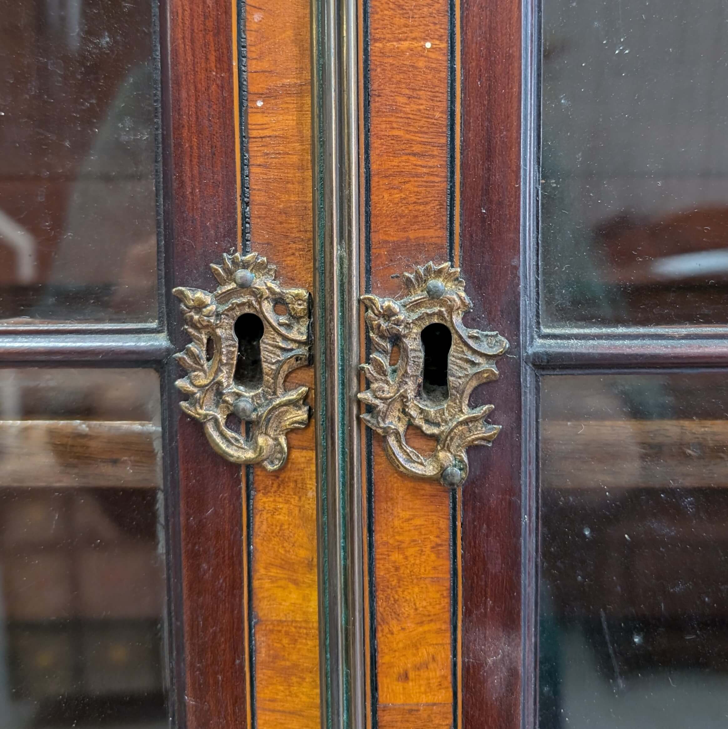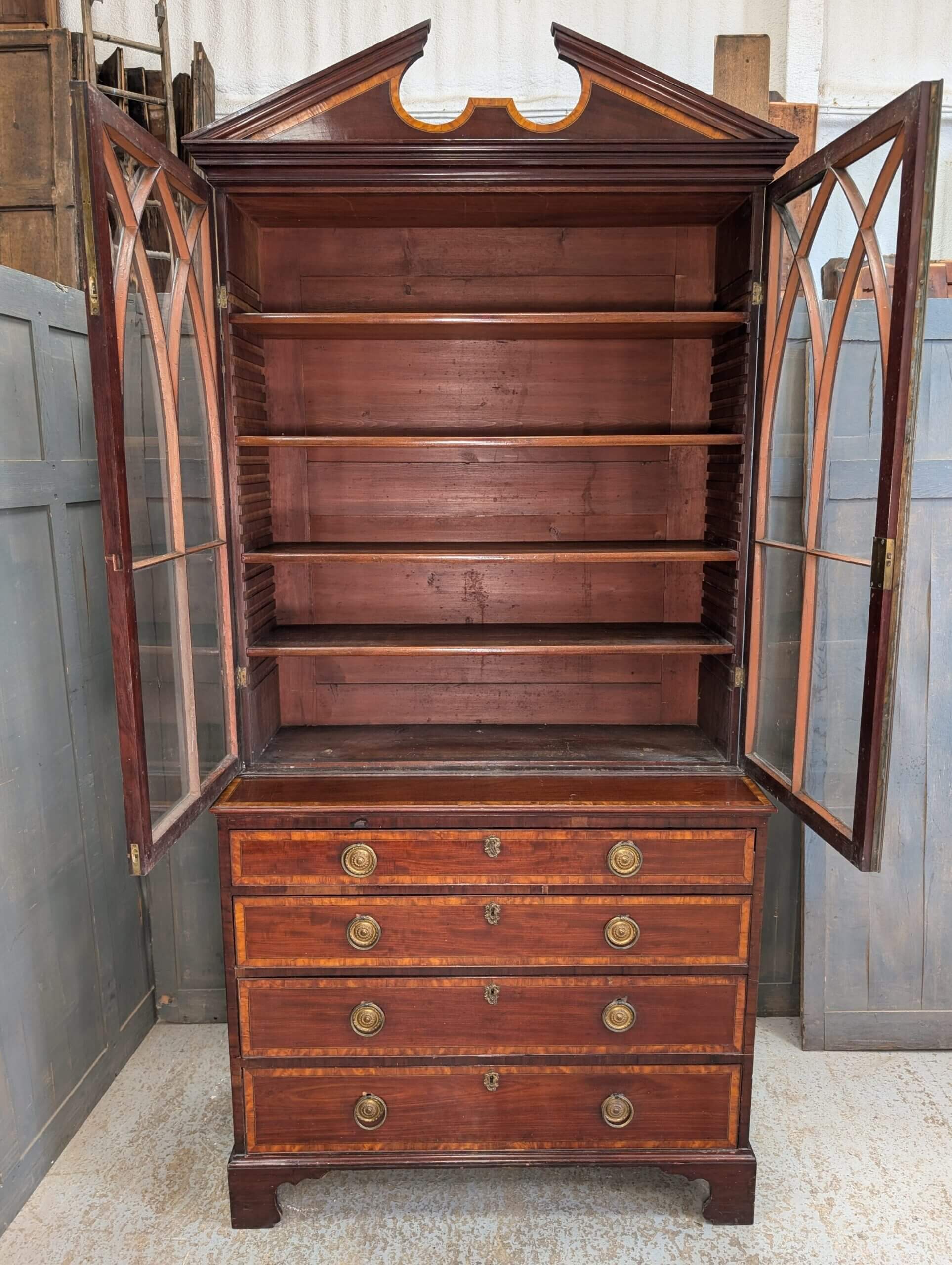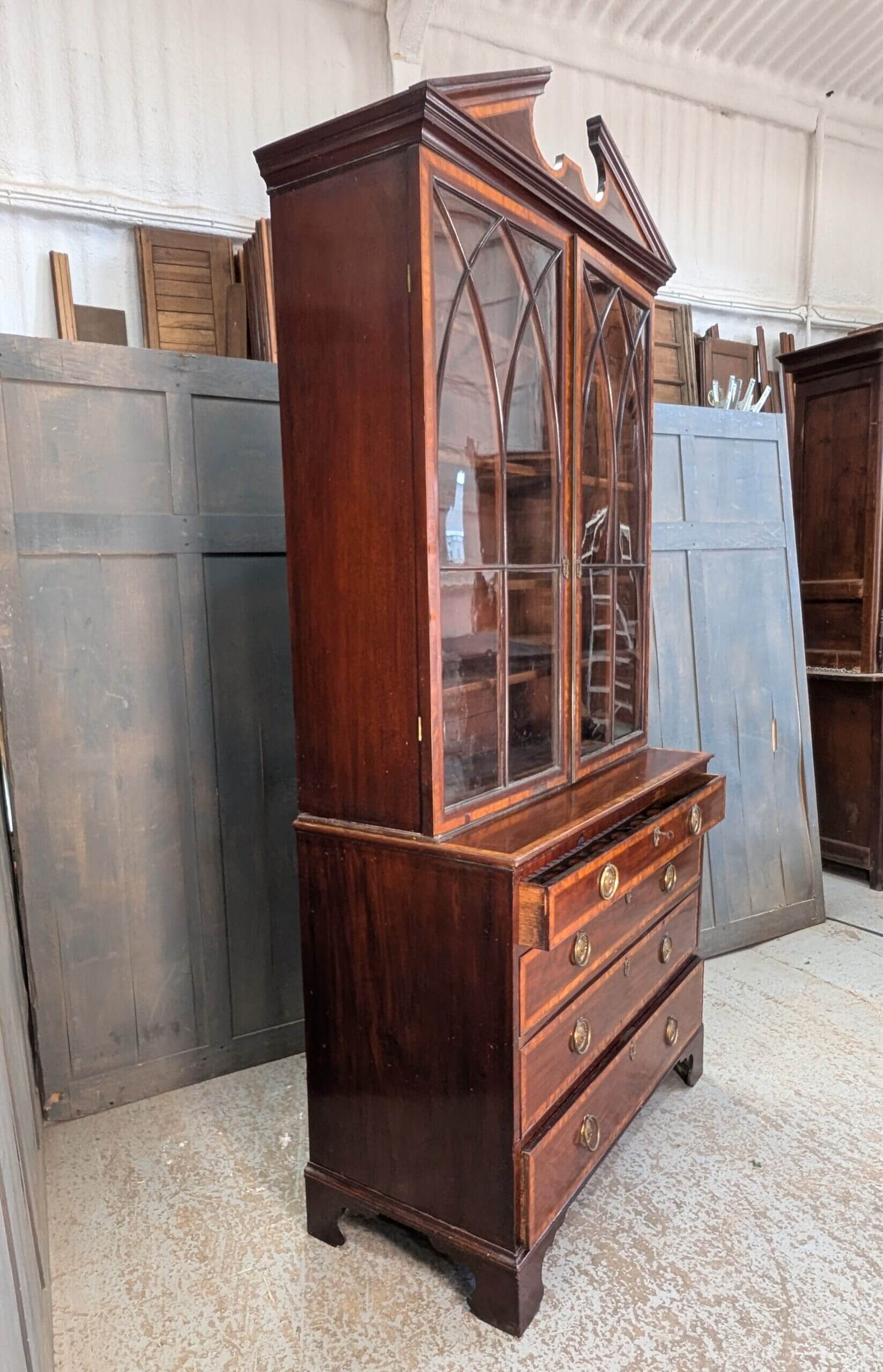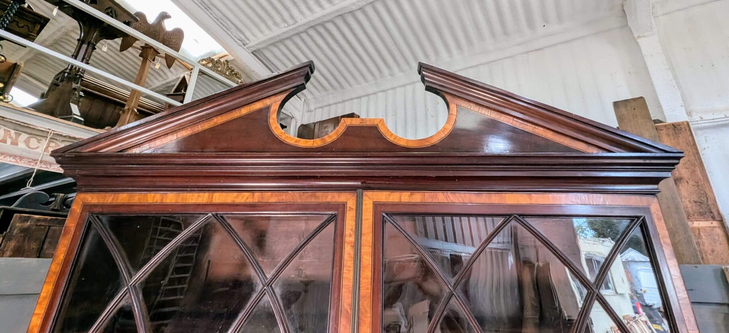 Our product shown on this page Elegant Late Georgian Glazed Satinwood Banded Mahogany Bookcase on Chest with Bracket Feet is currently available for hire.