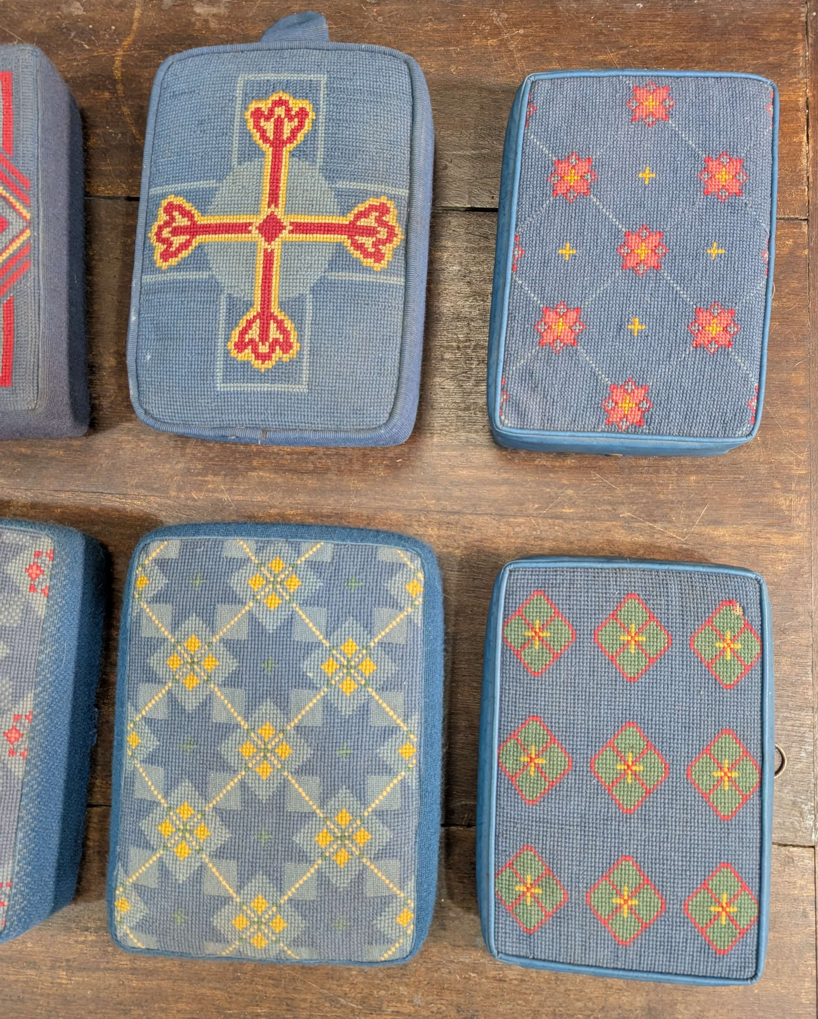 Our product shown on this page Embroidered Harlequin Set of 8 Church Kneelers Hassocks Cushions is currently available for hire.