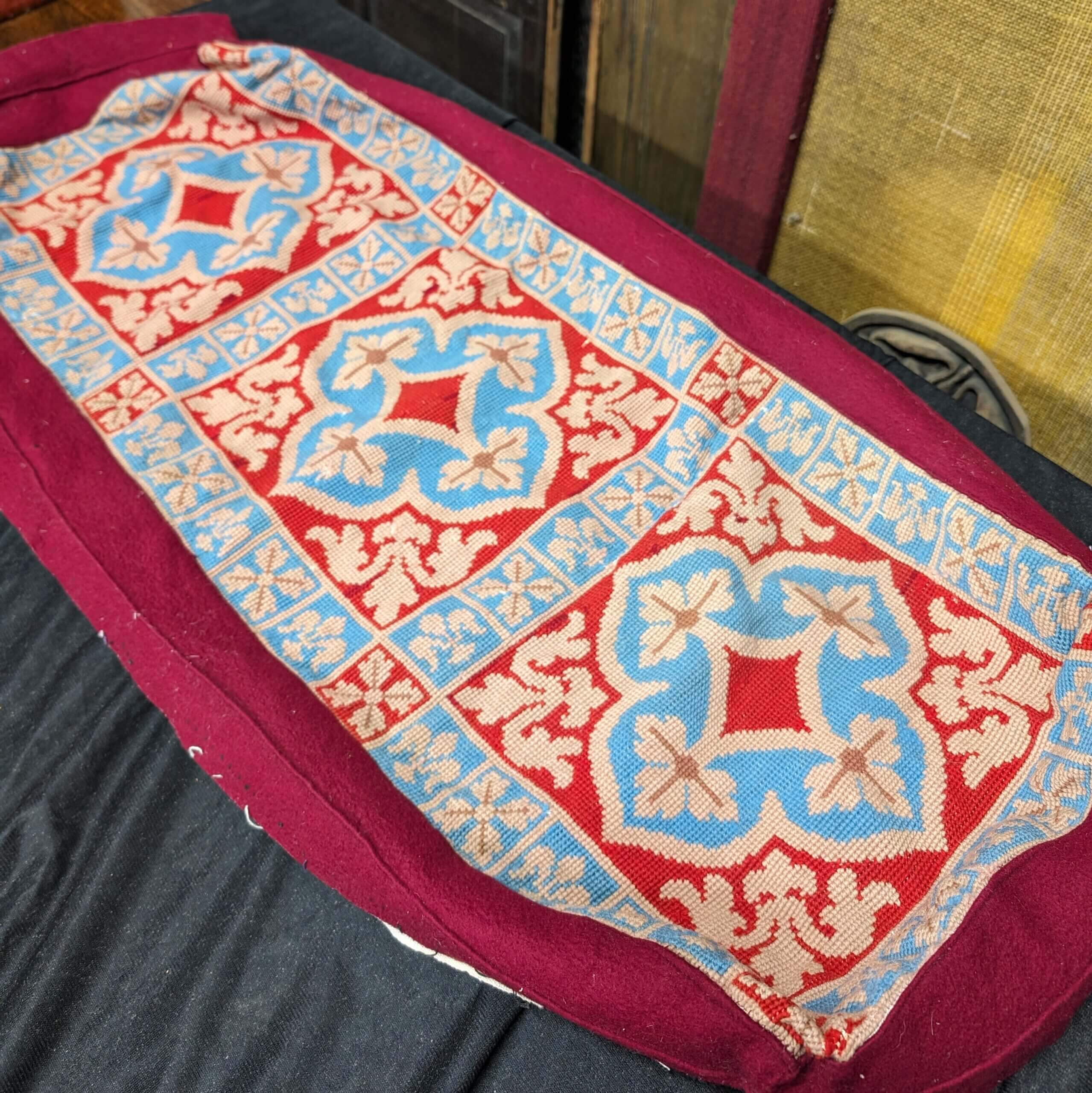 Our product shown on this page Embroidery Gothic Cover for Large Cushion Kneeler PROJECT (SOLD) is currently available for hire.