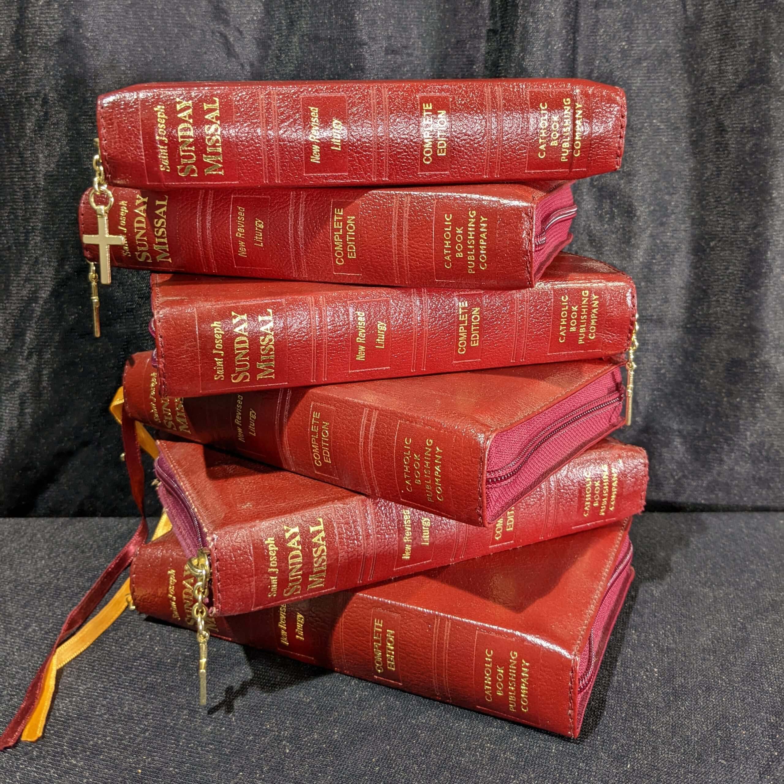 Our product shown on this page Excellent Condition Catholic Zip-Up St Joseph Sunday Missals in Red Leatherette (SOLD) is currently available for hire.