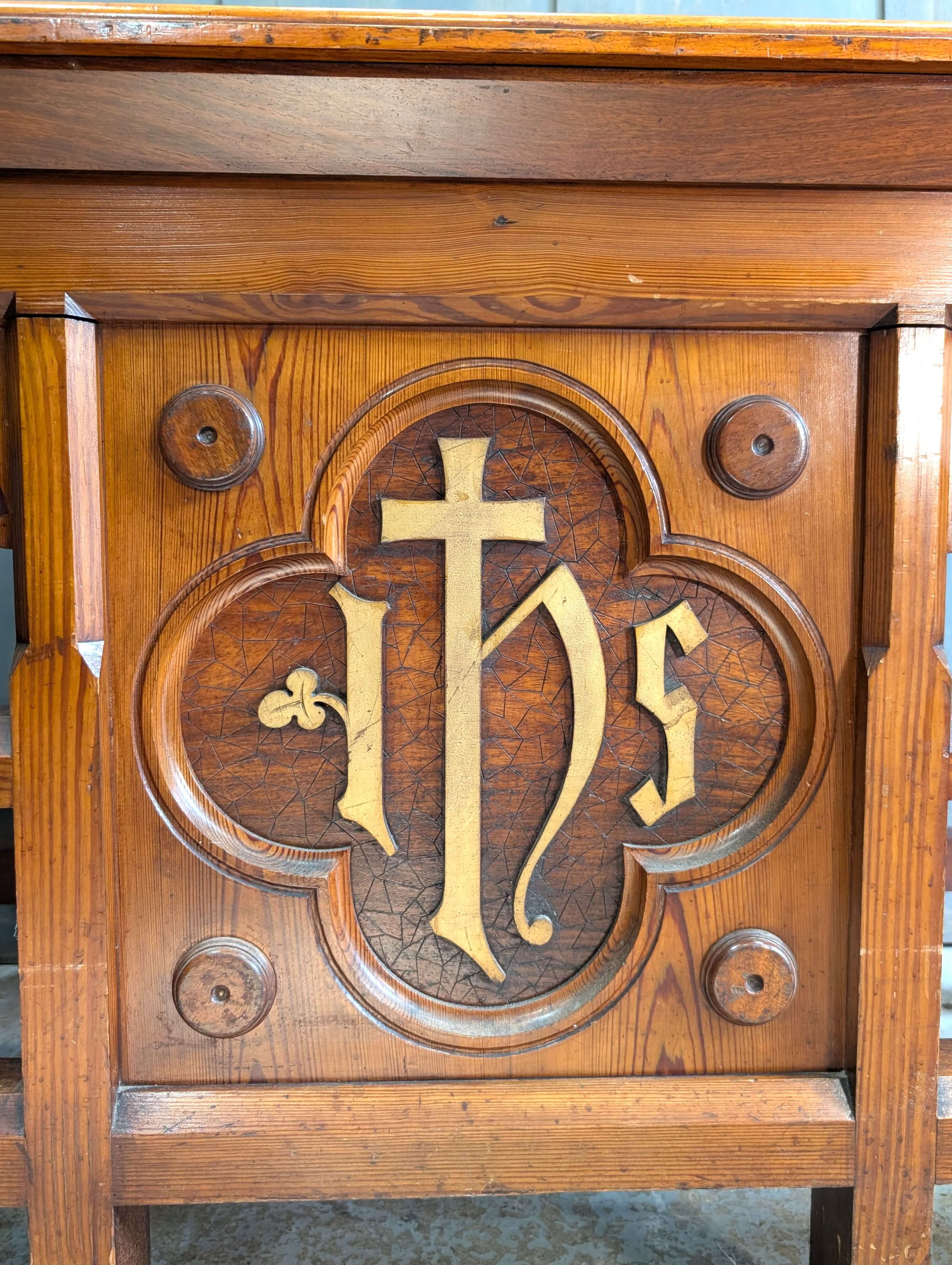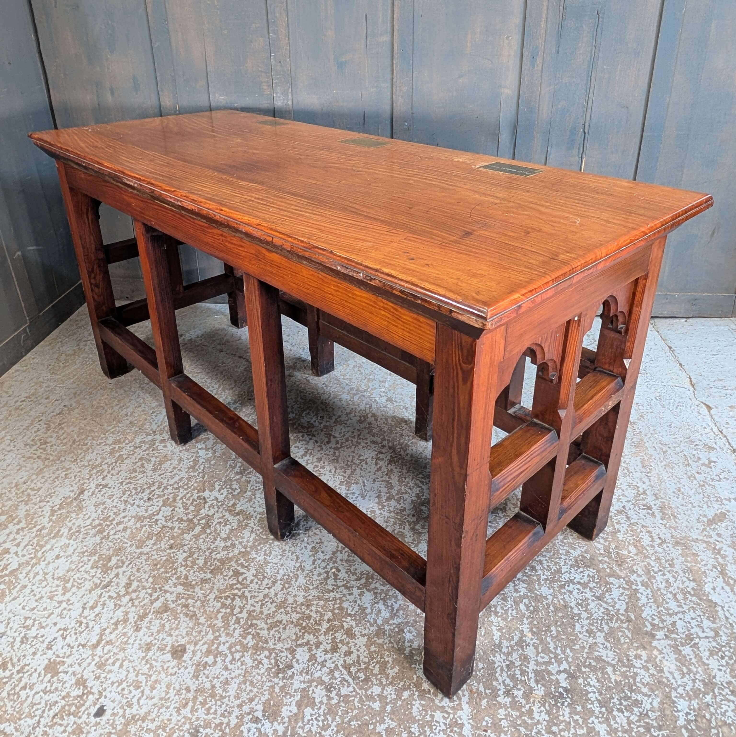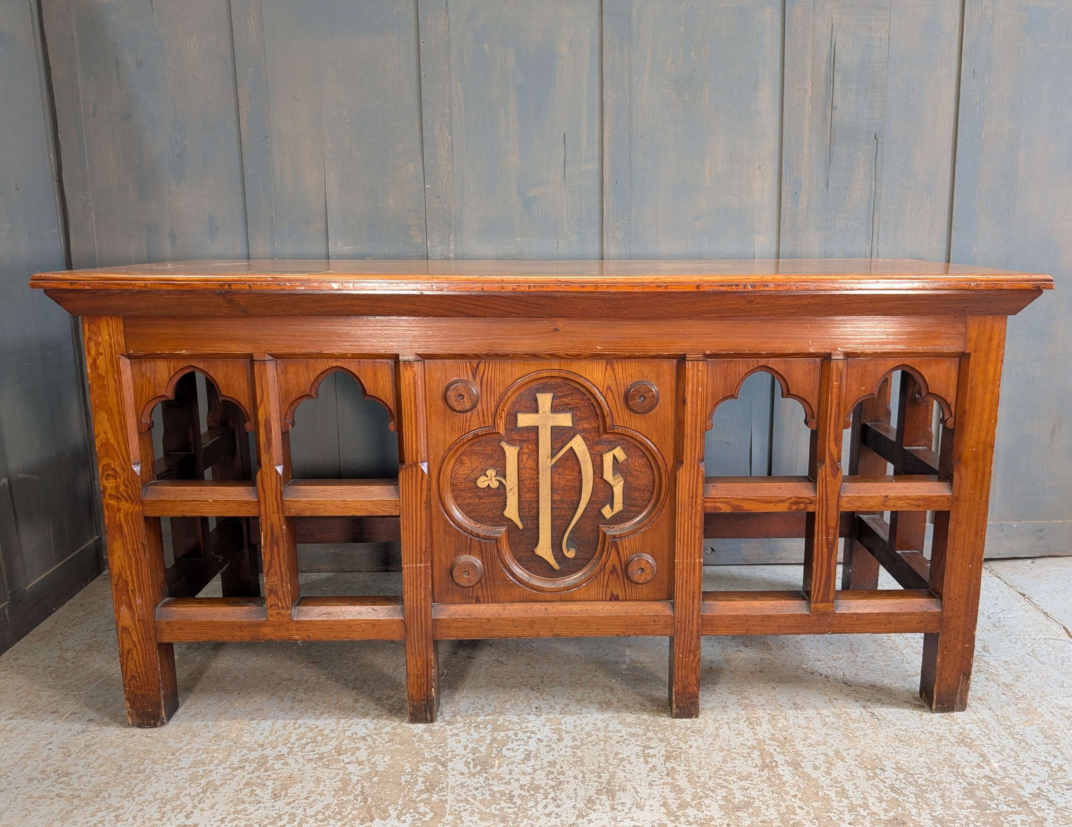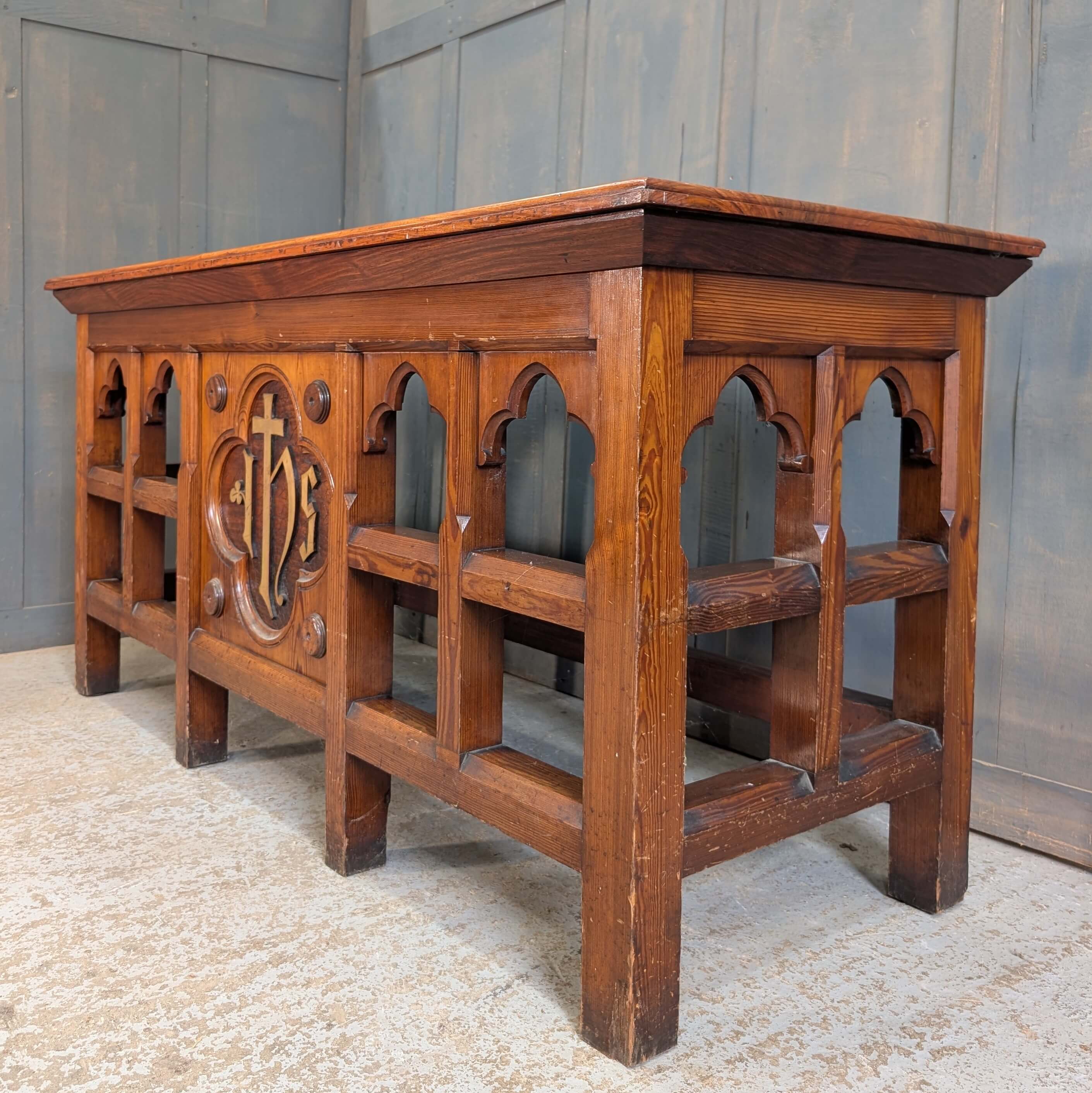 Our product shown on this page Excellent Gothic 1892 Baltic Pine & Teak Church Altar Communion Table is currently available for hire.