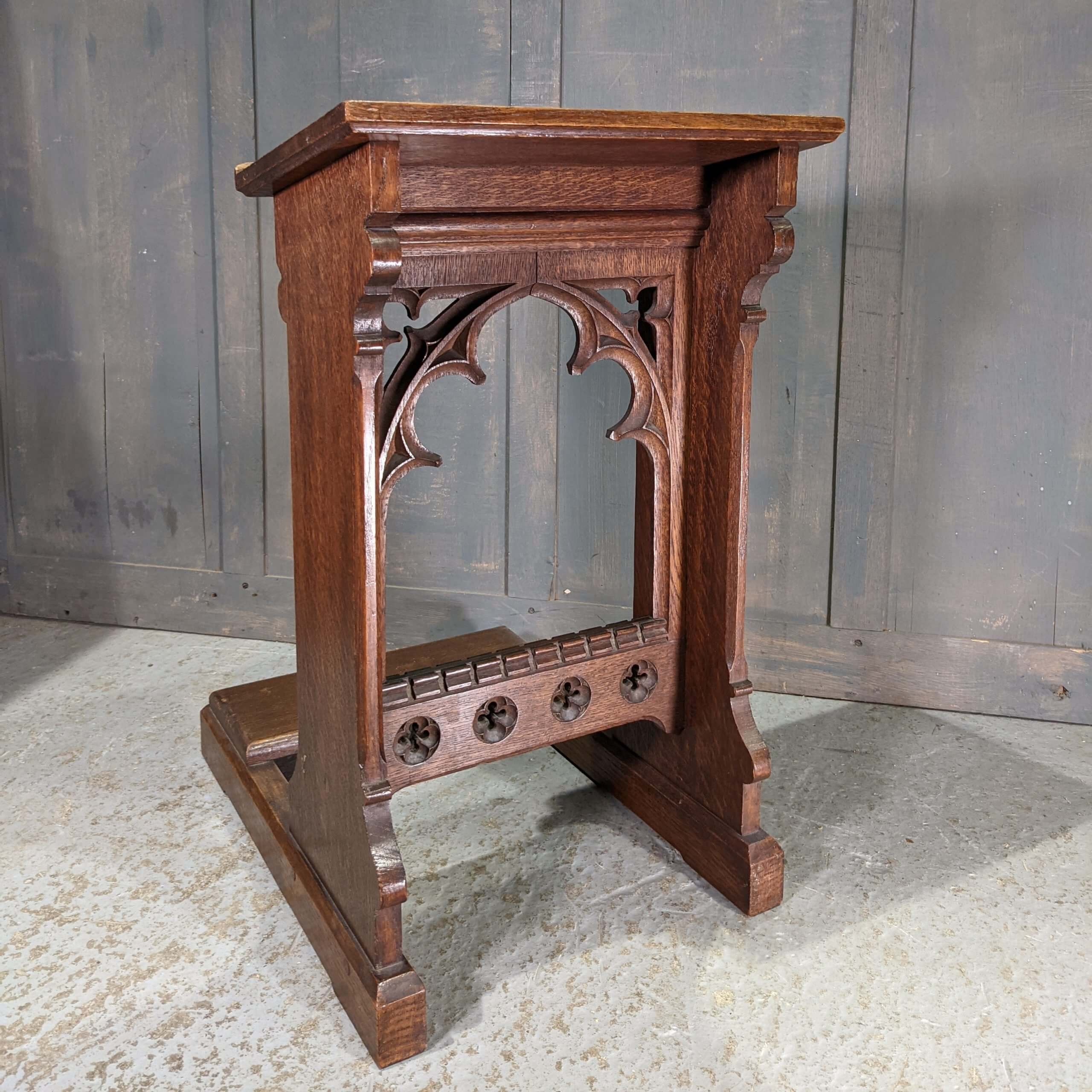 Our product shown on this page Excellent Quality Small Medium to Dark Oak Antique Gothic Prayer Desk Prie Dieu (SOLD) is currently available for hire.