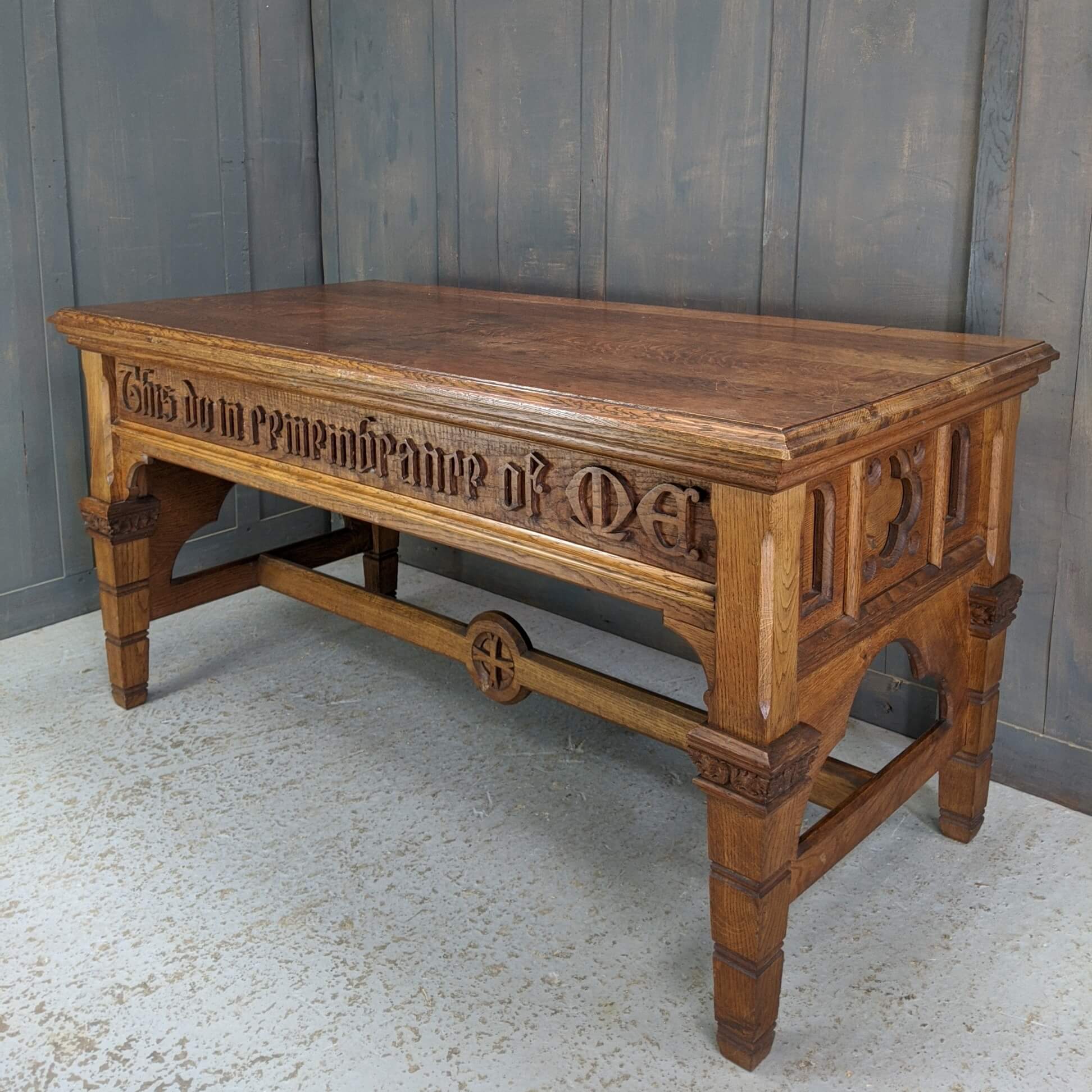 Our product shown on this page Excellent Victorian Antique Carved Oak Communion Table ‘This Do in Remembrance of Me’ (SOLD) is currently available for hire.