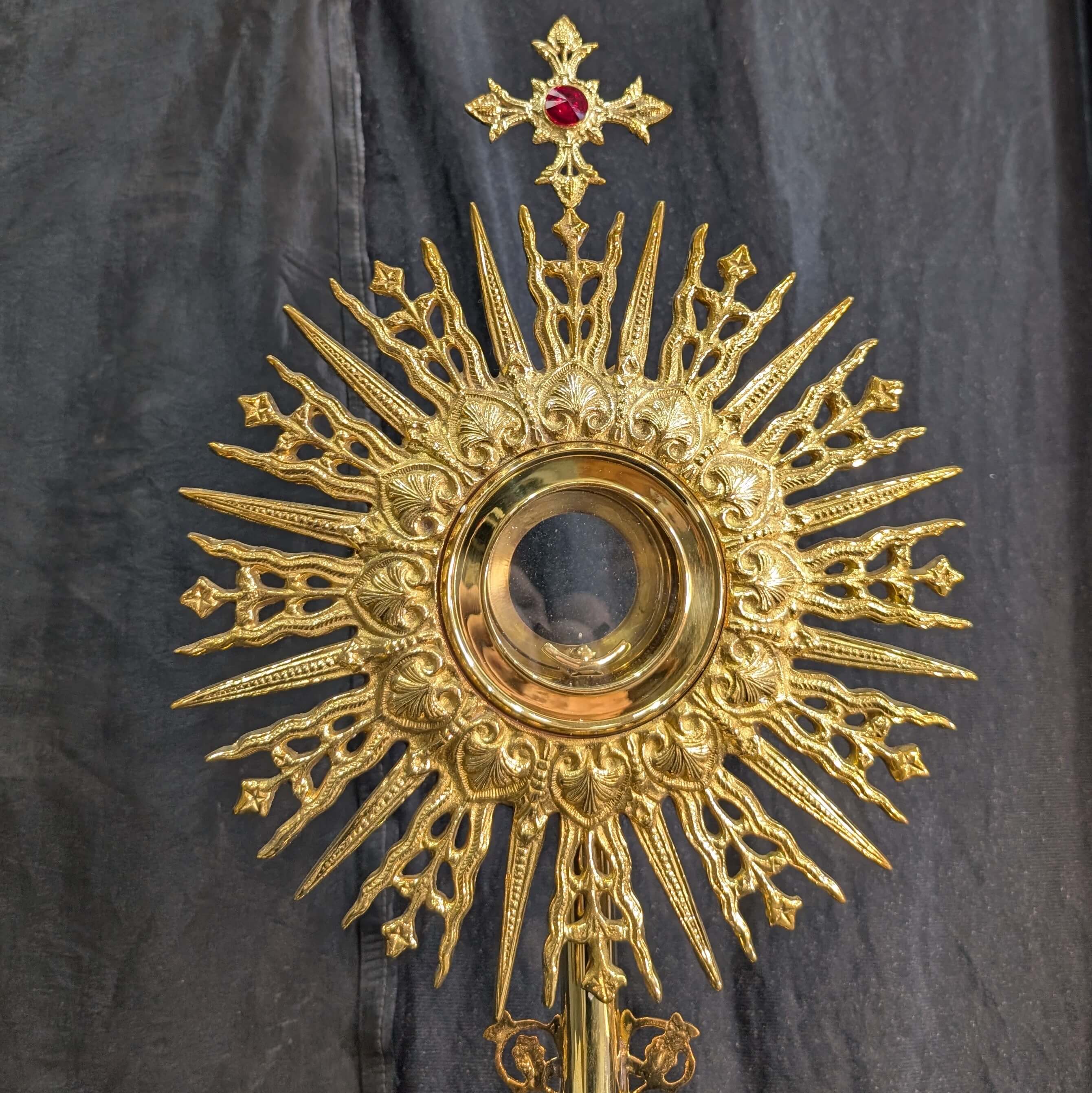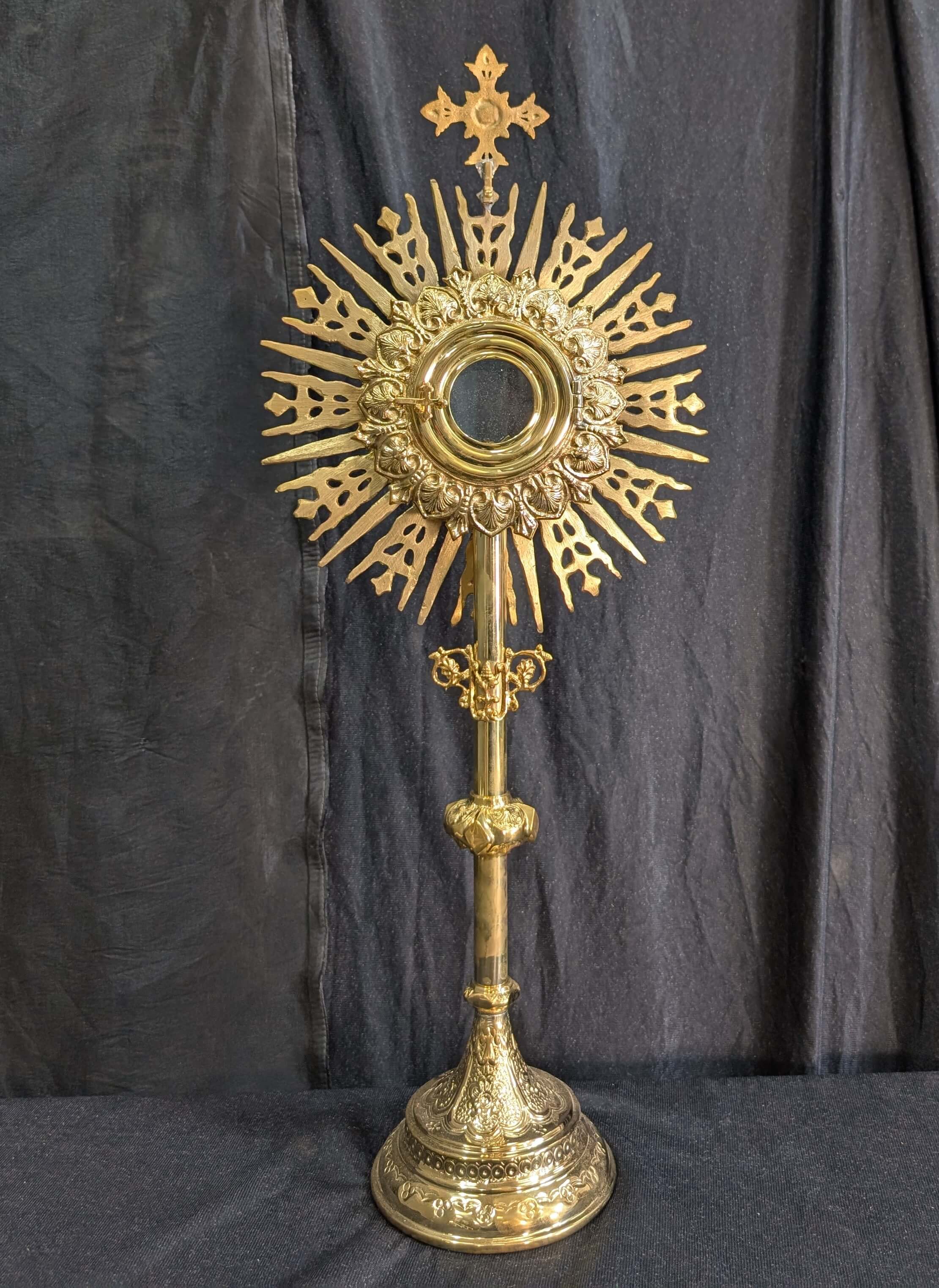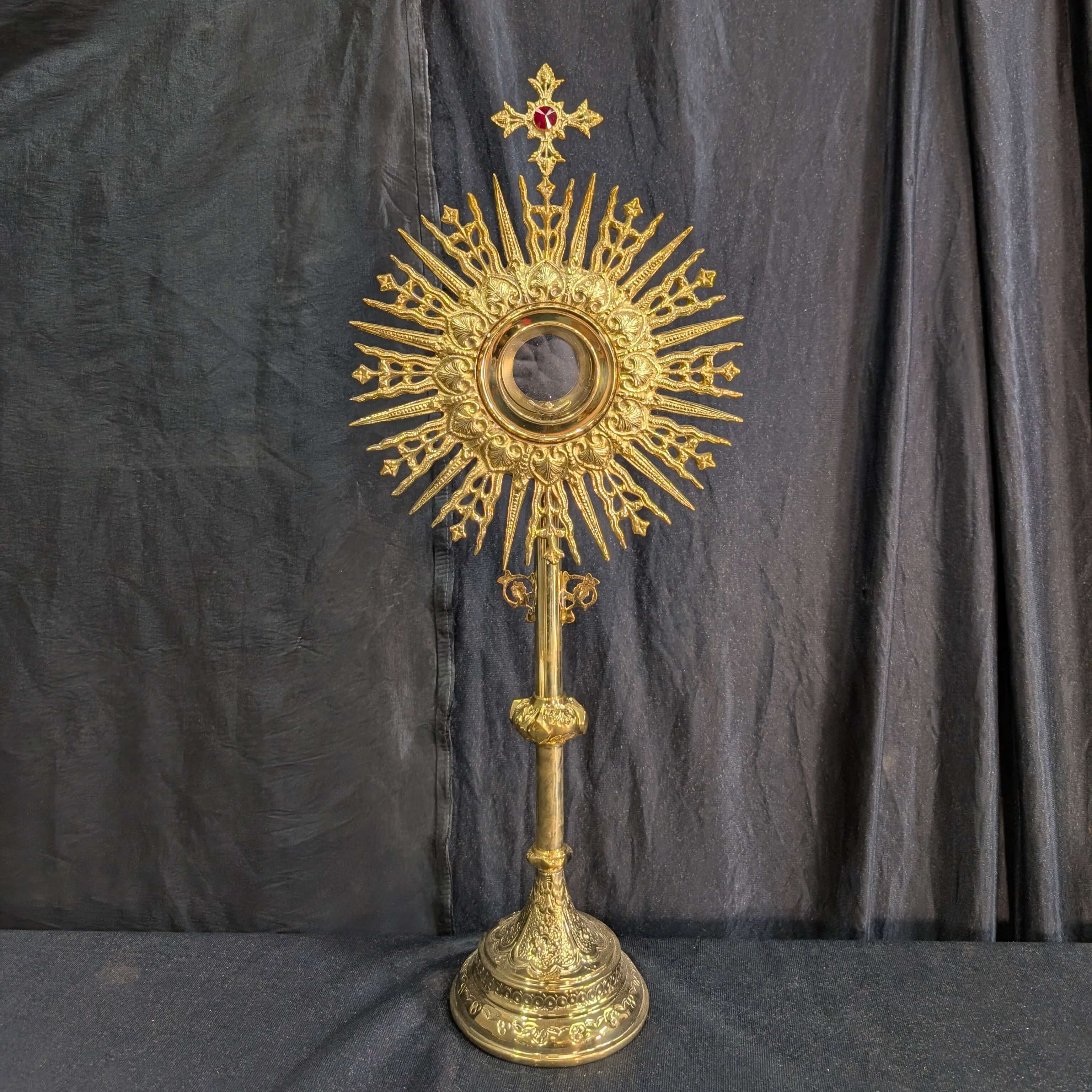 Our product shown on this page Exciting As New Beaux Arts Sunburst Large Brass Monstrance with Begemmed Cross is currently available for hire.