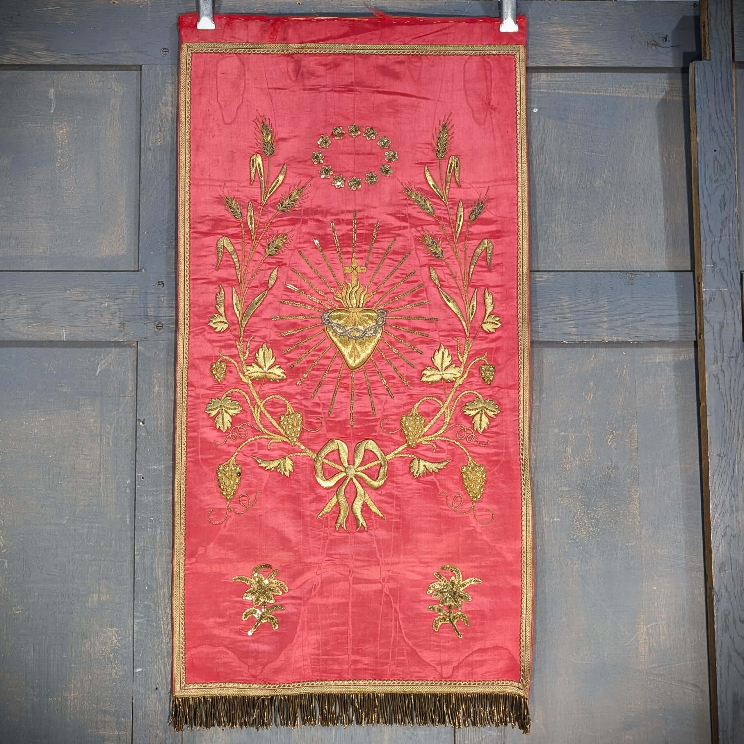 Our product shown on this page Exquisite Gold Bullion & Gold Thread Sacred Heart Embroidery Hanging (SOLD) is currently available for hire.
