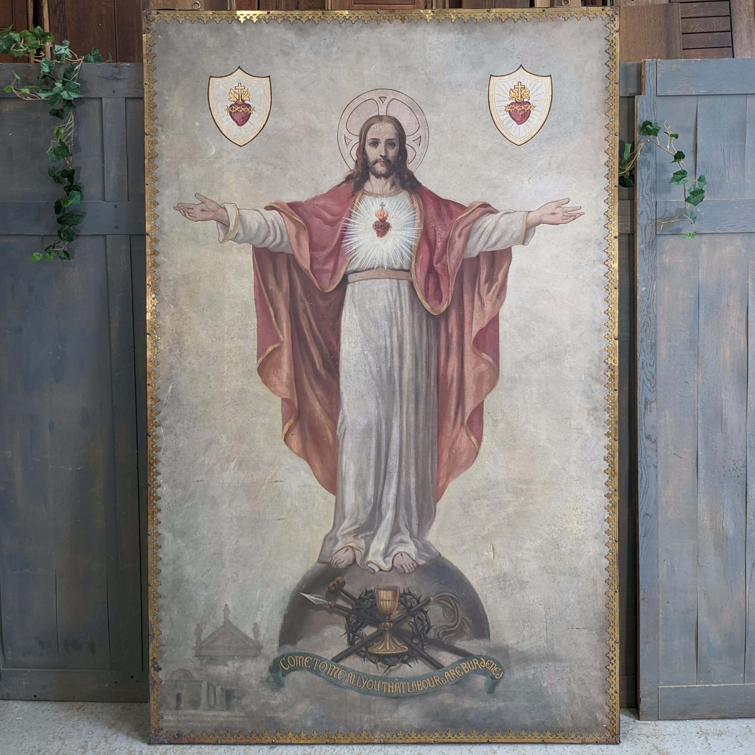 Our product shown on this page Extremely Impressive Outsize Antique Irish Brass Framed Oil Painting of Christ the Sacred Heart (SOLD) is currently available for hire.