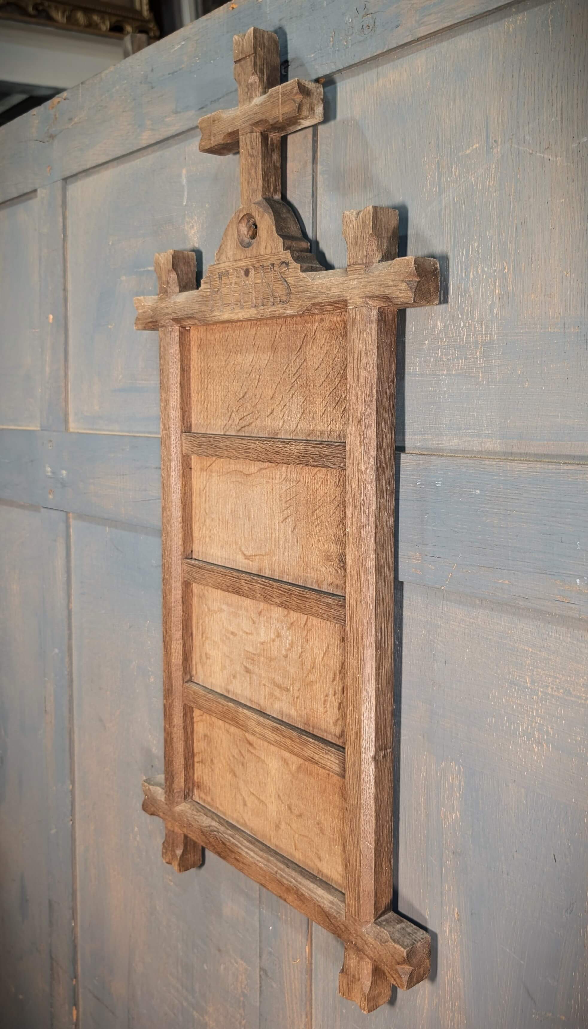 Faded 1860’s English Oak Four Hymn Hymn Board from St Giles Darlton (SOLD)