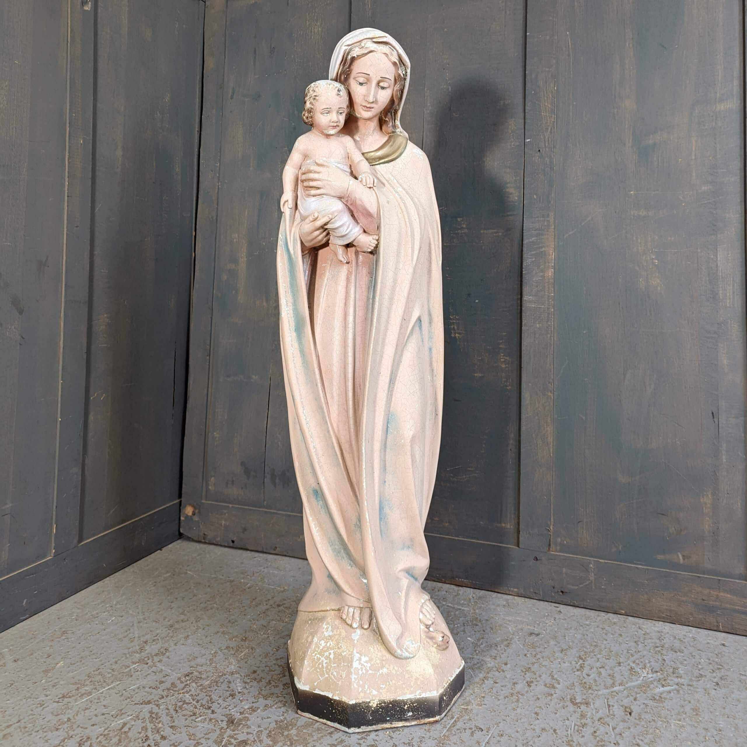 Our product shown on this page Fibreglass Outdoor Large Mostly Pink Vintage Religious Statue of Madonna BVM Mary & Child (SOLD) is currently available for hire.