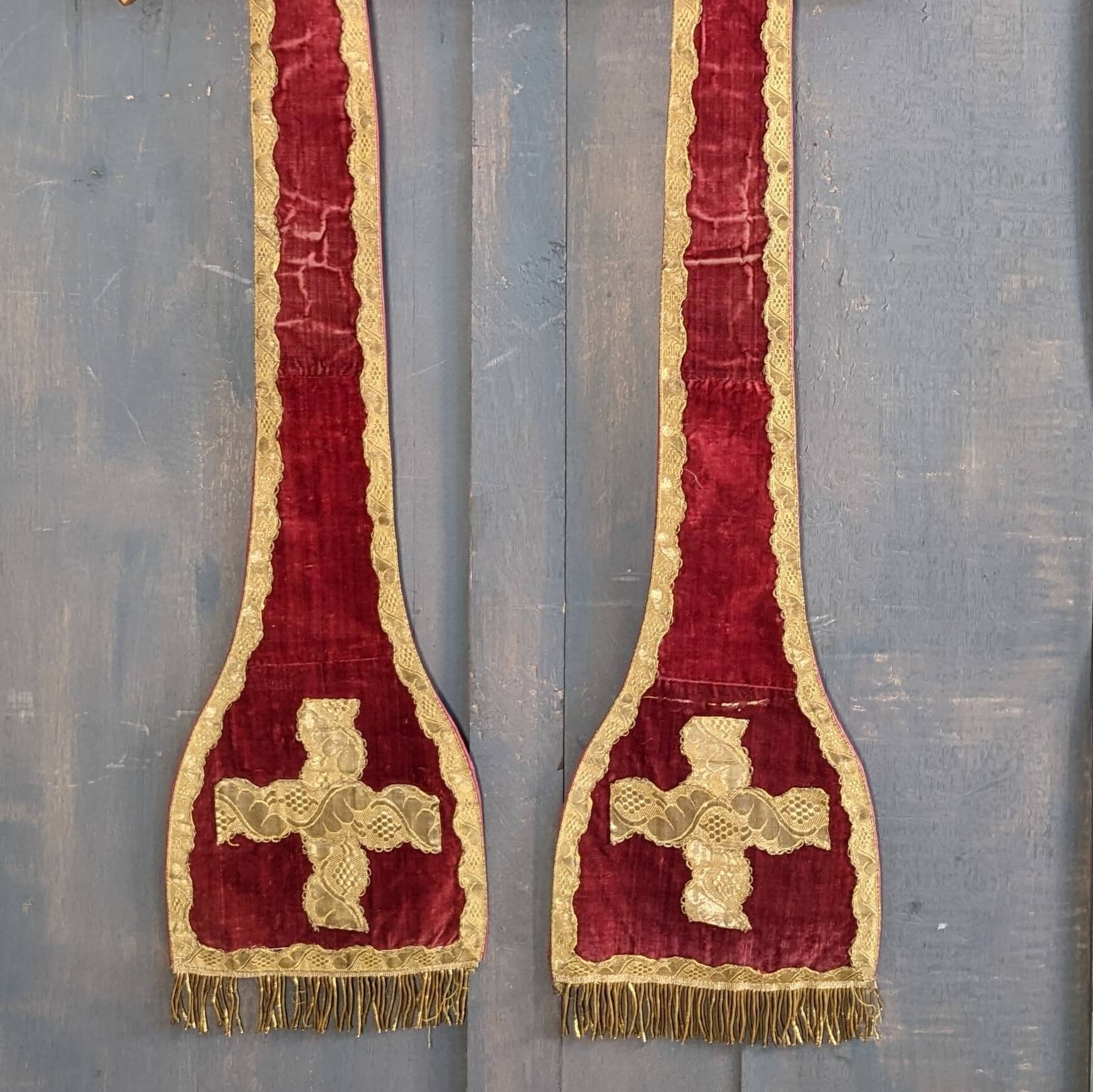 Our product shown on this page Fine Antique Red Silk Stole with Applique & Bullion Thread Fringe (SOLD) is currently available for hire.