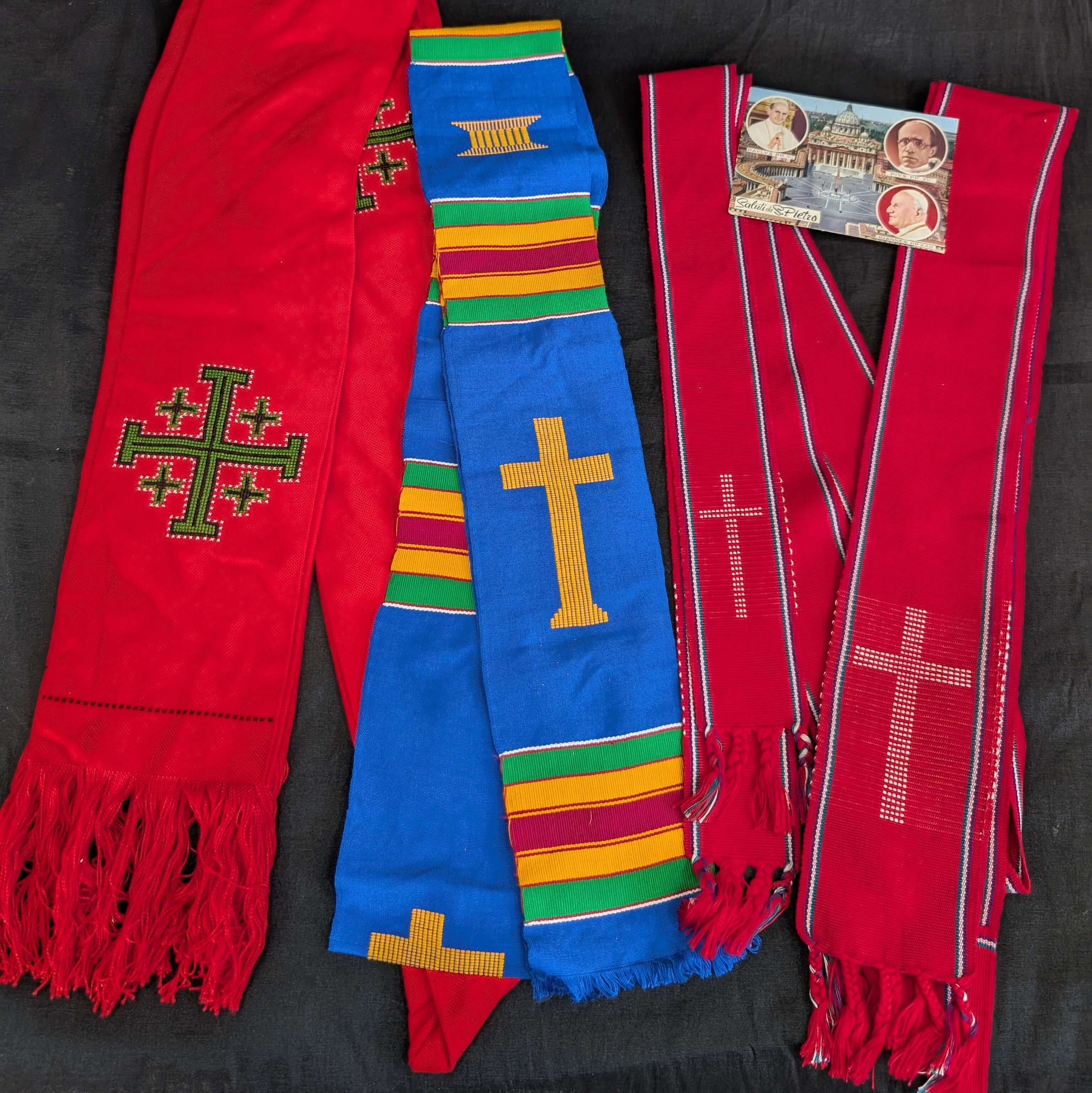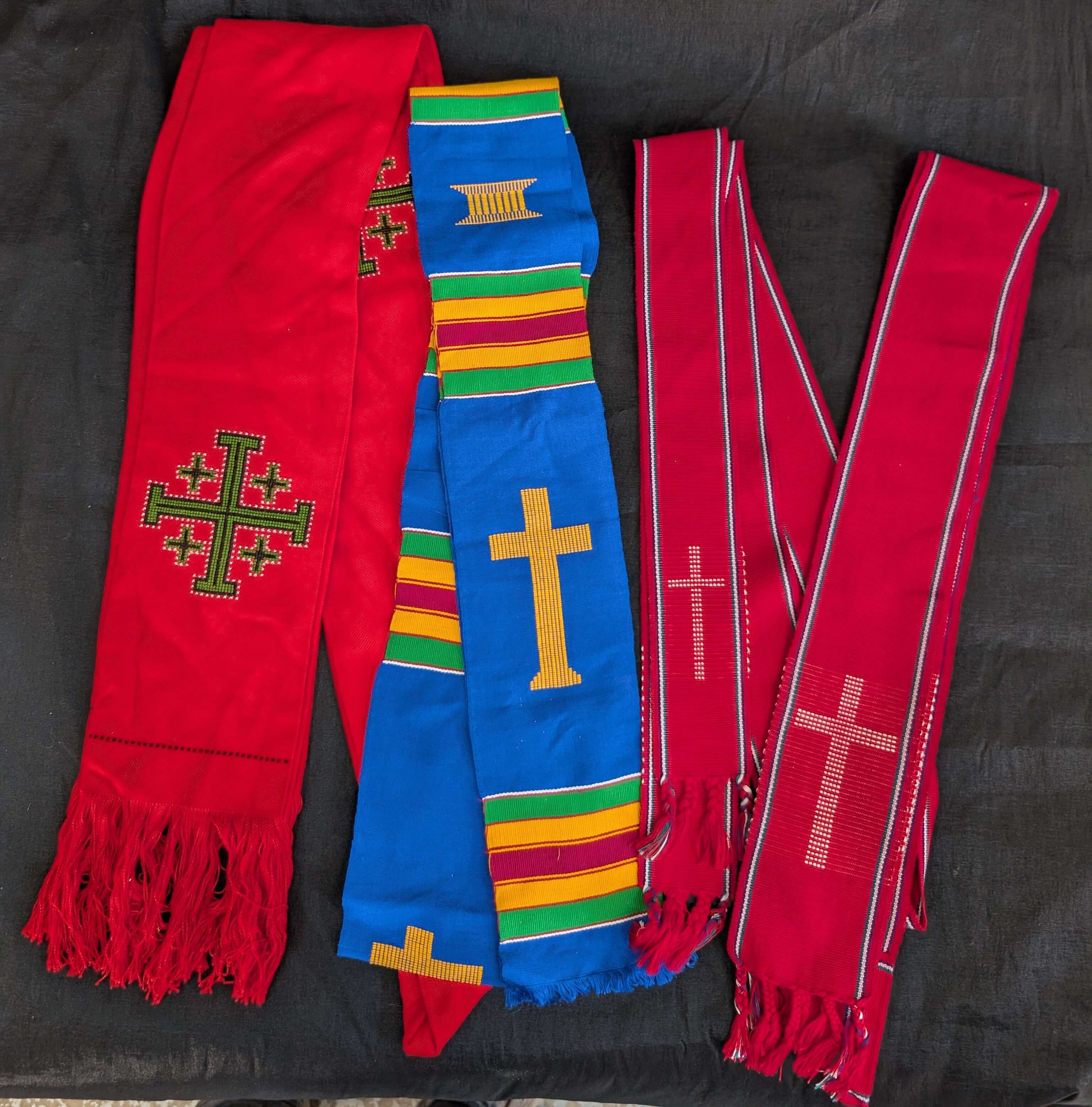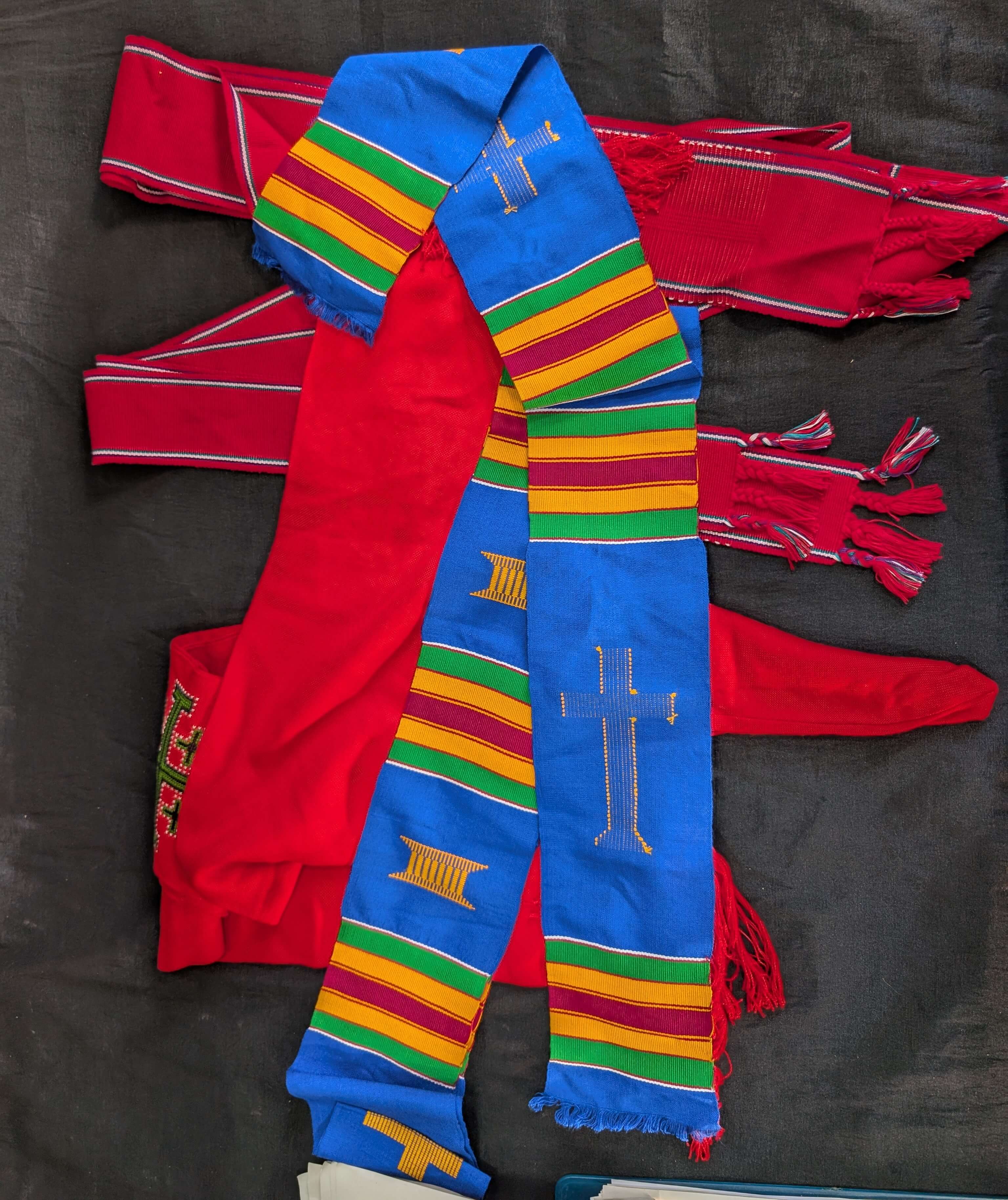 Our product shown on this page Four Colourful African Preaching Stoles is currently available for hire.