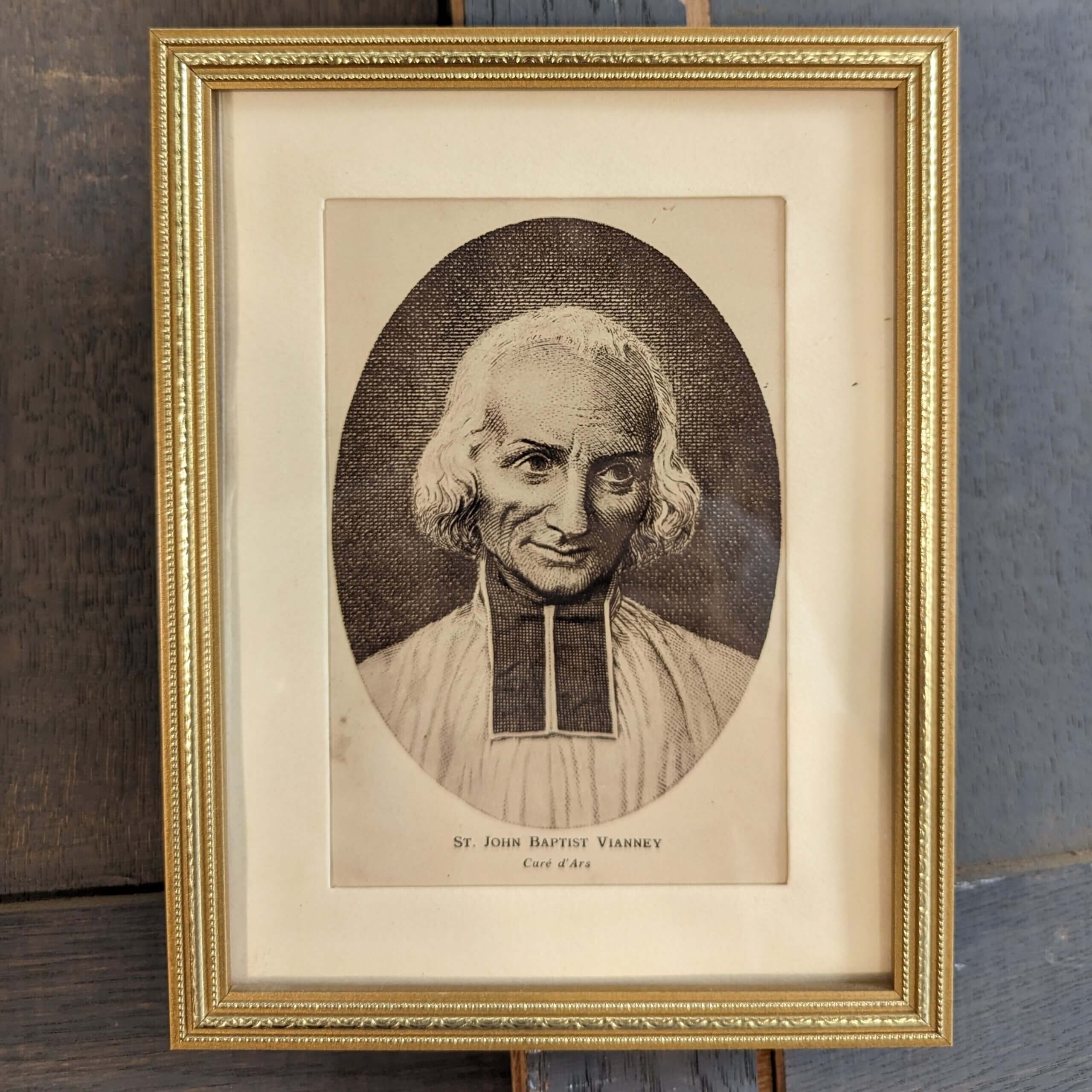 Our product shown on this page Framed Antique Print of St John Vianney (SOLD) is currently available for hire.