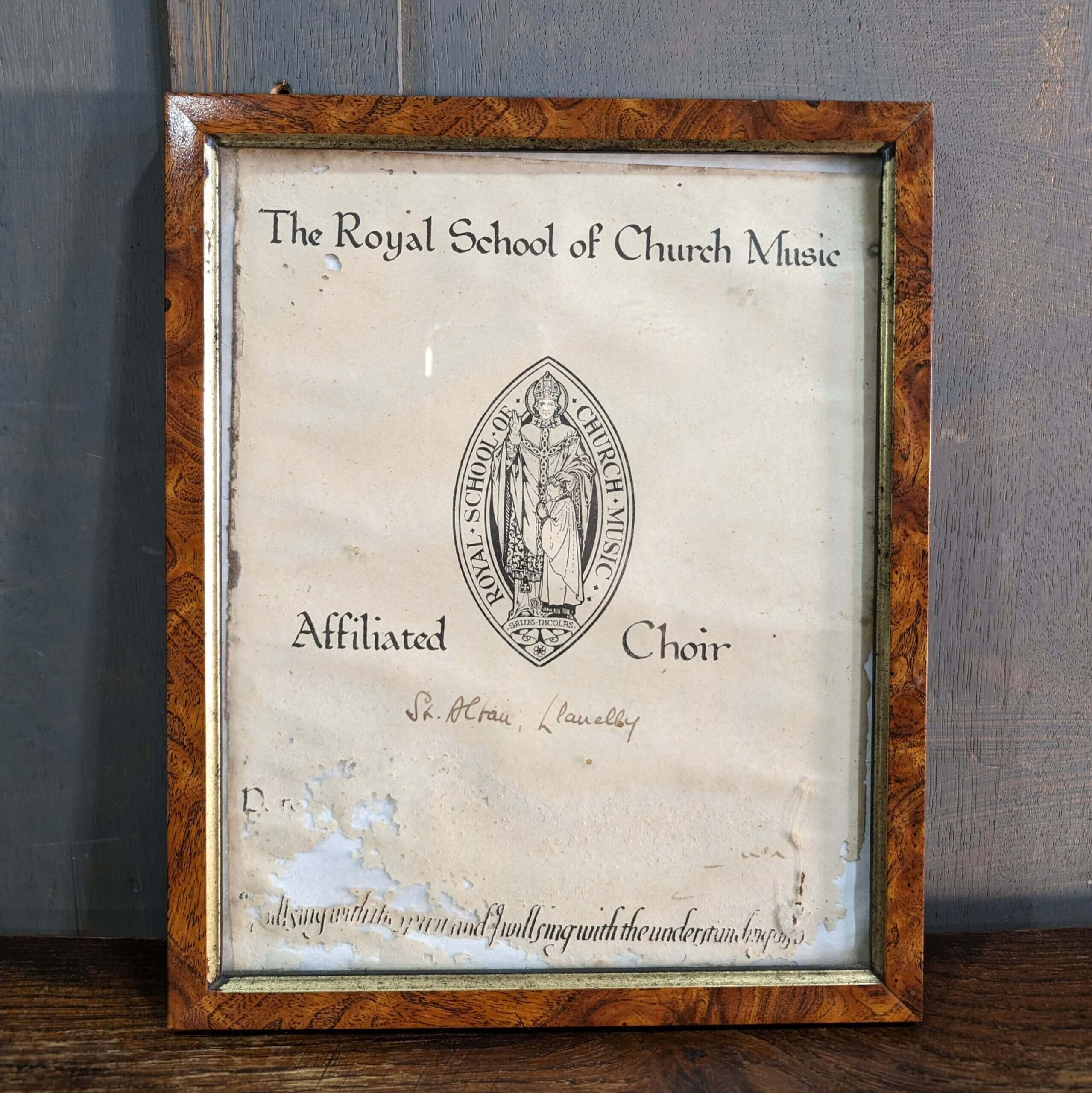 Our product shown on this page Framed Choir Certificate from The Royal School of Music (SOLD) is currently available for hire.
