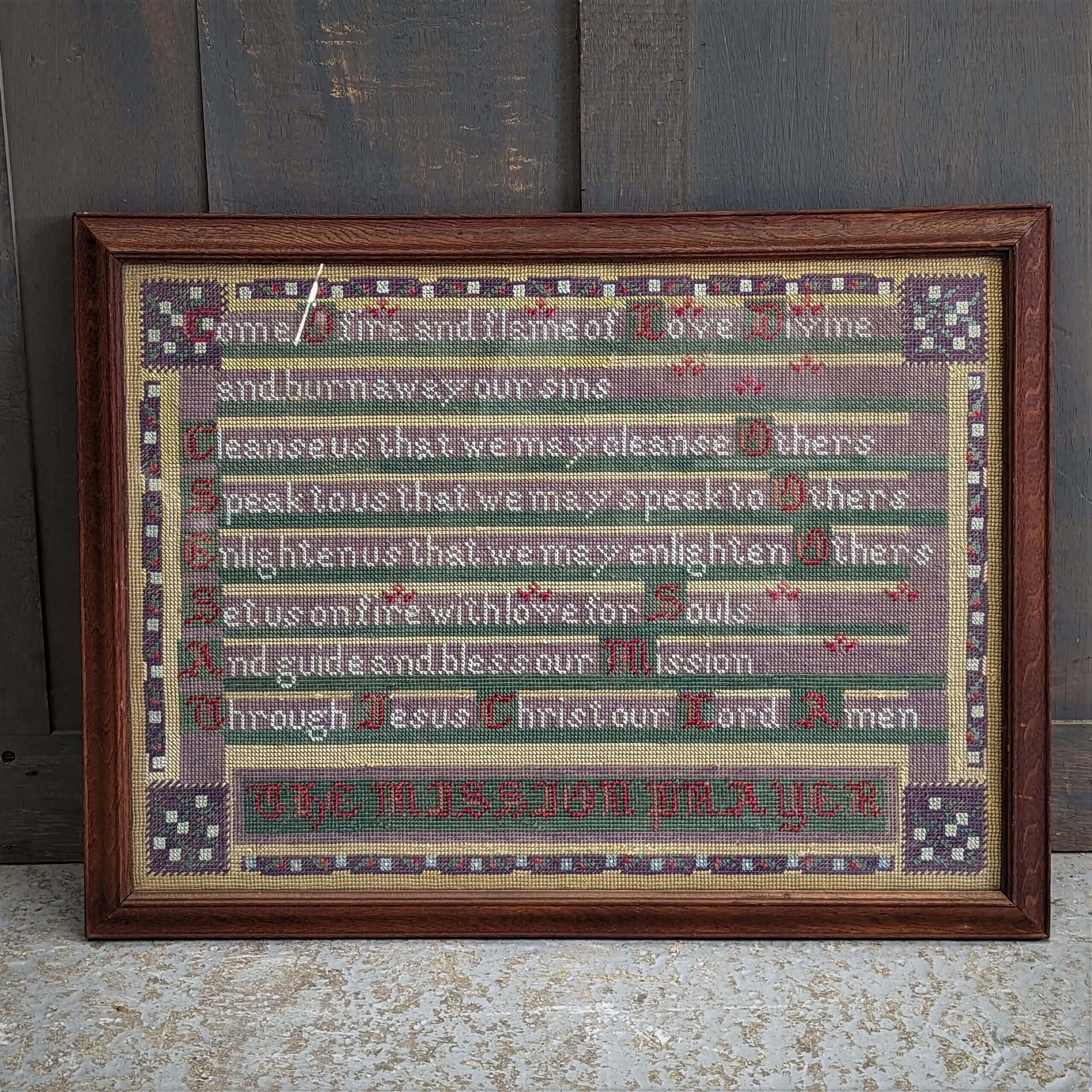 Our product shown on this page Framed Mission Prayer Embroidered Vintage Hanging ‘Burn Away Our Sins’ (SOLD) is currently available for hire.