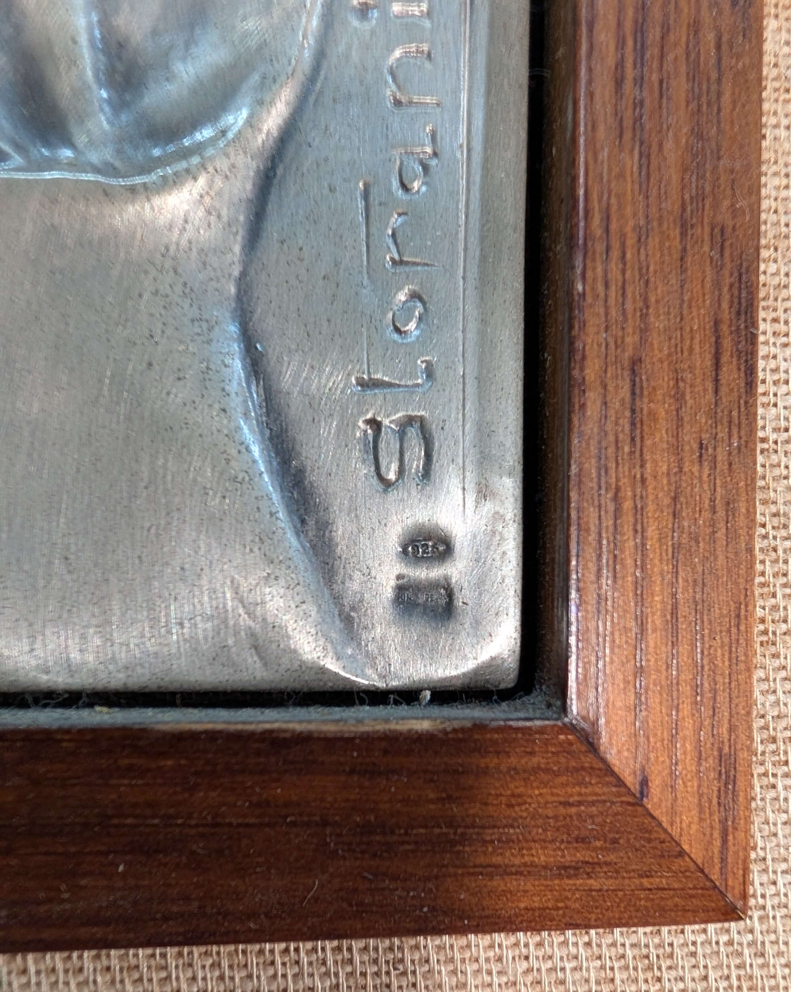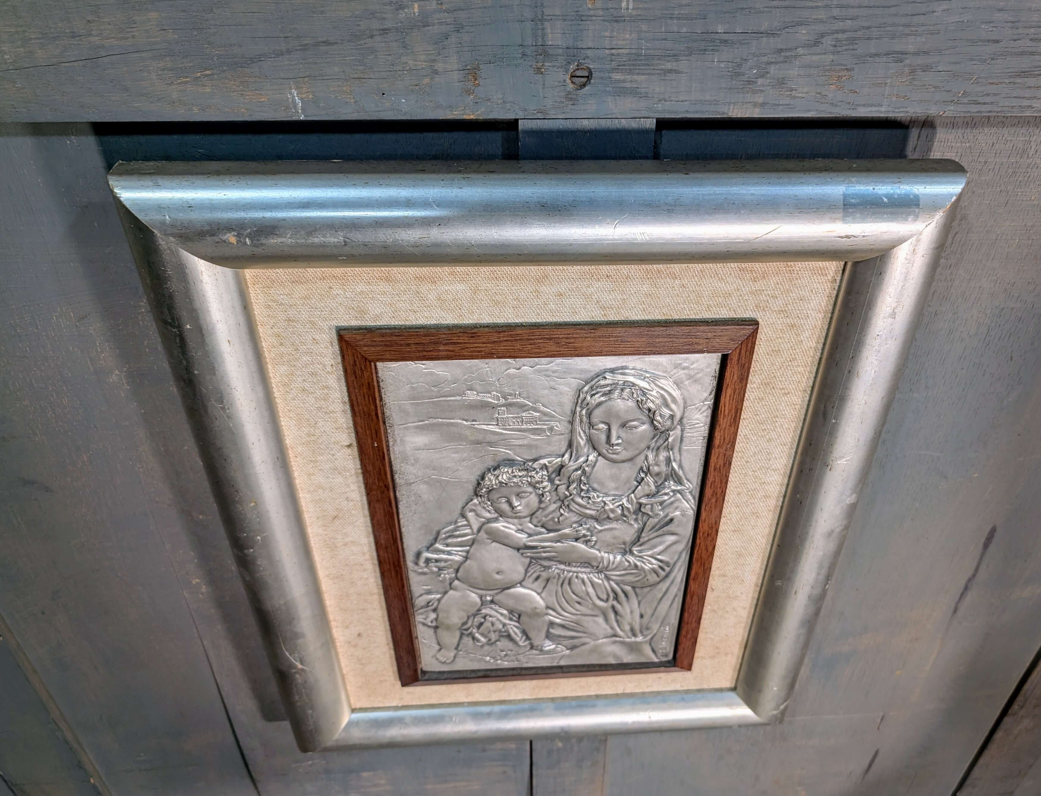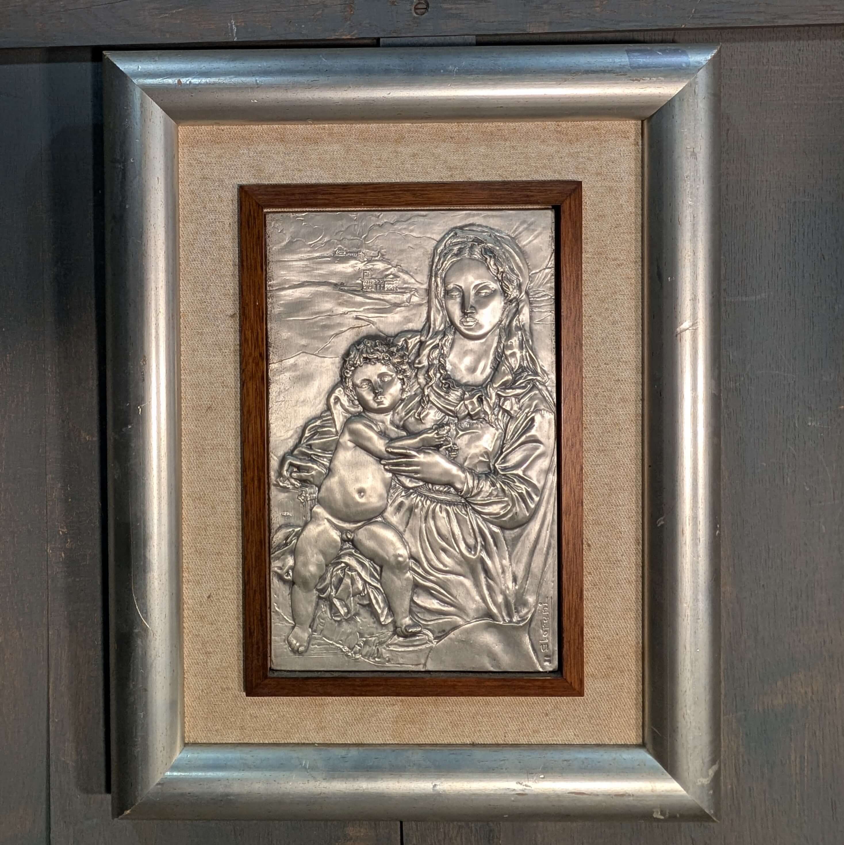 Framed Solid Silver Hammered Relief Work of Madonna and Child