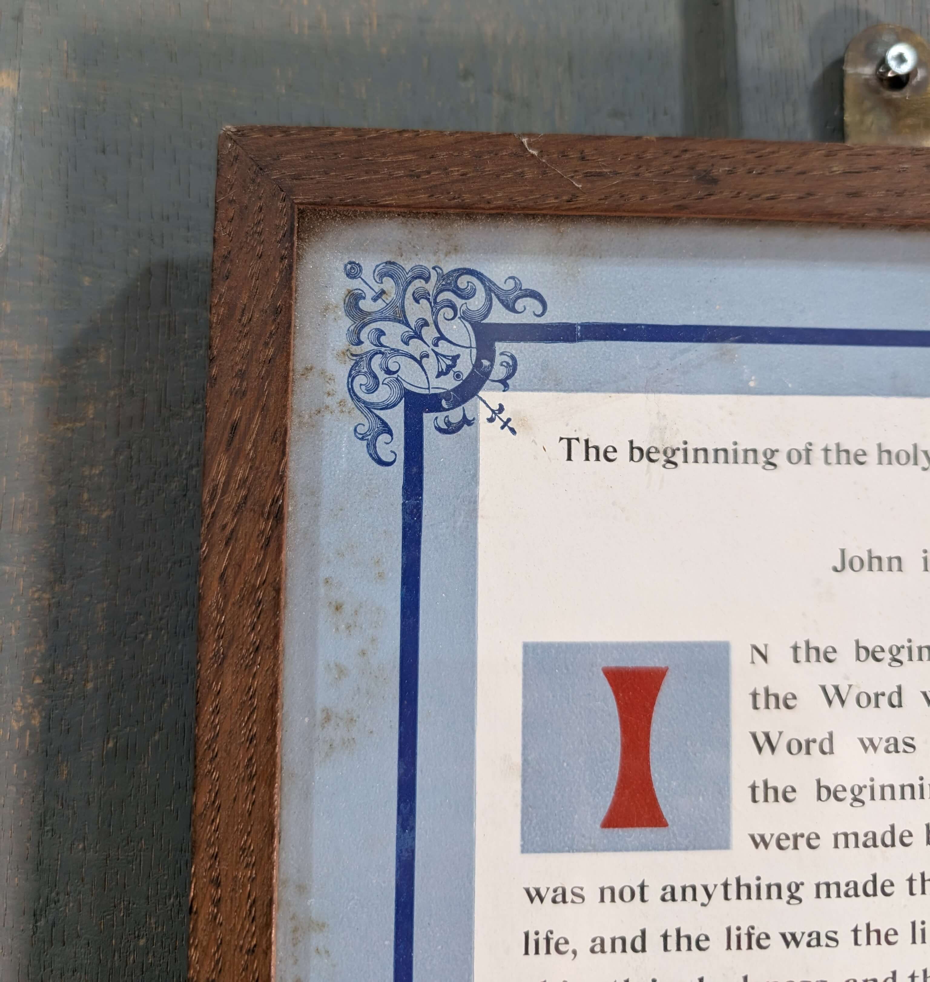 Our product shown on this page Framed Vintage Gospel Card according to John i 1=14 is currently available for hire.
