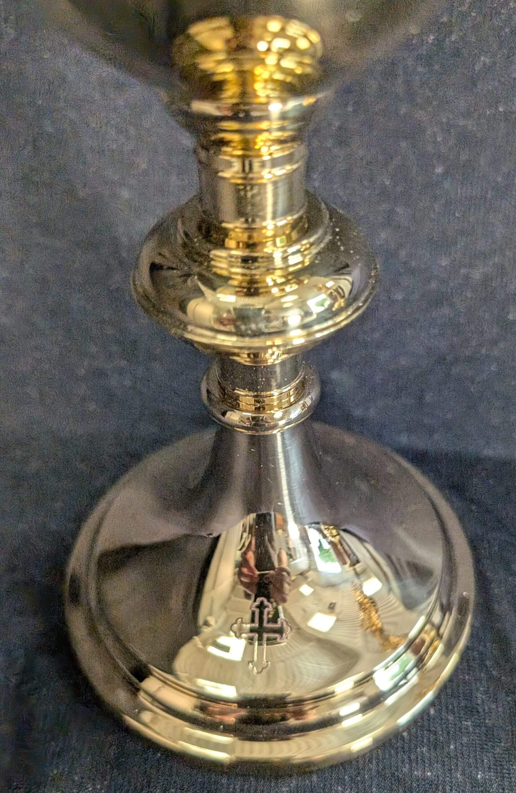 As new.  Good weight and height. Small cross engraved at the bottom.
