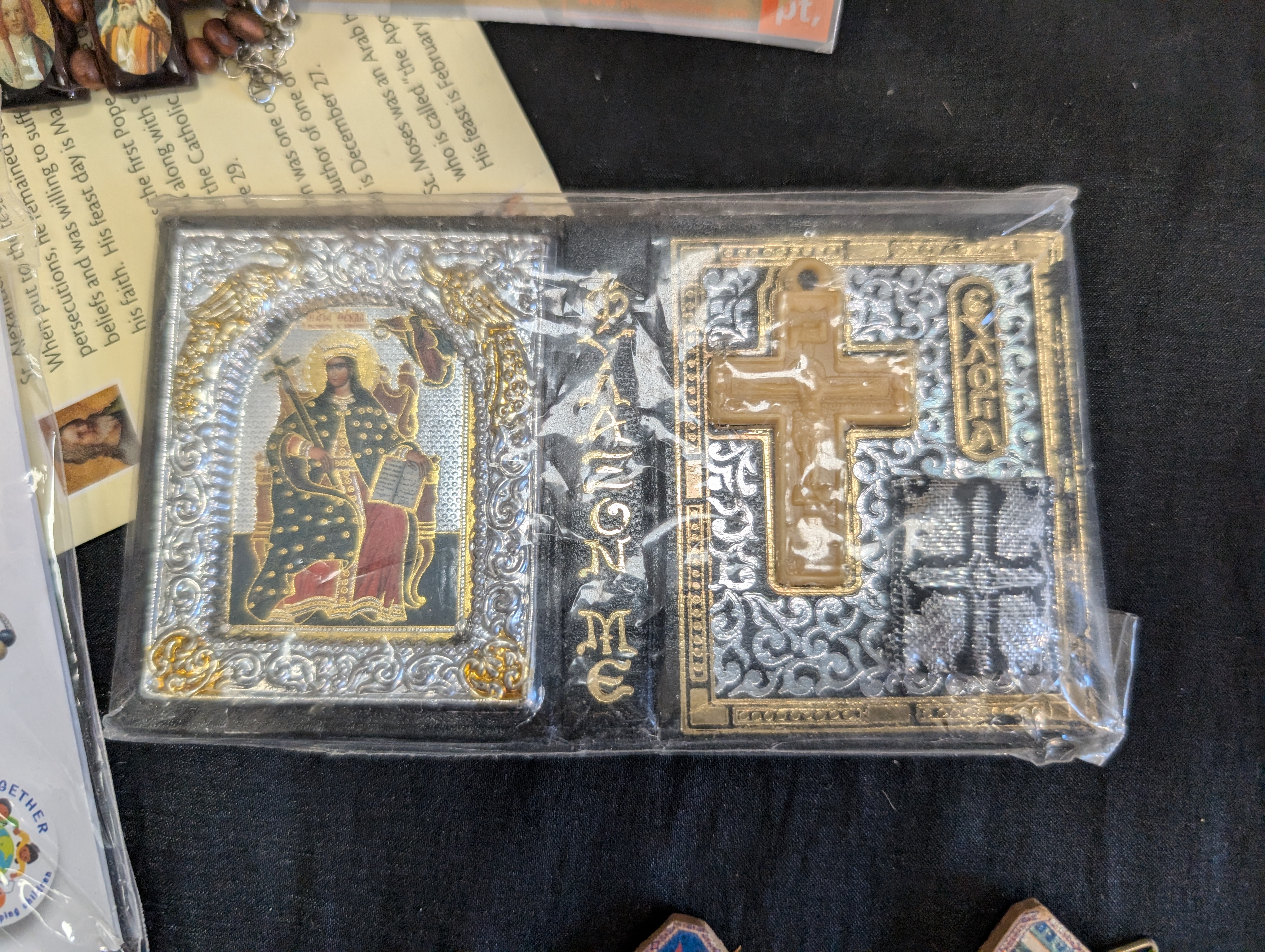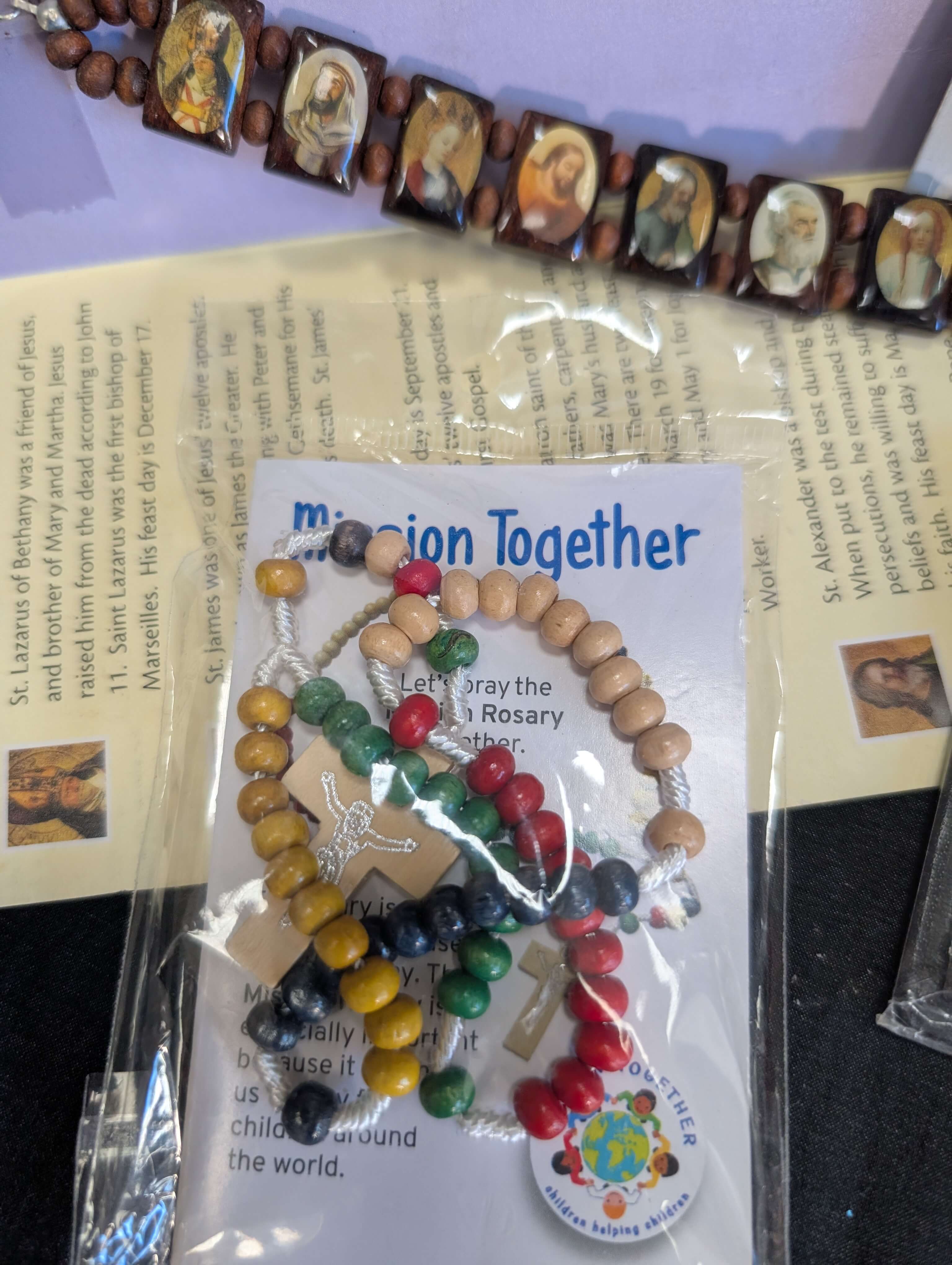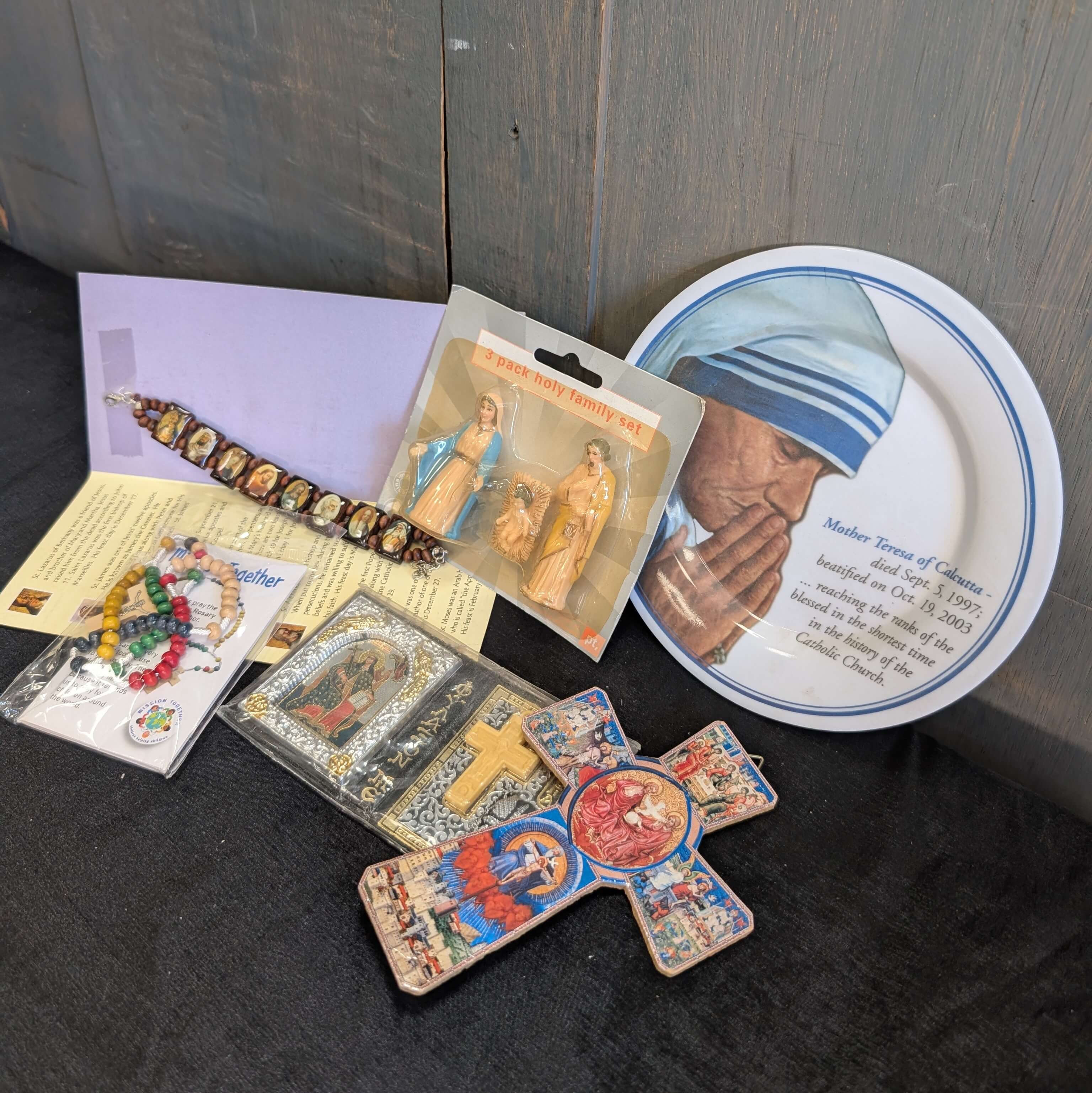 Our product shown on this page Fun Collection of Catholic Accessories – Rosary, Teresa Plate, Holy Family in a Packet, Holy Bracelet is currently available for hire.