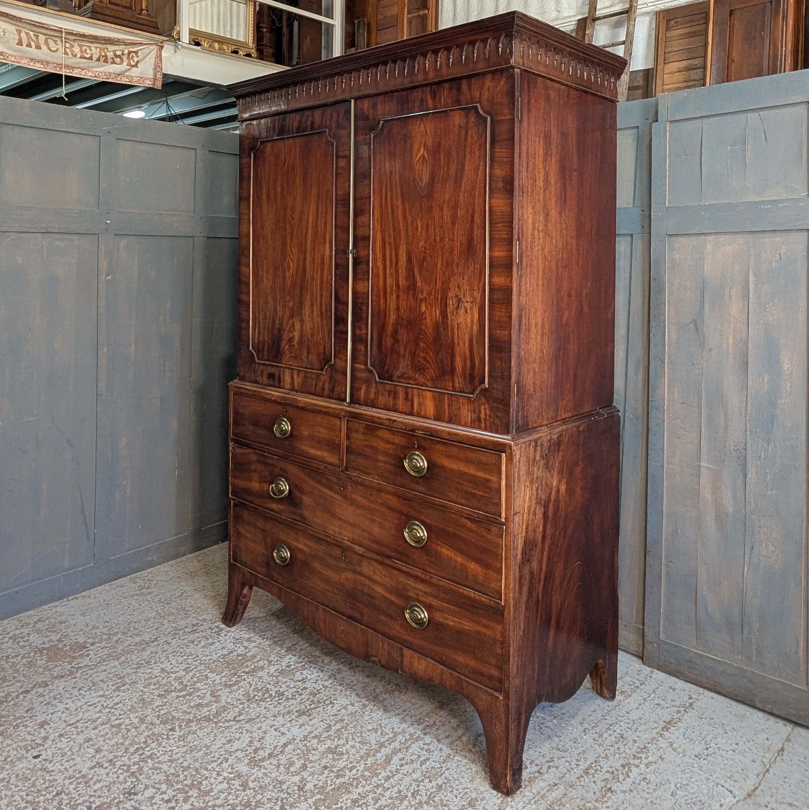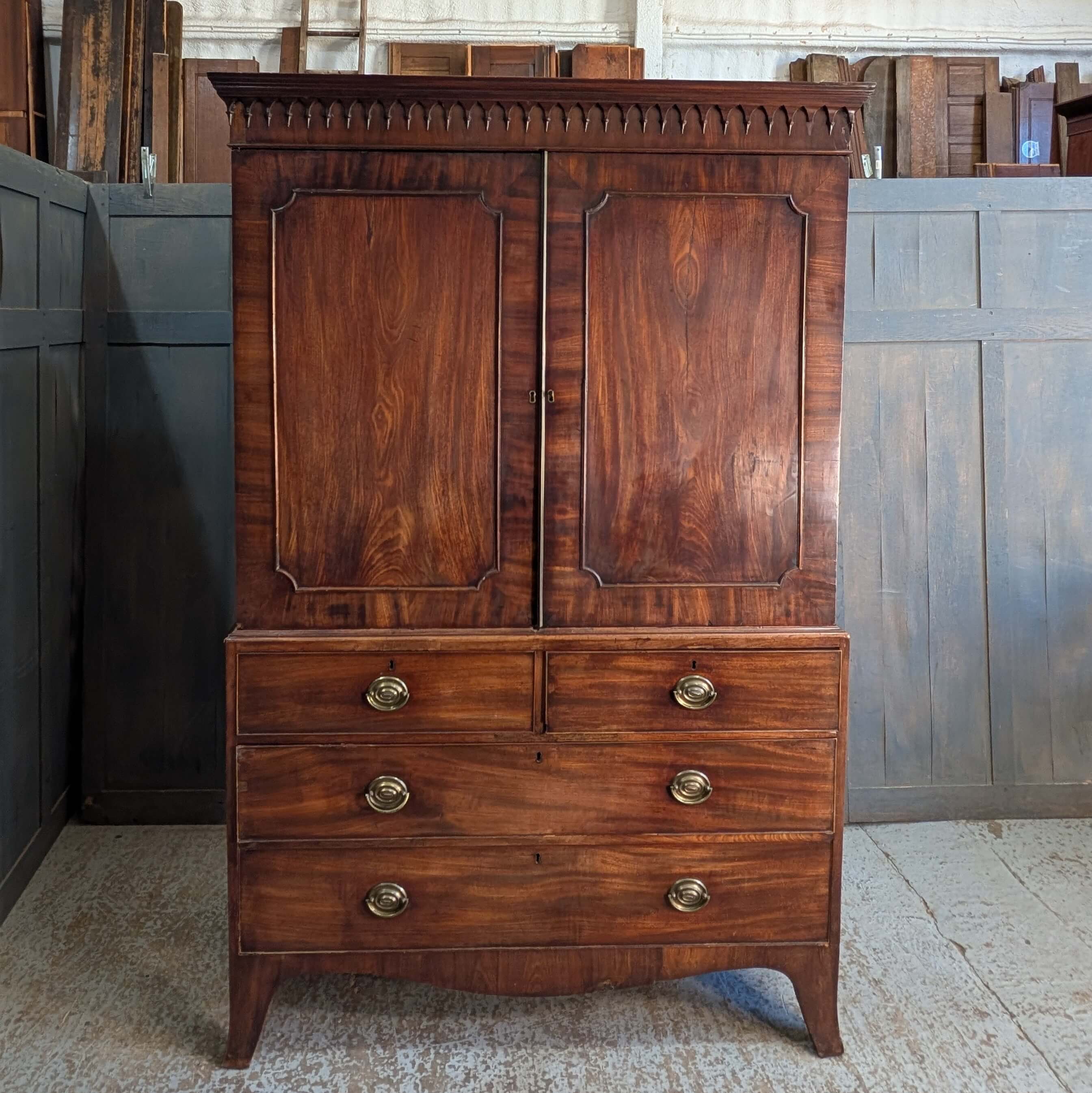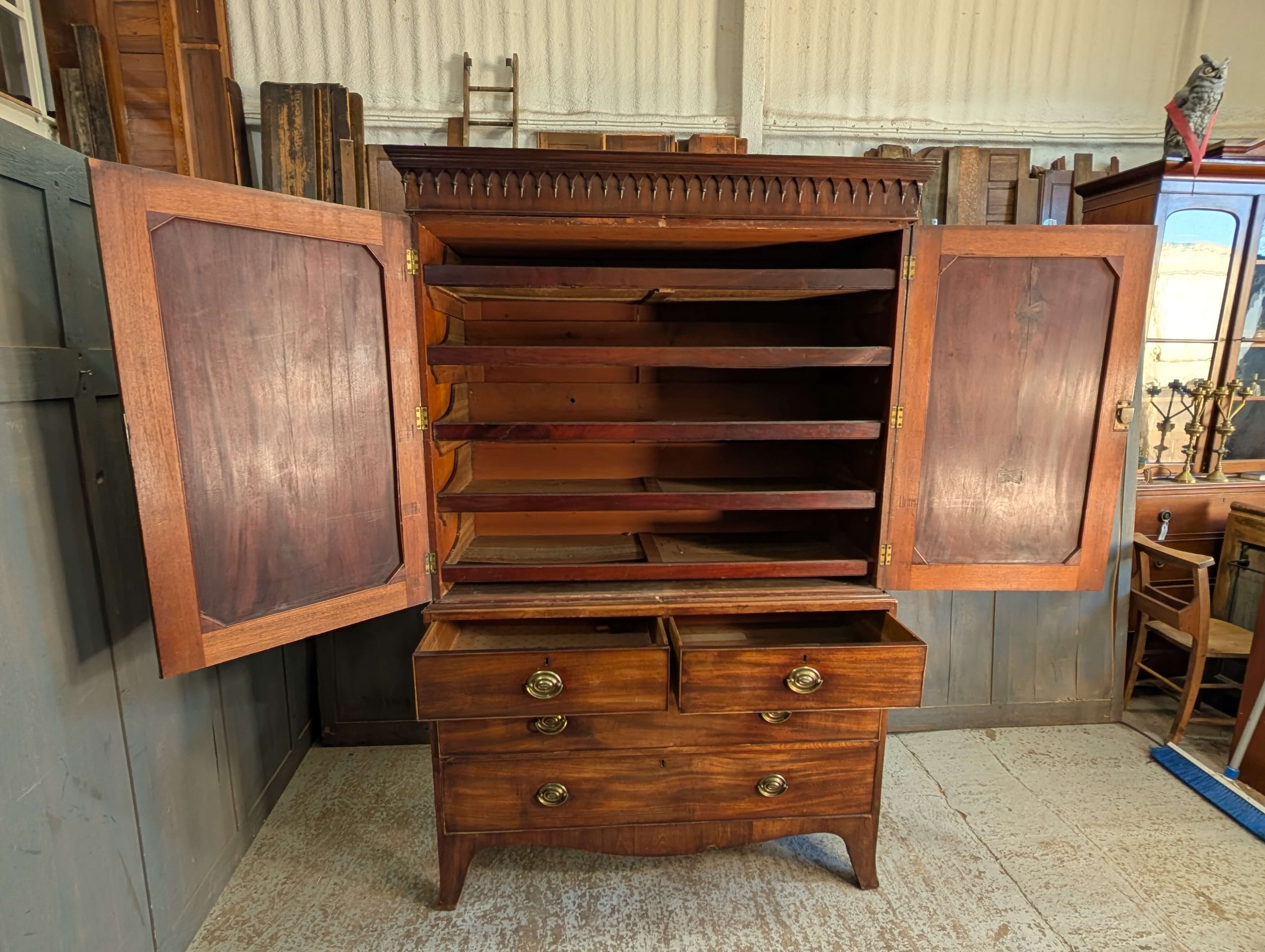 George III Mahogany Linen Press Large Chest of Drawers with Original Handles