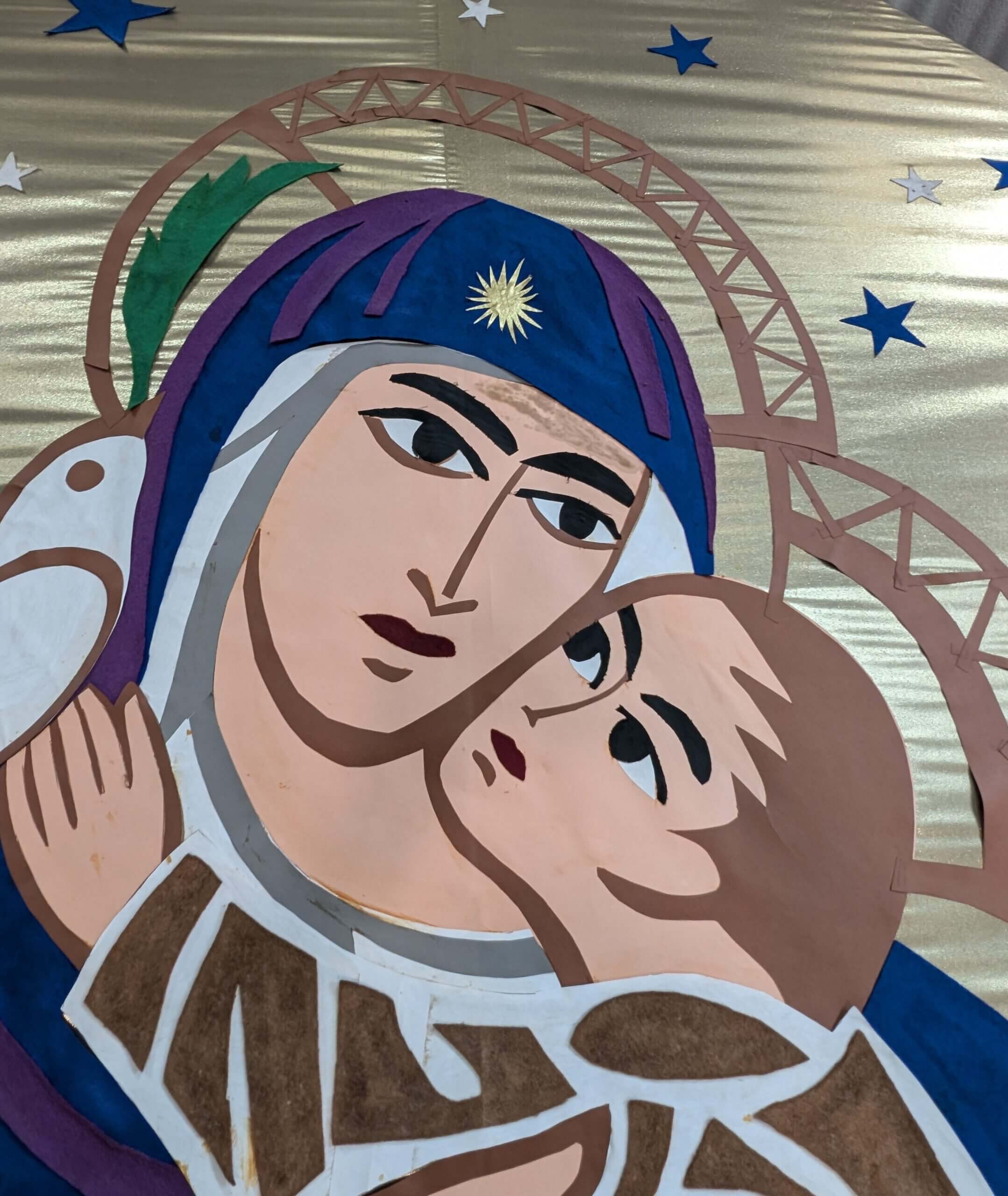 Our product shown on this page Giant Contemporary Mother & Child Triptych from Worth Abbey is currently available for hire.