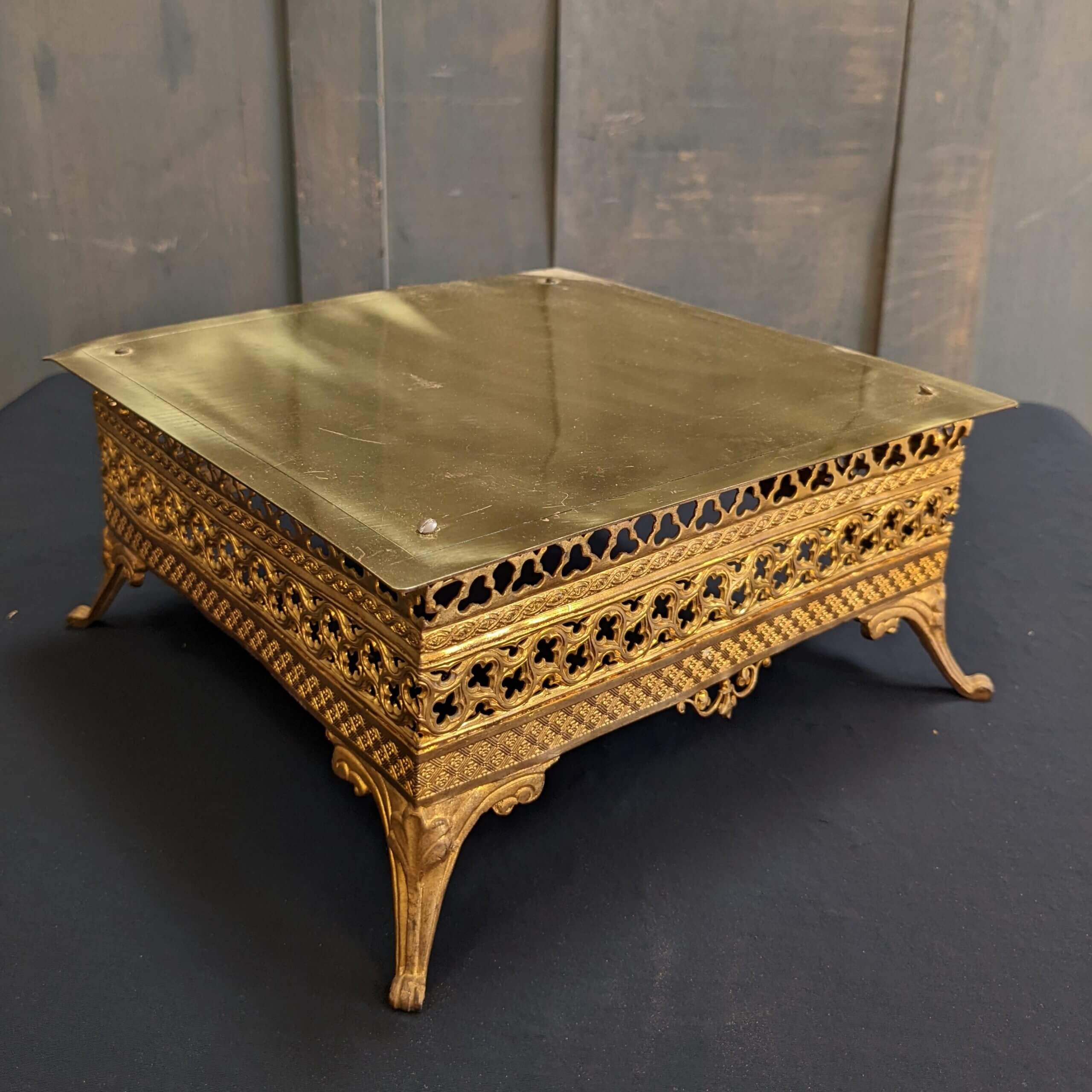Our product shown on this page Gilded Brass Gothic Tabor Monstrance Stand with Filigree Work Sides (SOLD) is currently available for hire.