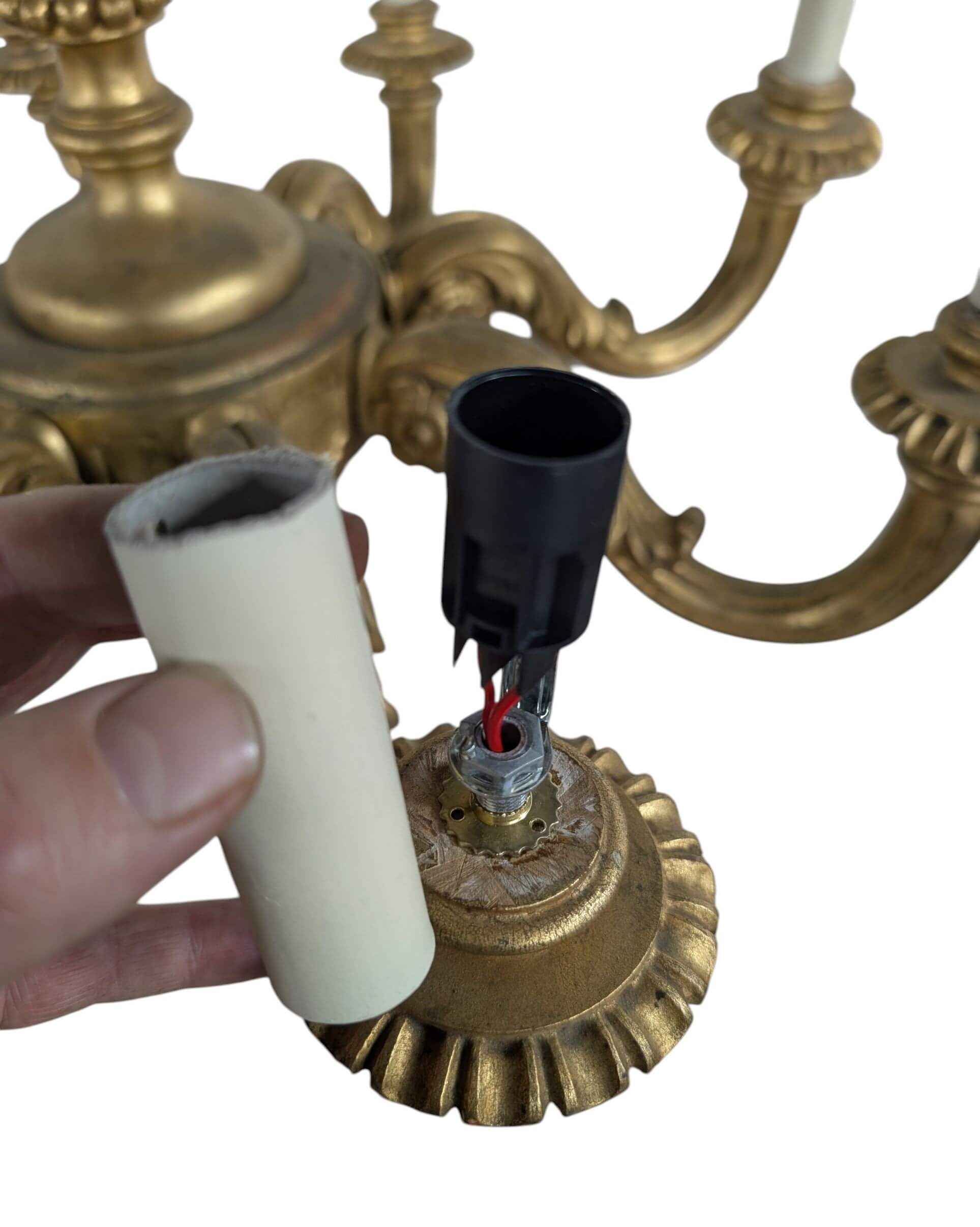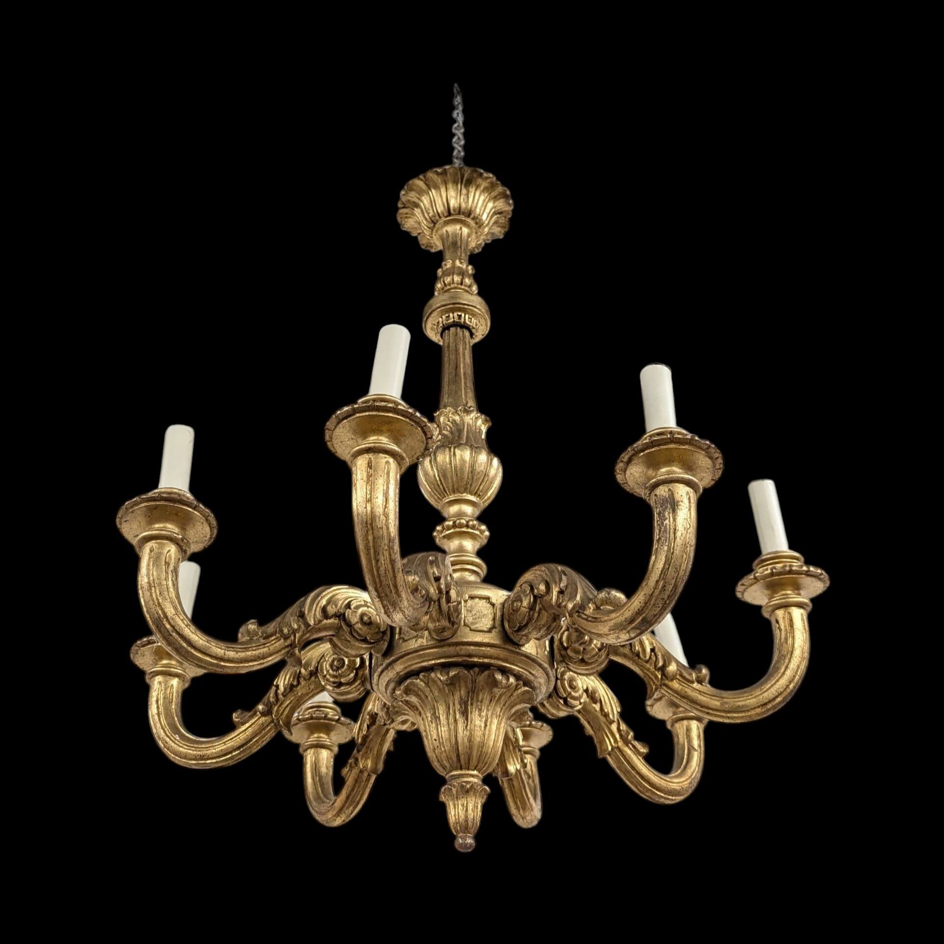 Our product shown on this page Gold Painted Carved Wooden Six Light Chandeliers from Burrswood House #1 is currently available for hire.