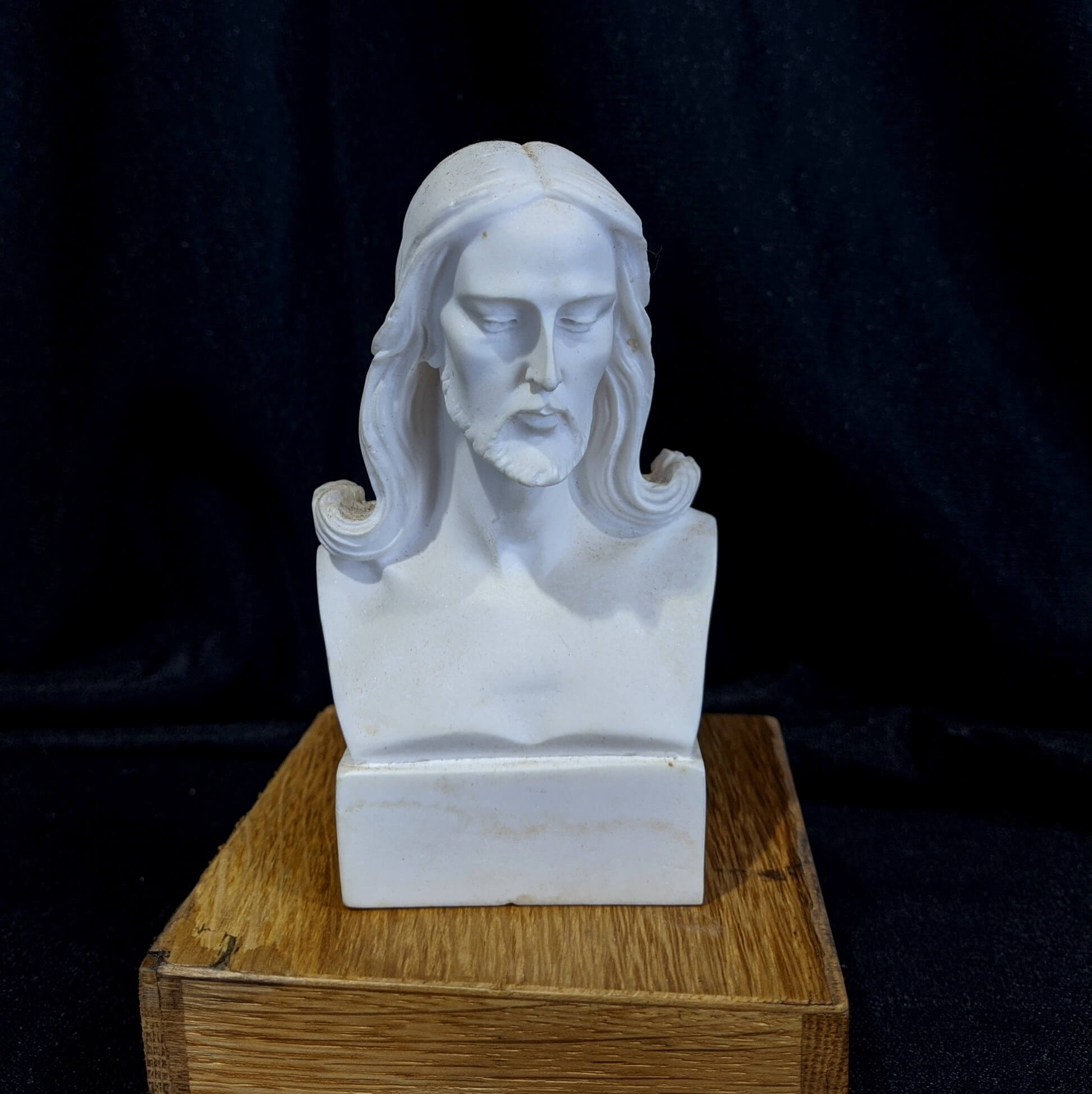 Our product shown on this page Good Quality Composition Marble Bust of Christ (SOLD) is currently available for hire.