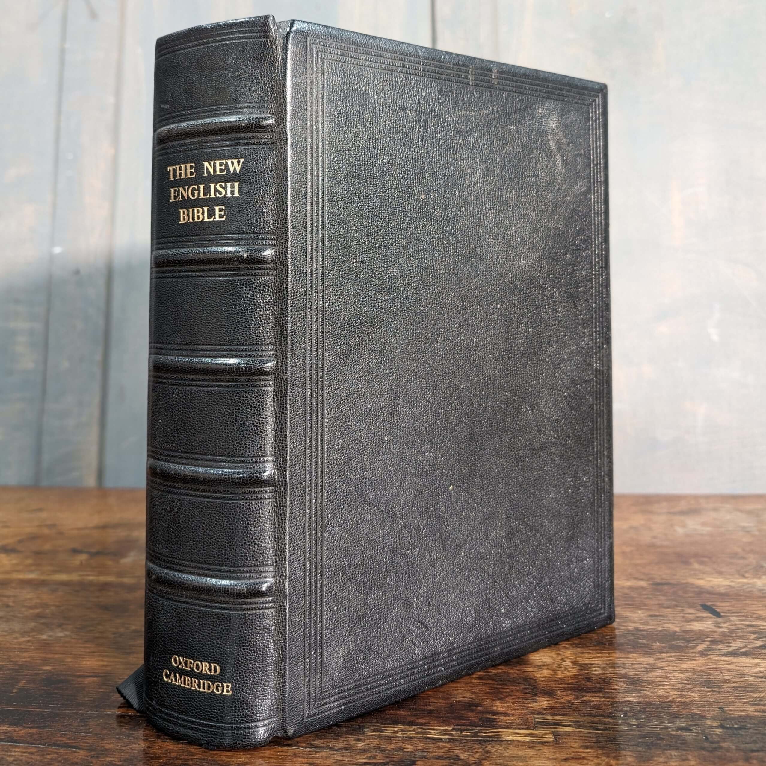Our product shown on this page Good Quality Good Condition Morocco Leather Bound 1971 New English Bible (SOLD) is currently available for hire.