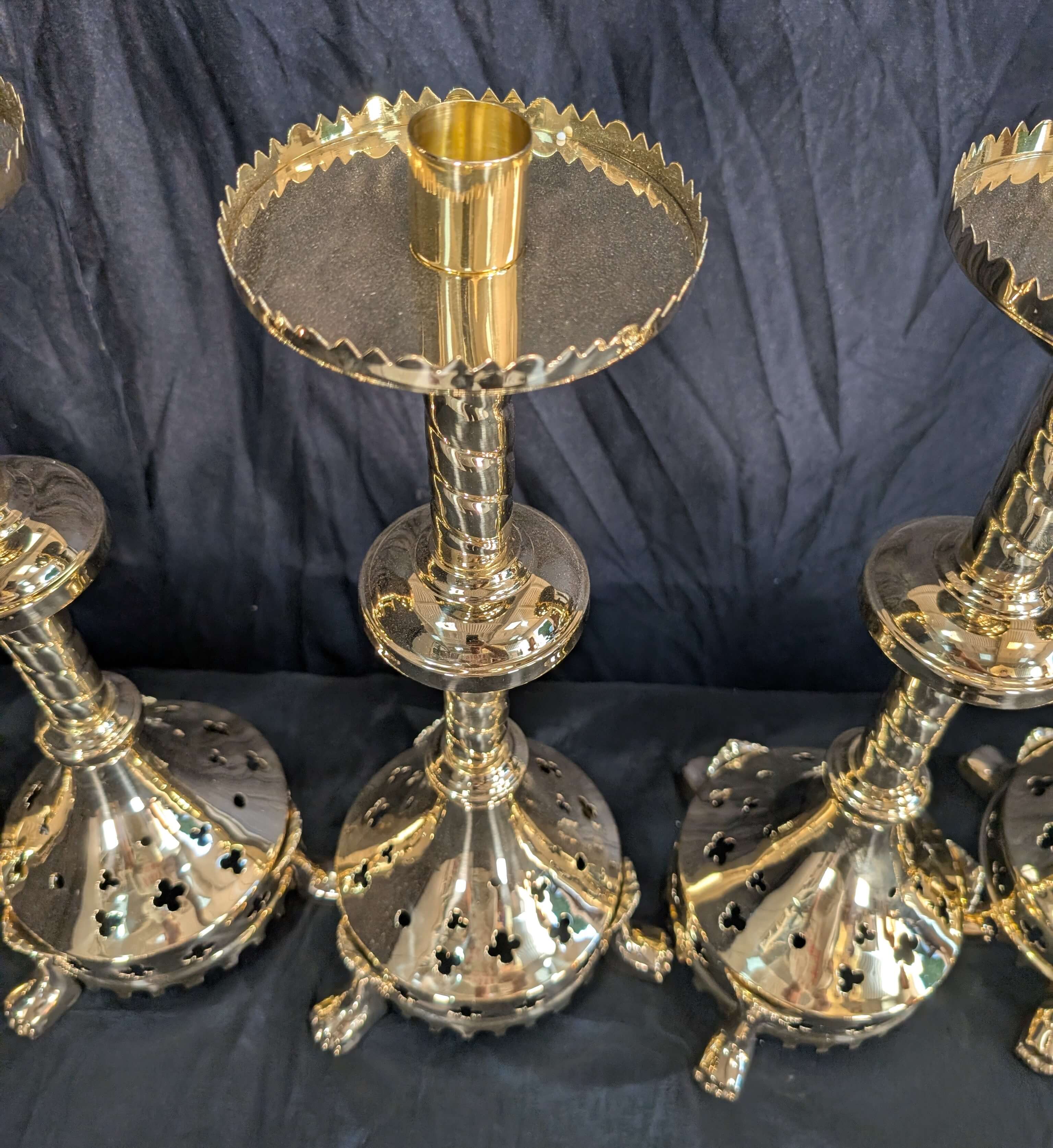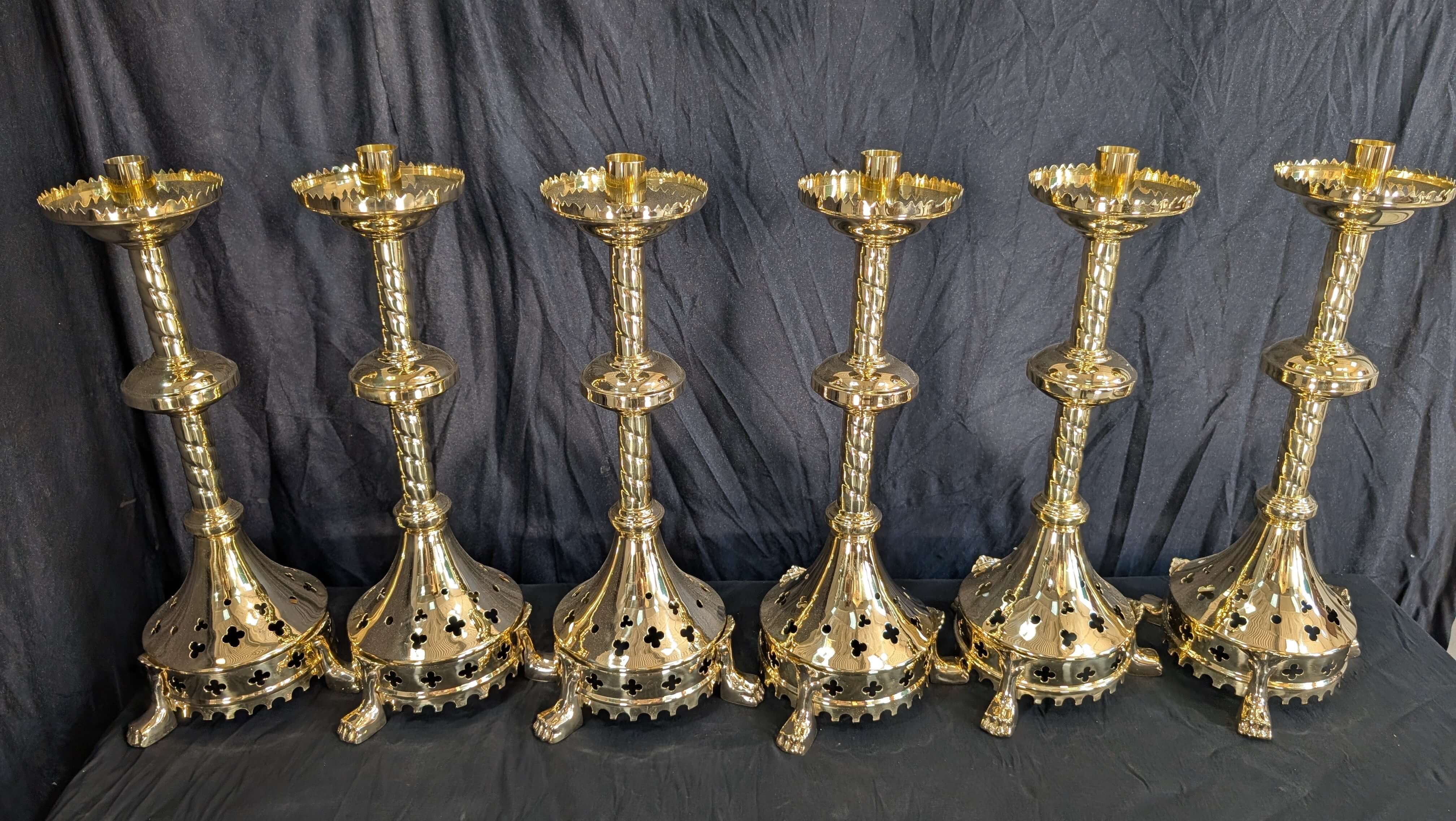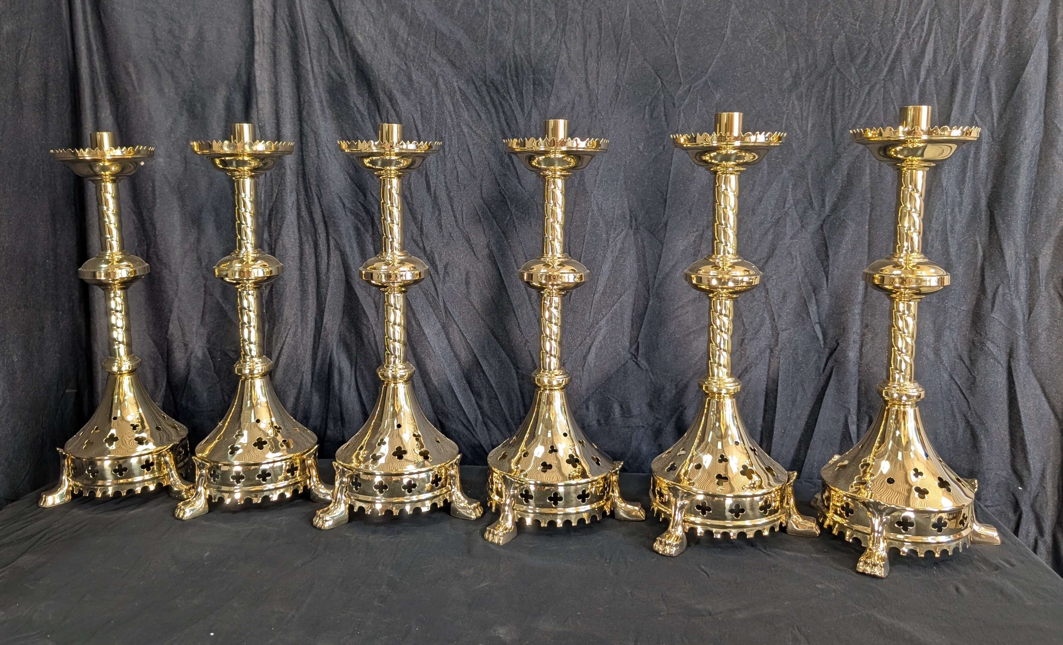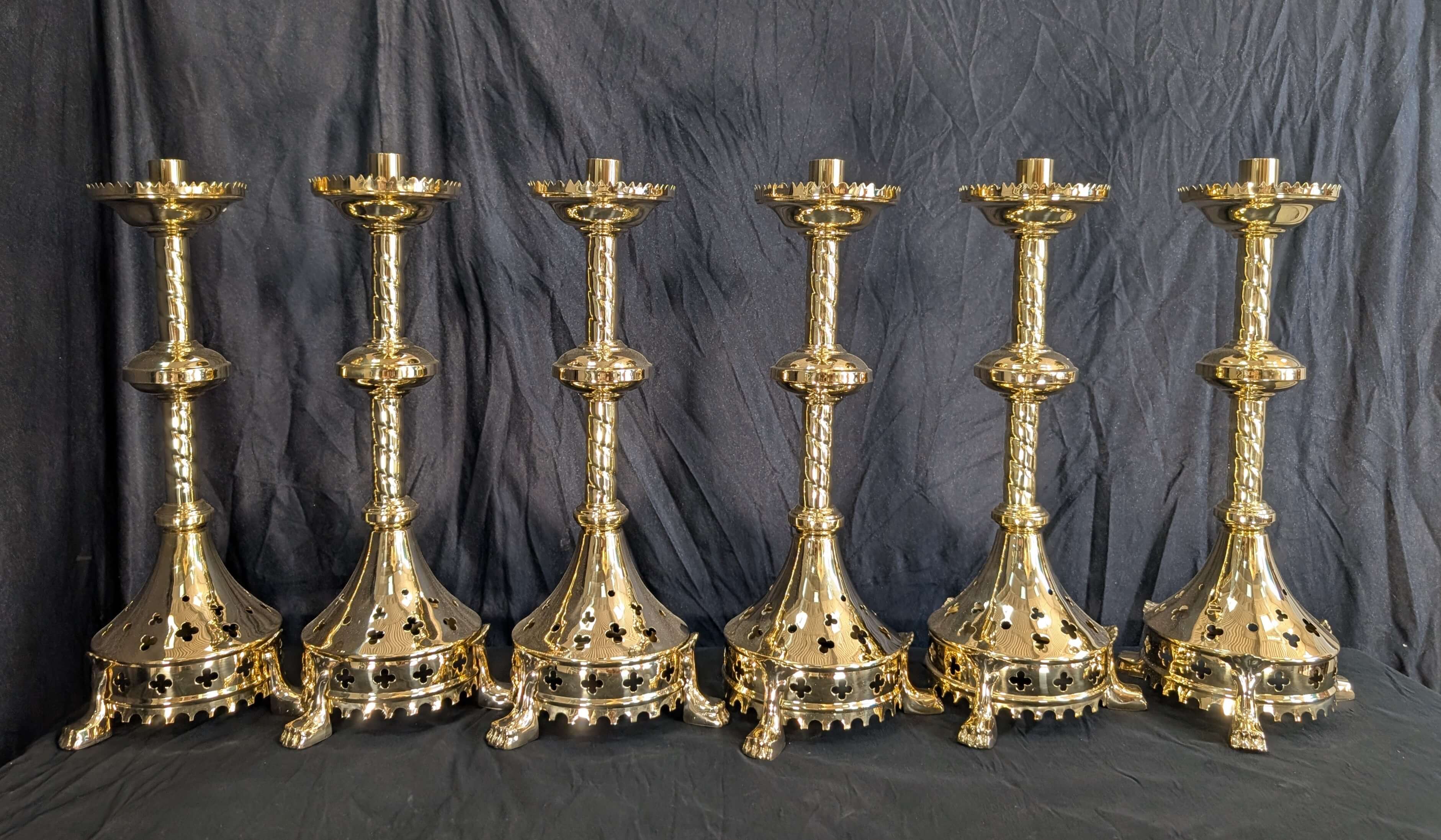 Our product shown on this page Gothic Influenced All Brass ‘Big 6’ Altar Candlesticks with Lion Claw Feet RESERVED is currently available for hire.