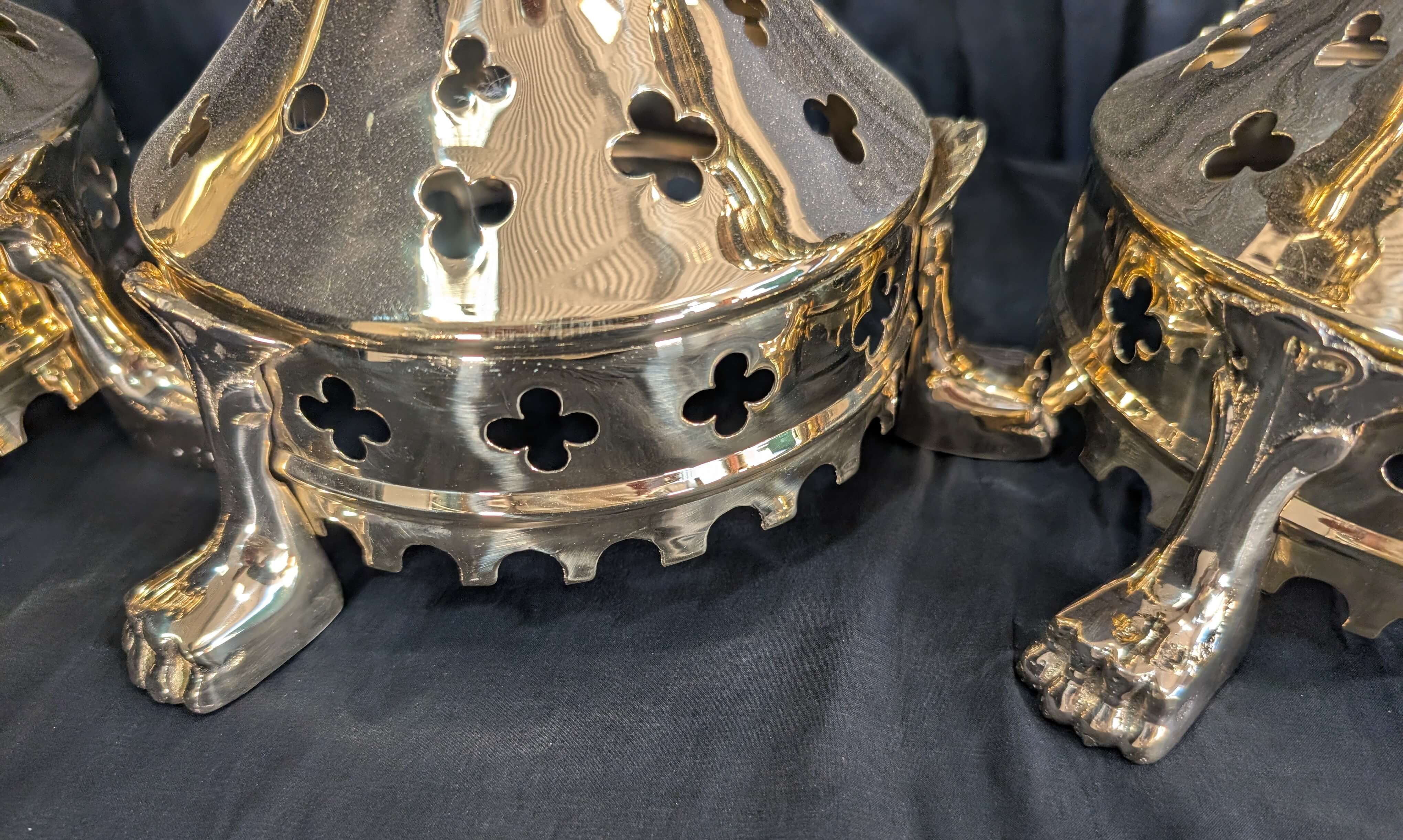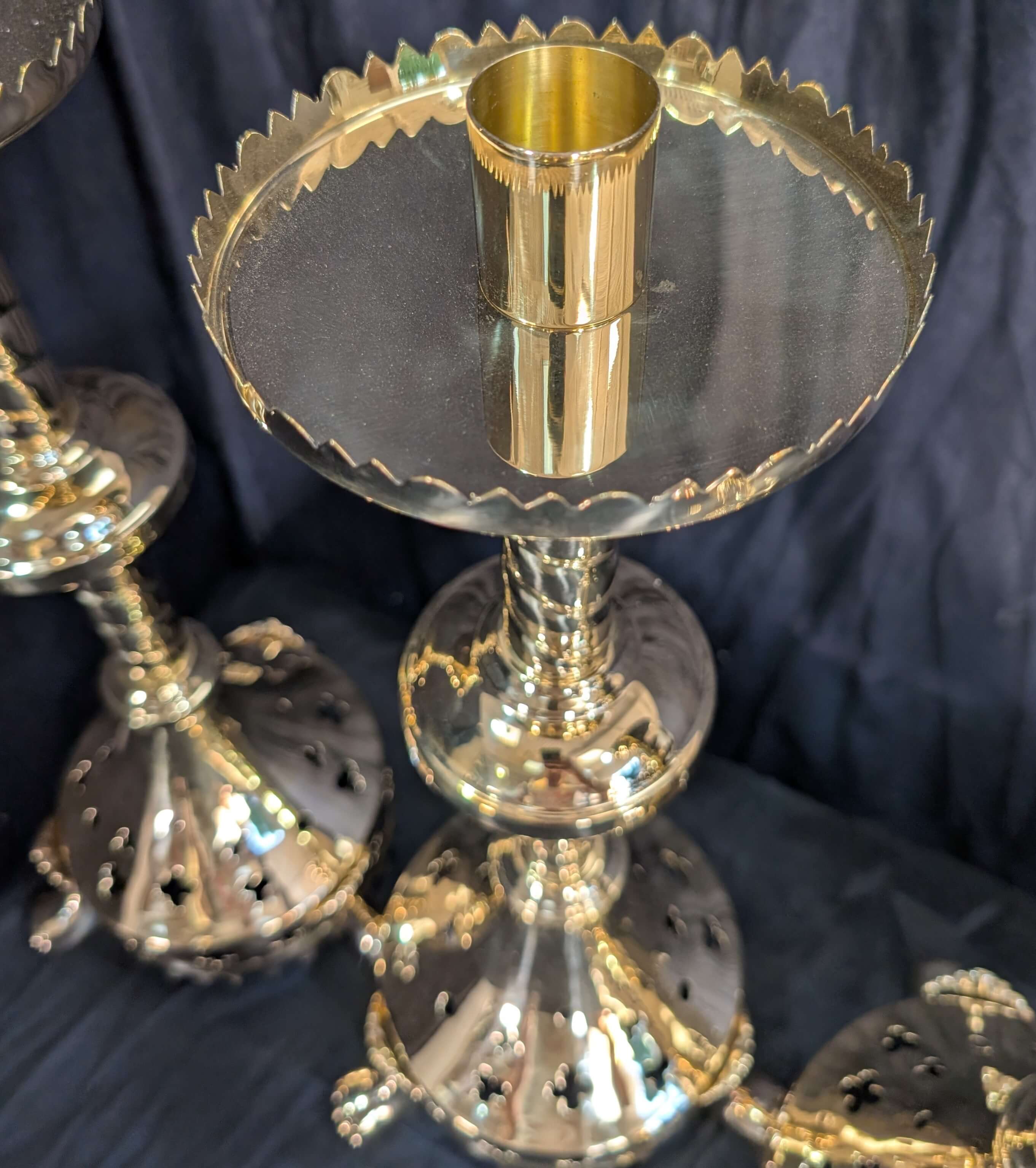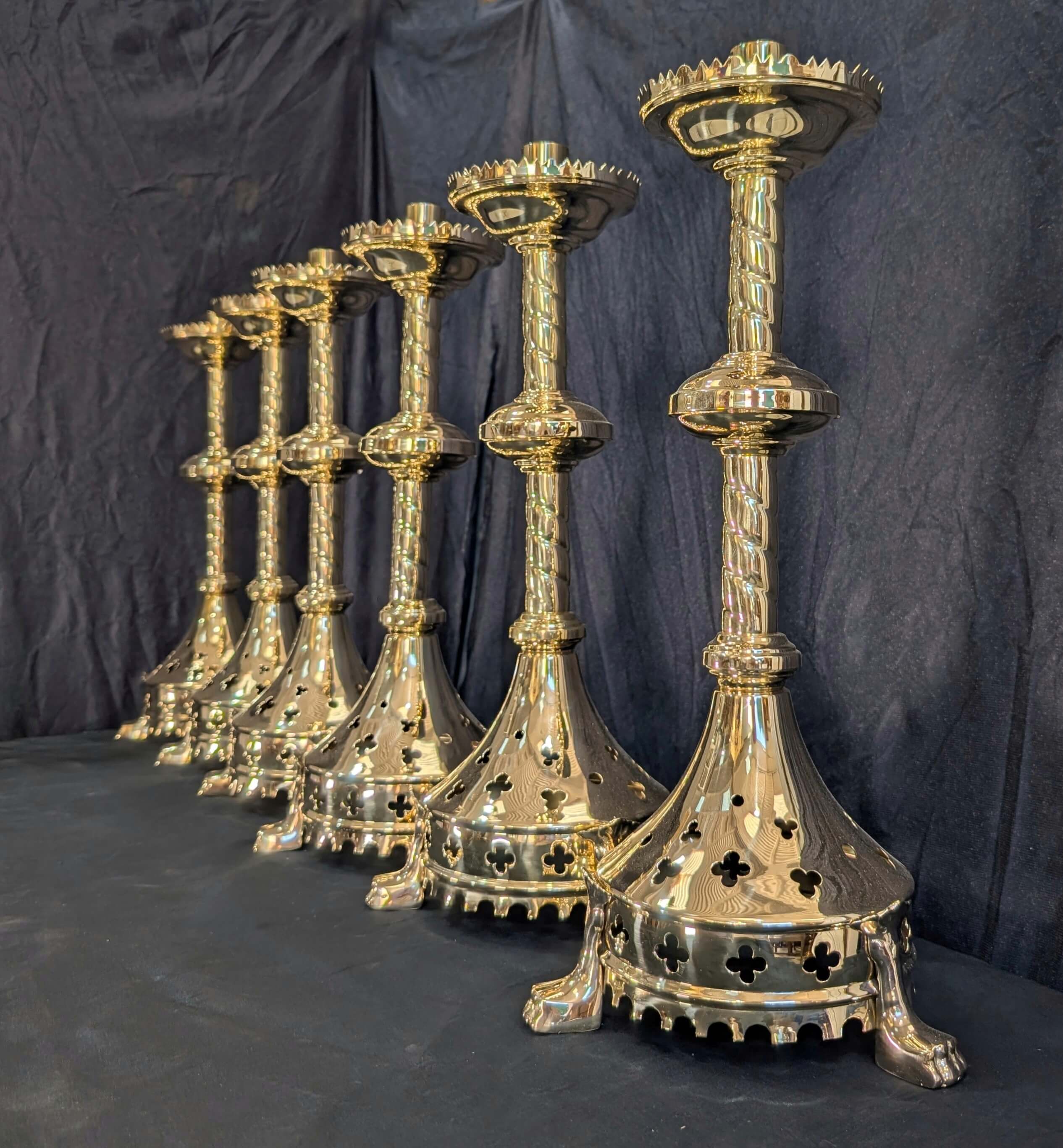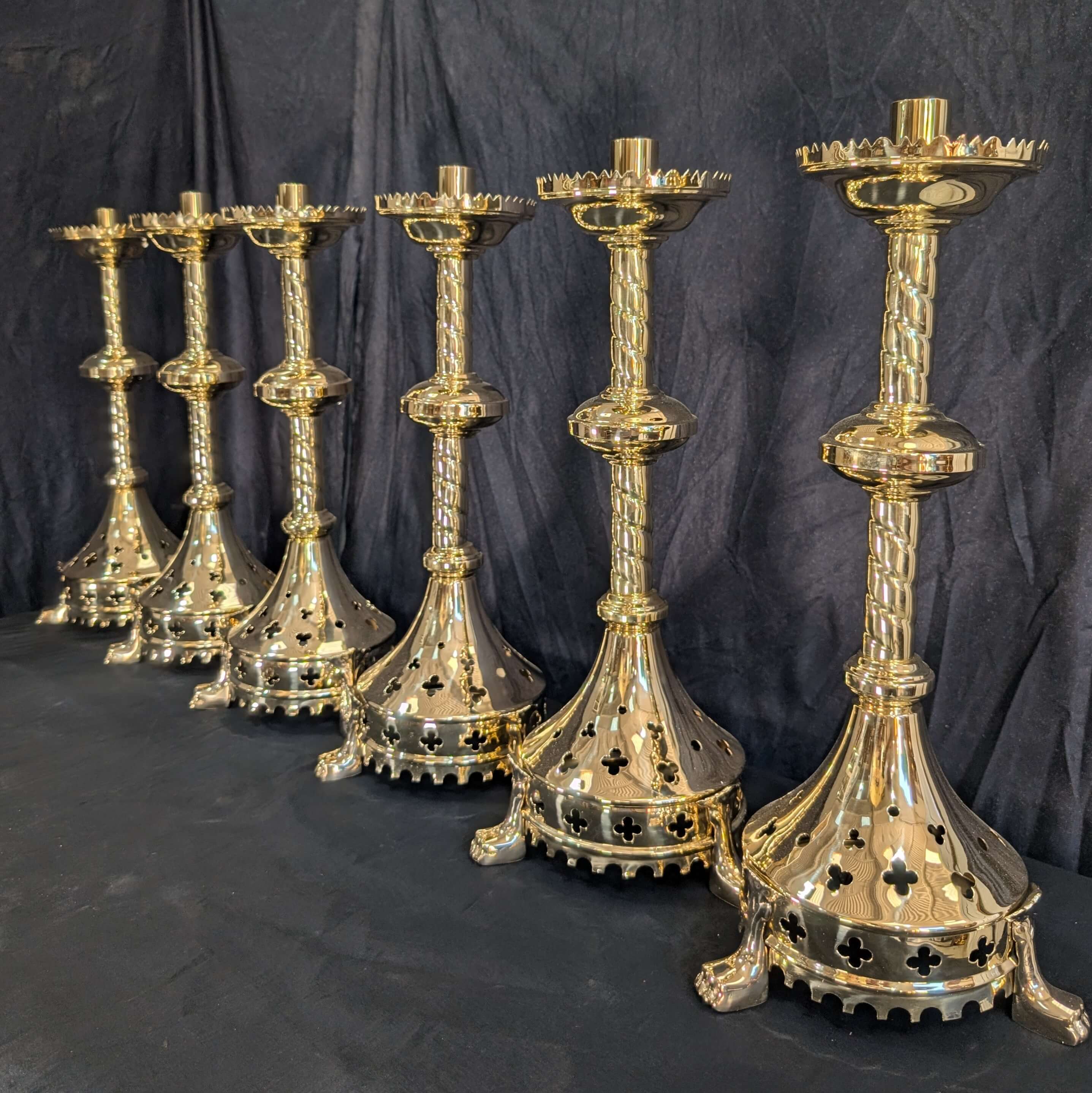 Our product shown on this page Gothic Influenced All Brass ‘Big 6’ Altar Candlesticks with Lion Claw Feet RESERVED is currently available for hire.