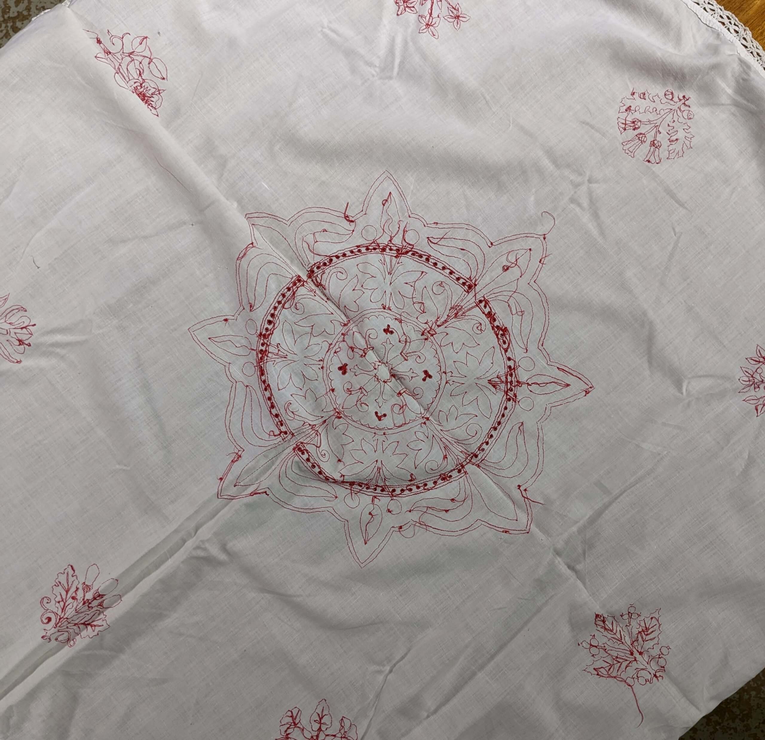 Our product shown on this page Gothic Inspired Circular Embroidered Altar Cloth (SOLD) is currently available for hire.