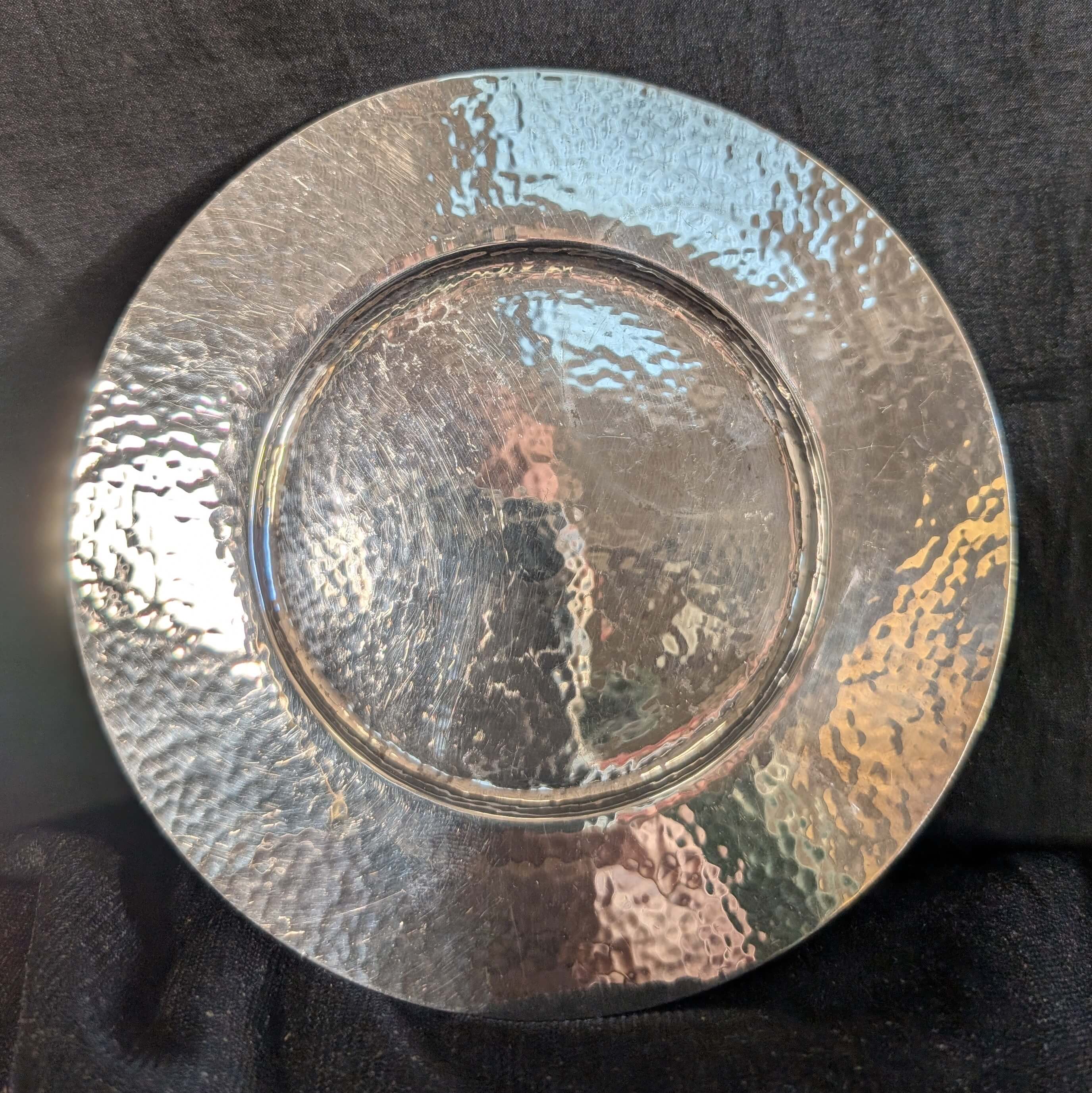 Our product shown on this page Hammered Solid Silver 1956 Vintage London Paten Plate (SOLD) is currently available for hire.