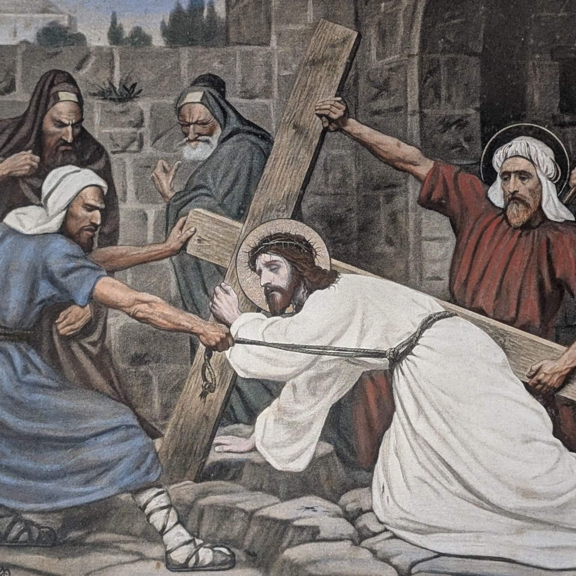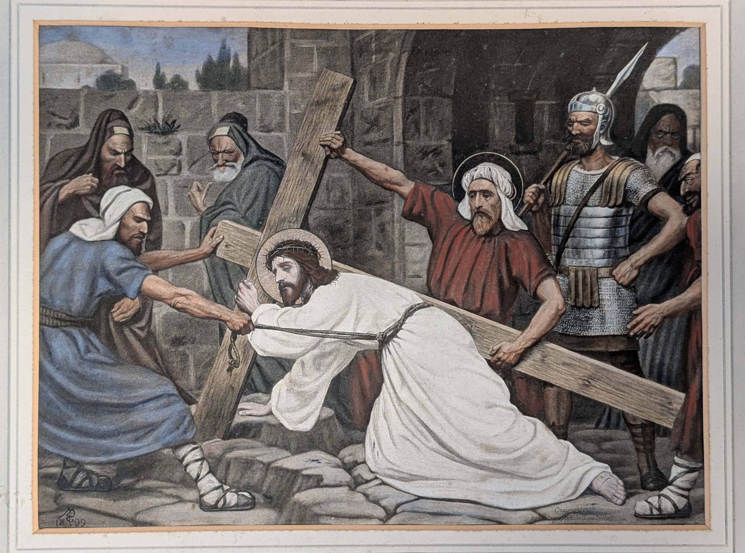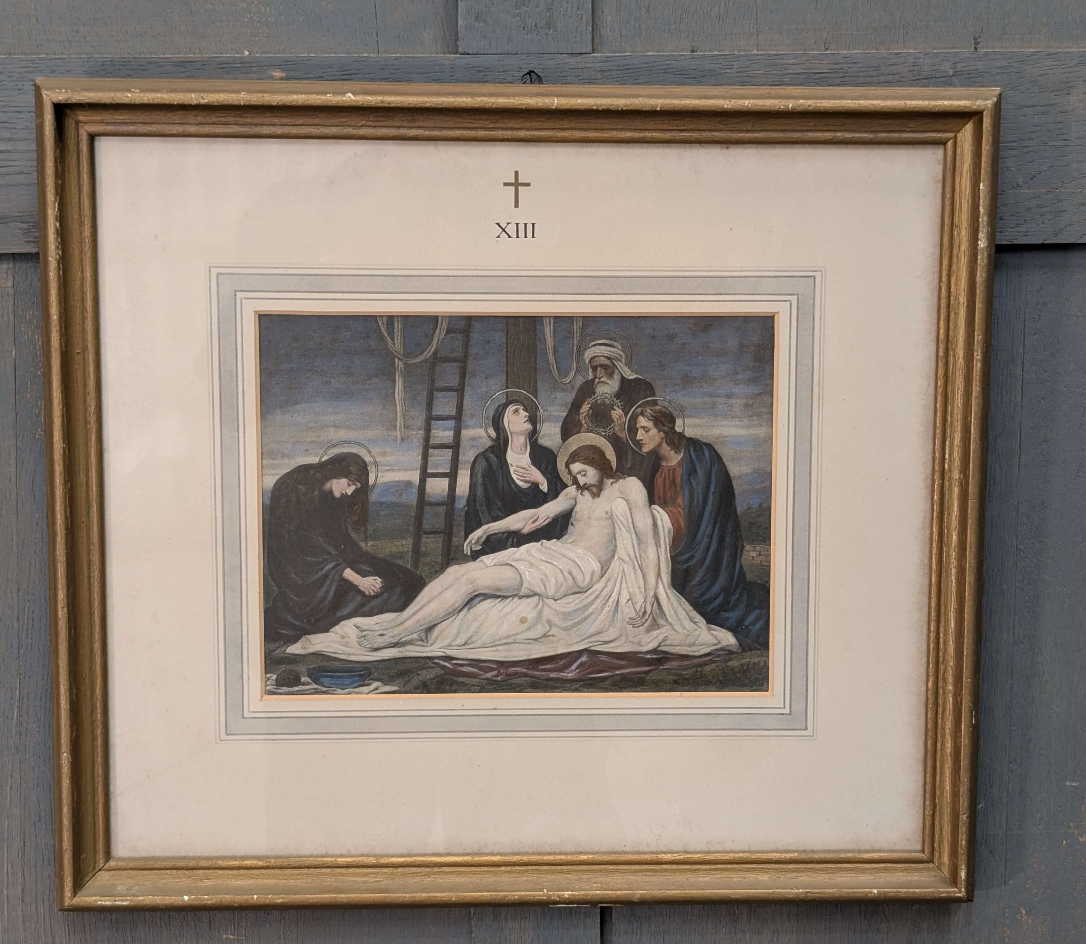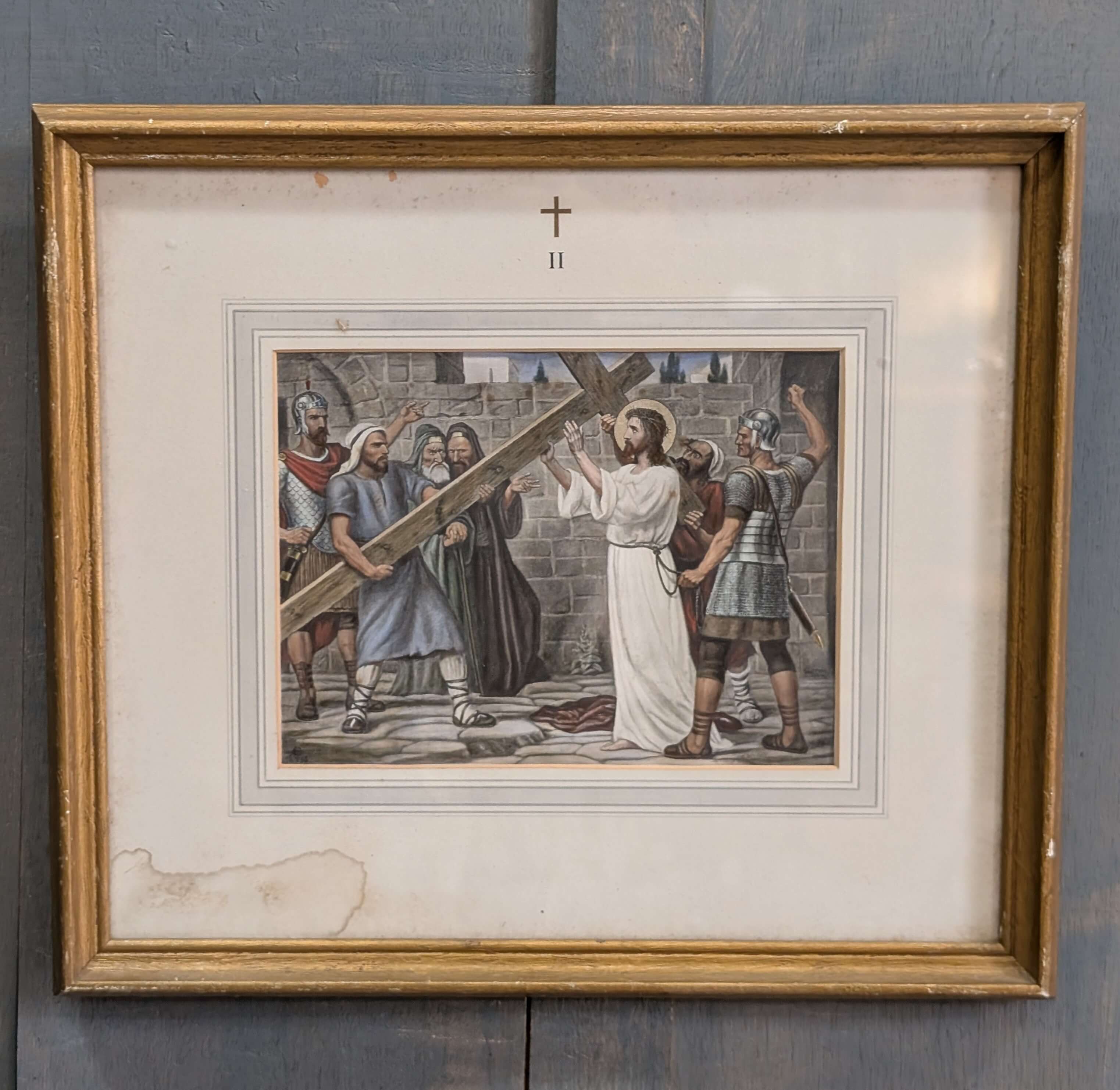 Our product shown on this page Hand Coloured Framed 1900’s High Quality German Set Of Stations of the Cross is currently available for hire.