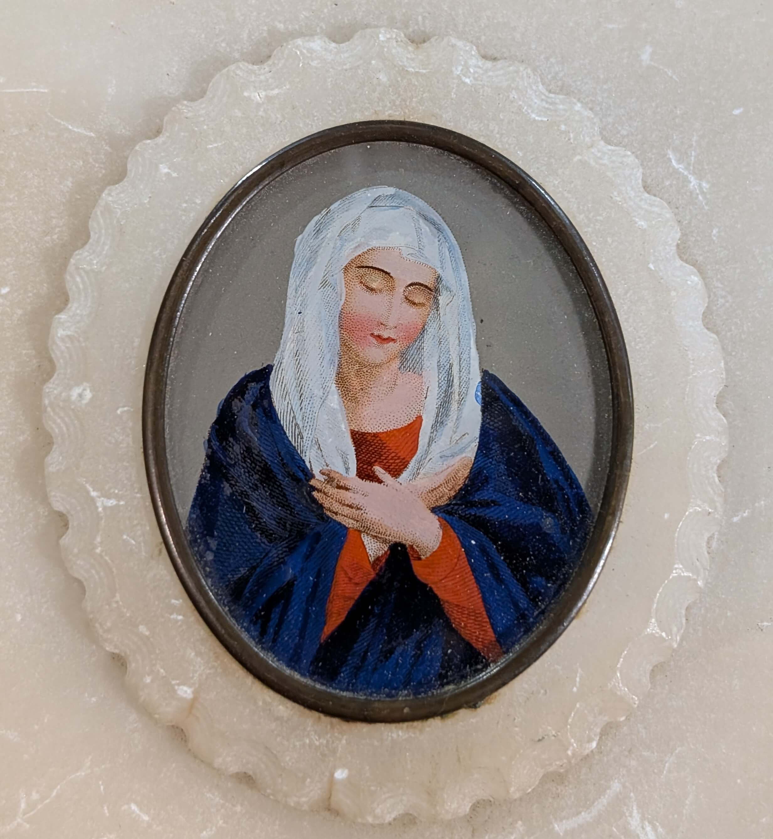 Our product shown on this page Handpainted Miniature of Blessed Virgin Mary in Alabaster Frame is currently available for hire.