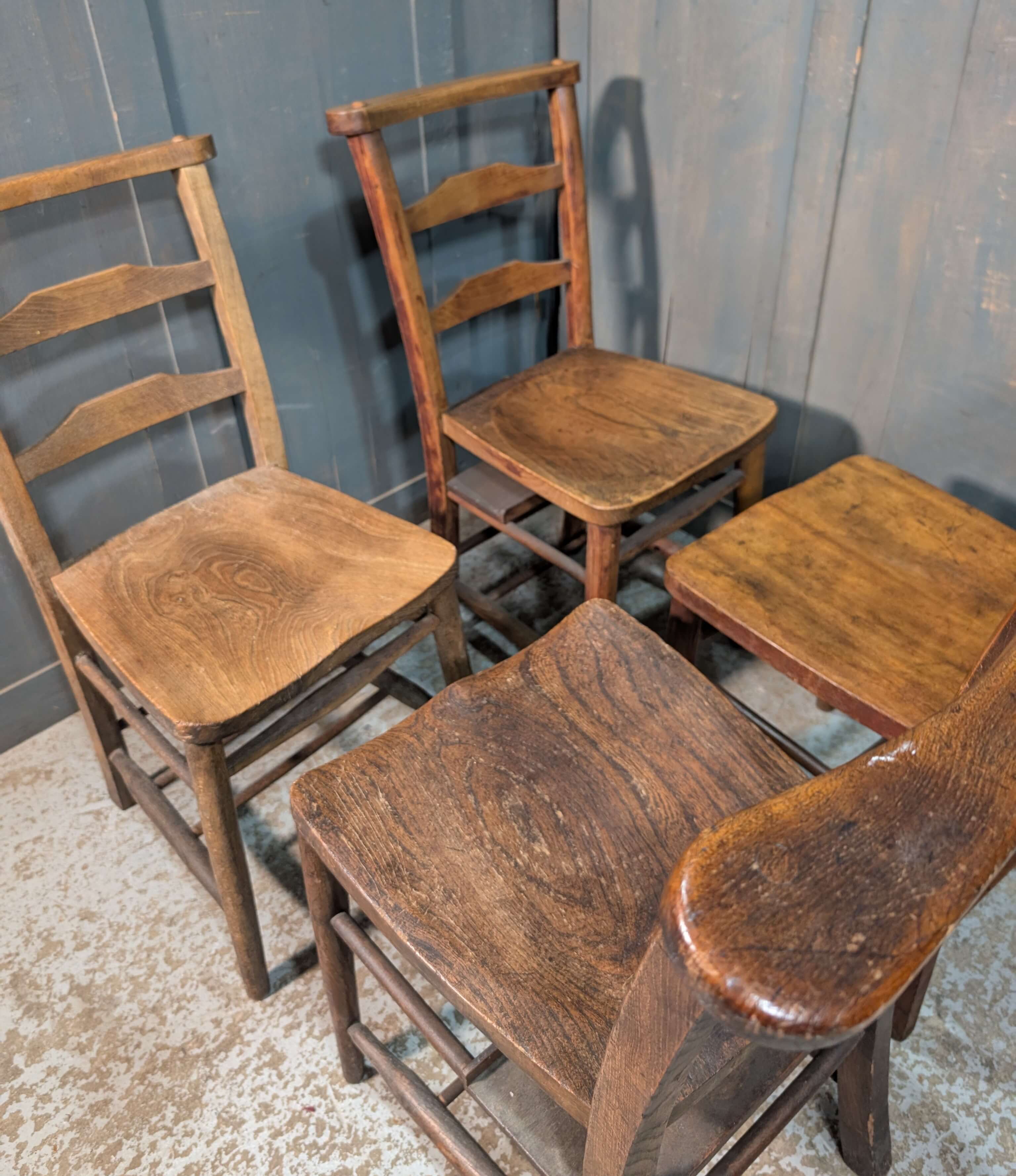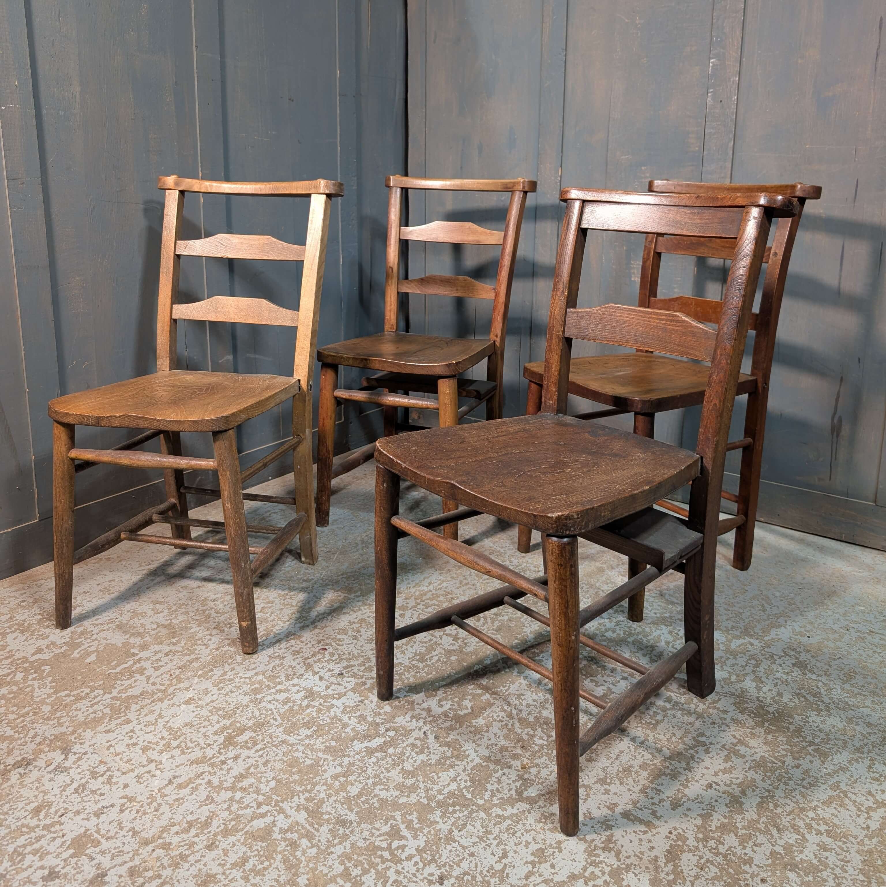 Our product shown on this page Harlequin Set of 4 Antique Ladderback Church Chapel Chairs is currently available for hire.