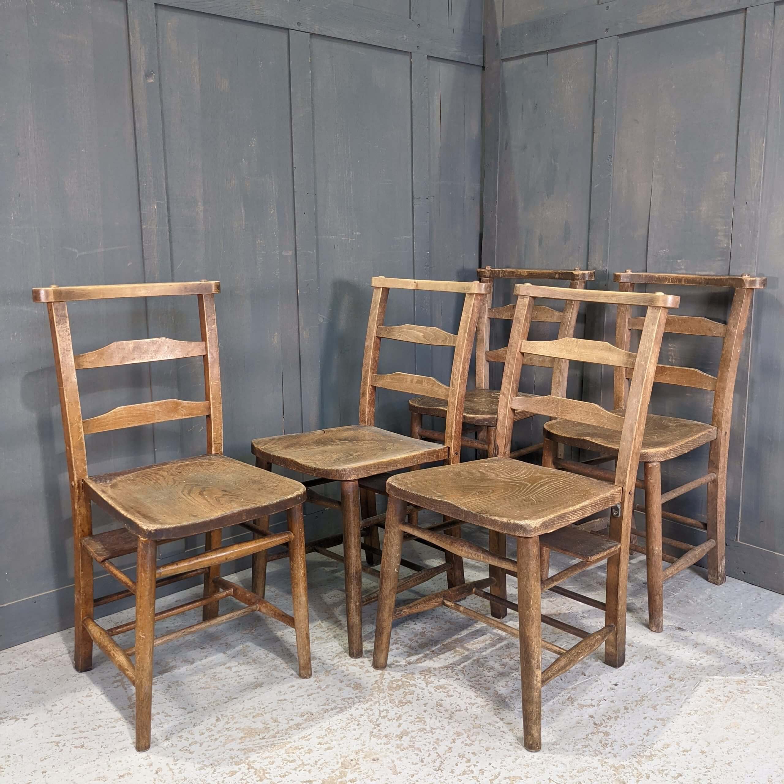 Our product shown on this page Harlequin Set of 5 Dimple Top Ladderback Elm & Beech Church Chapel Chairs IV (SOLD) is currently available for hire.