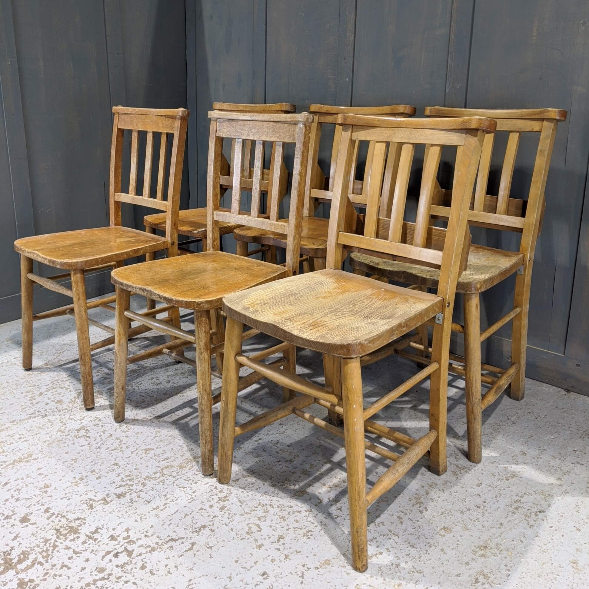 Our product shown on this page Harlequin Set of 6 Slatback Church Chapel Chairs ‘J’ (SOLD) is currently available for hire.