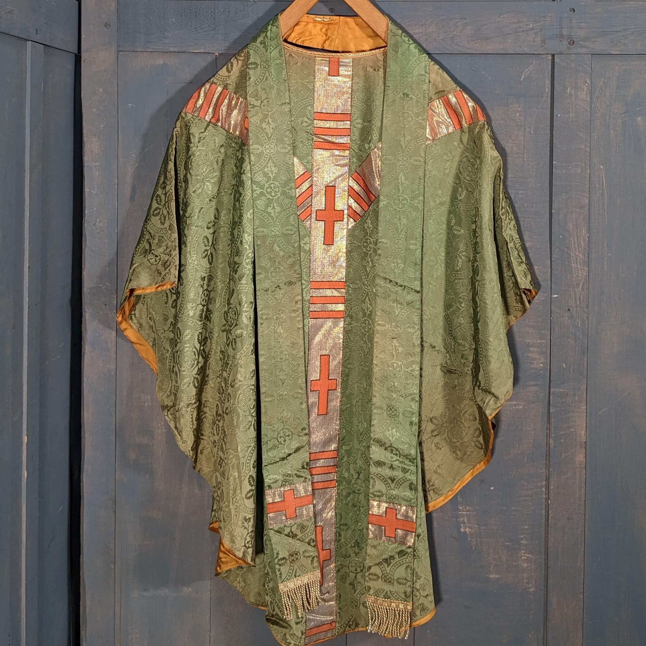 Hayes & Finch Vintage Silk Ochre Green & Gold Damask Chasuble with Stole (SOLD)