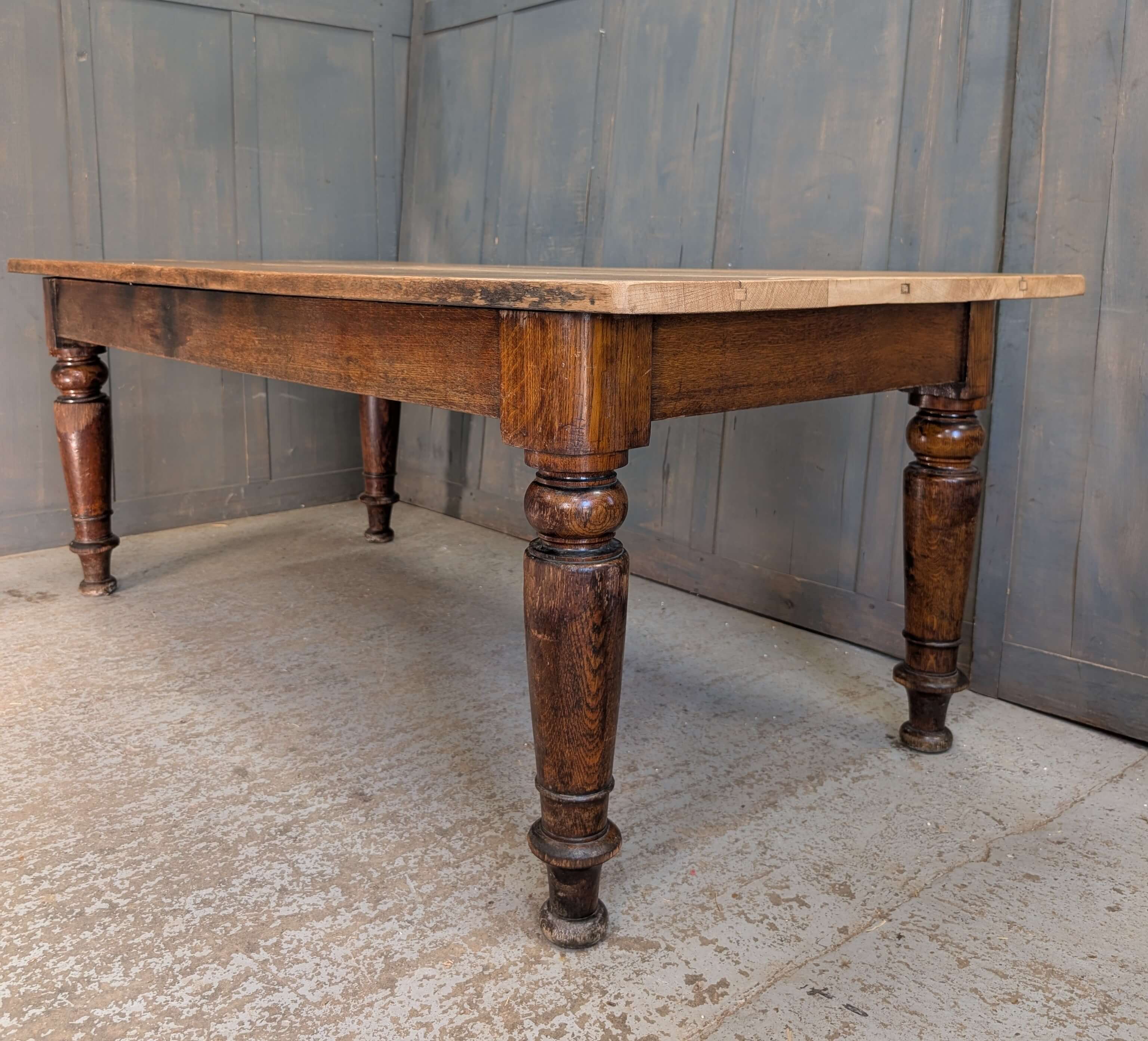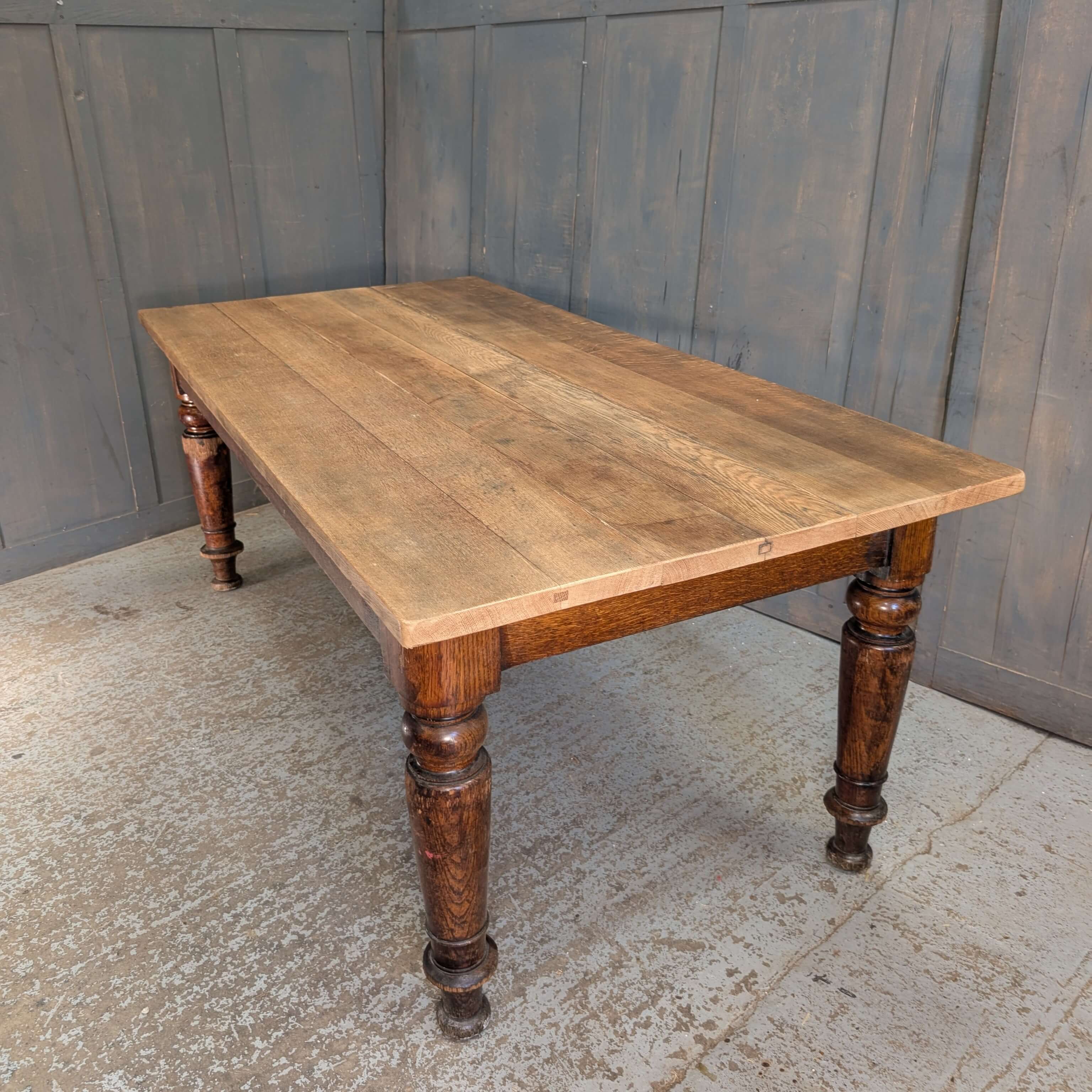 Our product shown on this page Heavy Large & Long Solid Oak Plank Kitchen Table from St Katharine Cree Church London is currently available for hire.