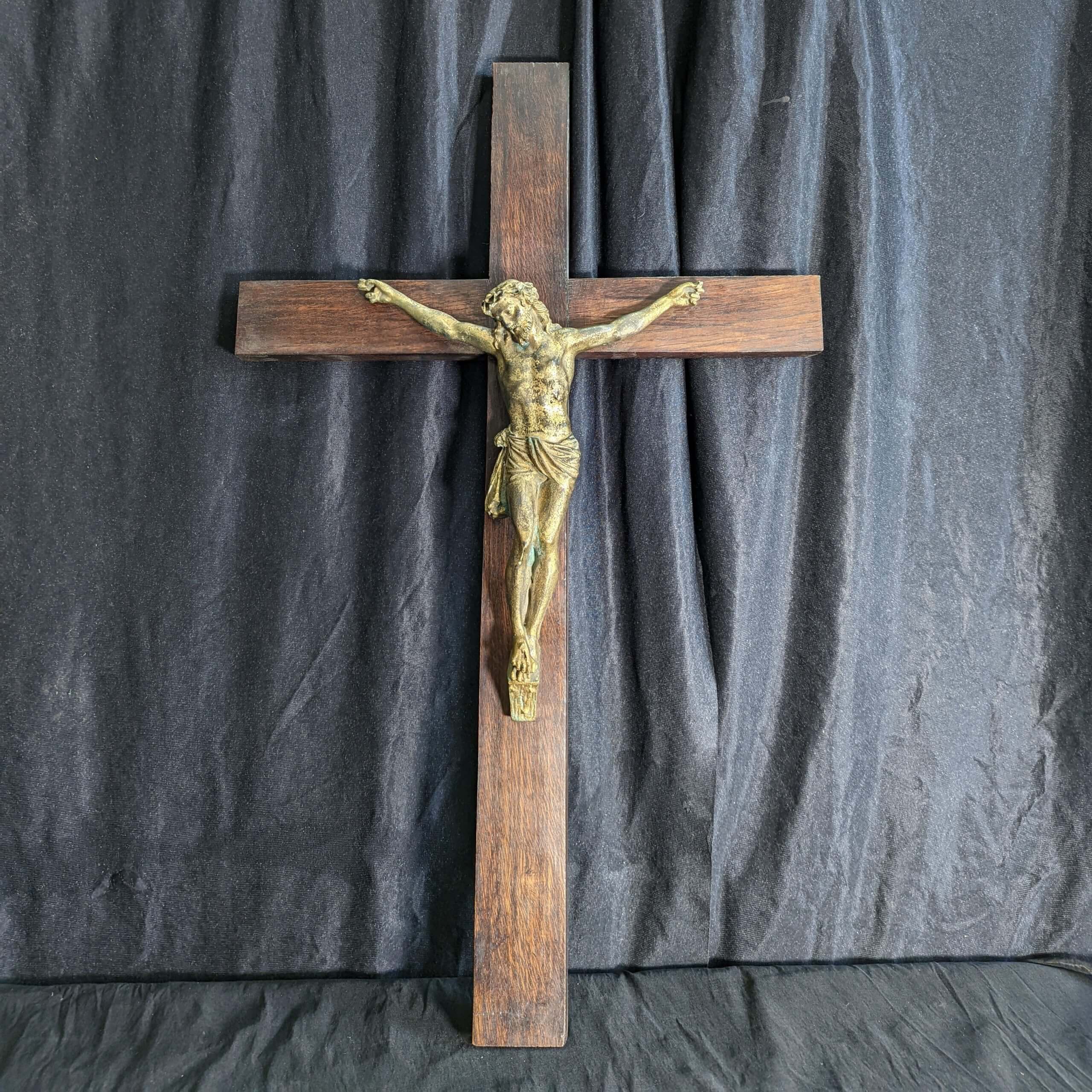 Our product shown on this page Heavy & Large Vintage Gold Coloured Bronze & Oak Crucifix (SOLD) is currently available for hire.