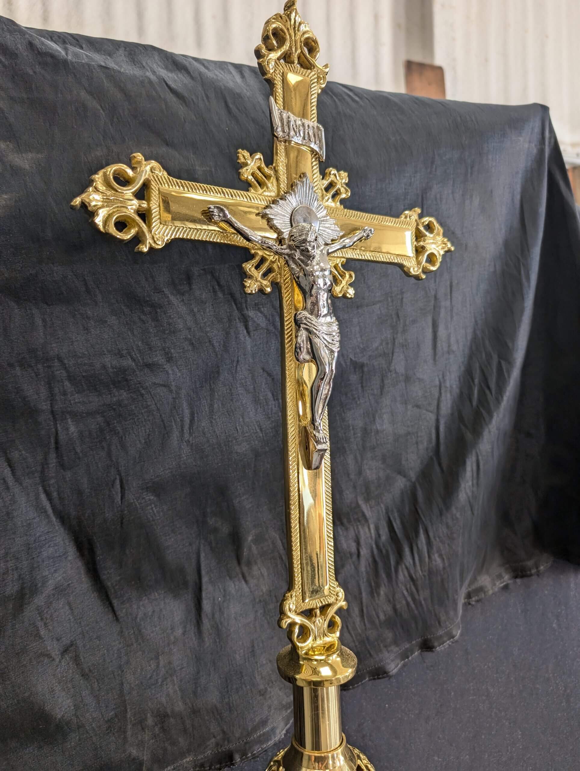 Our product shown on this page Heavy Solid Brass Ornate Processional Cross with Stand is currently available for hire.