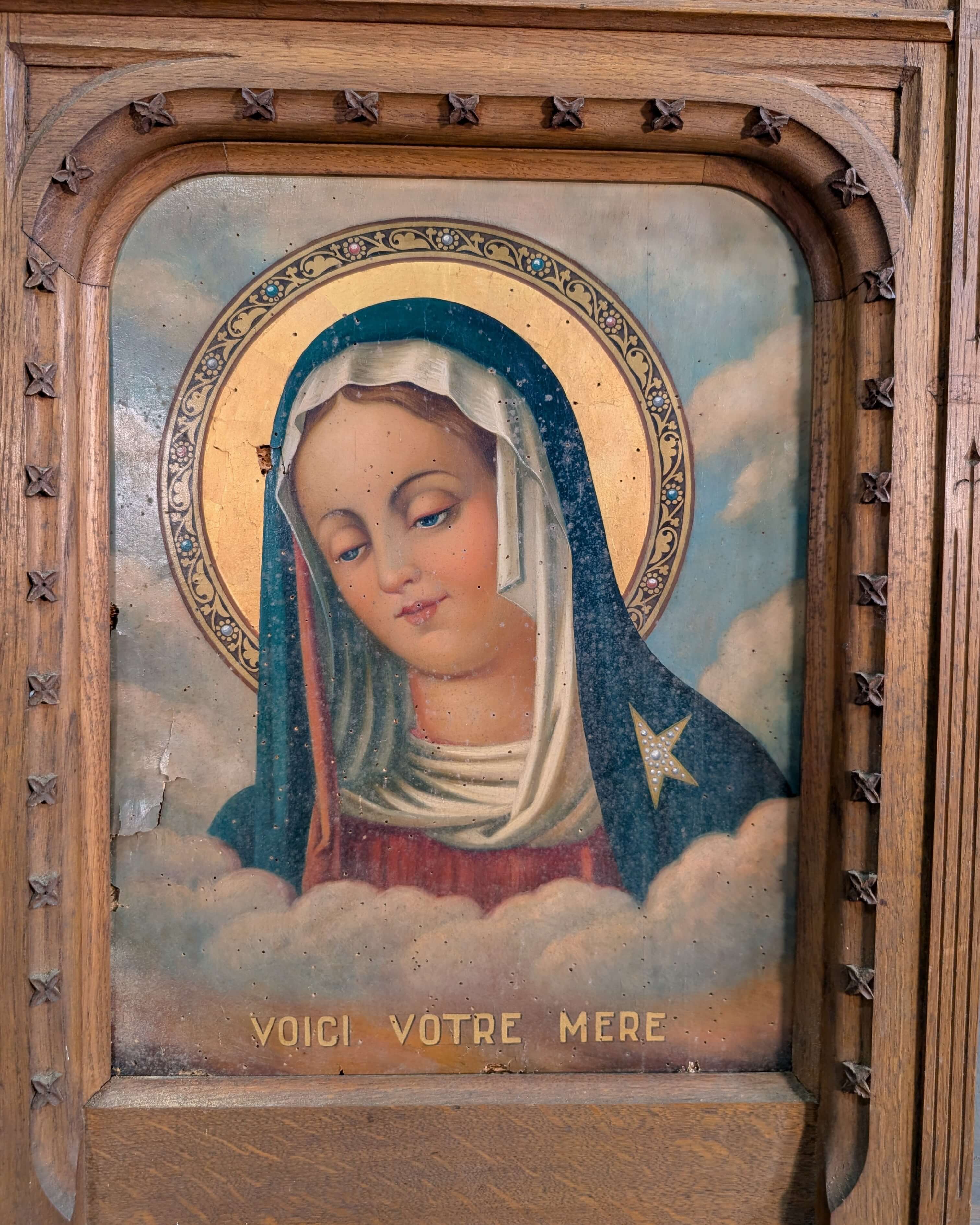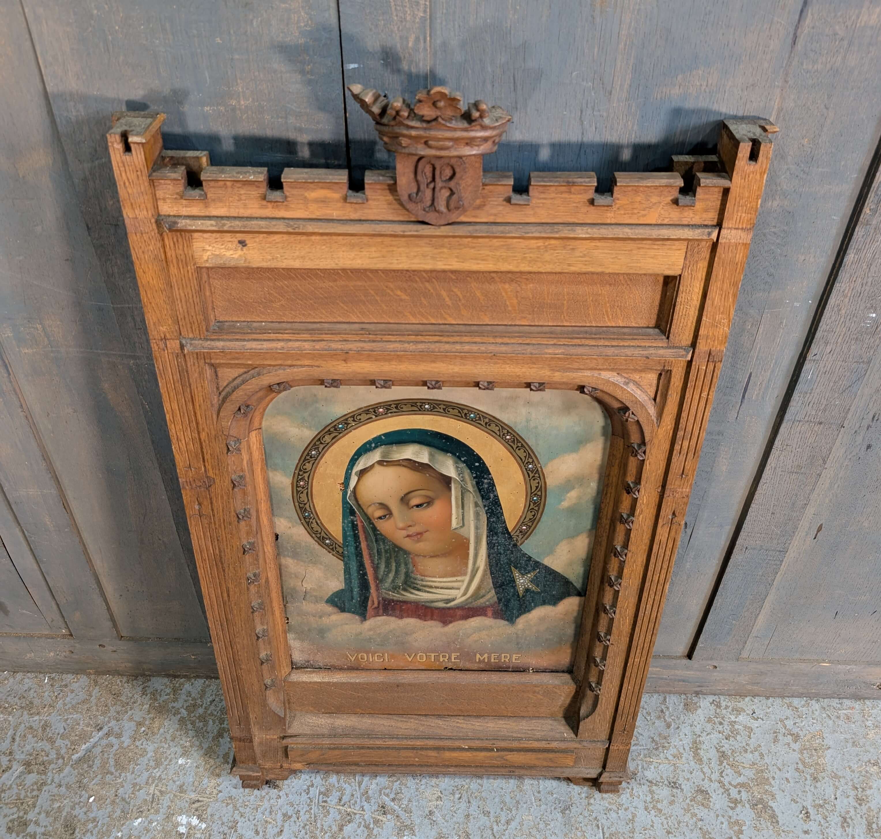 Our product shown on this page ‘Here is your Mother’ Antique Oak Framed Centrepiece with Oil Painting of the Holy Virgin is currently available for hire.