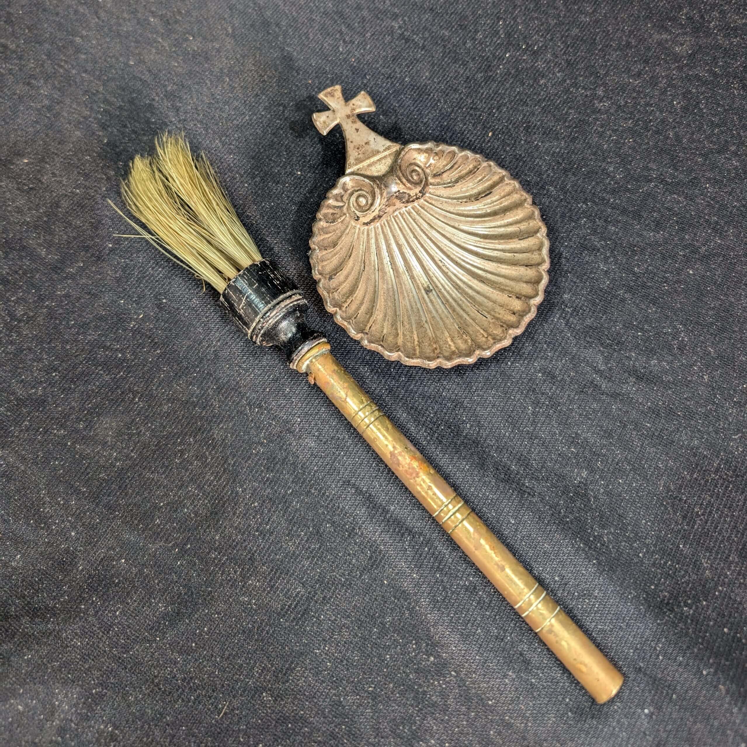 Our product shown on this page Holy Water Shell Finger Worn and Aspergillum Brush (SOLD) is currently available for hire.