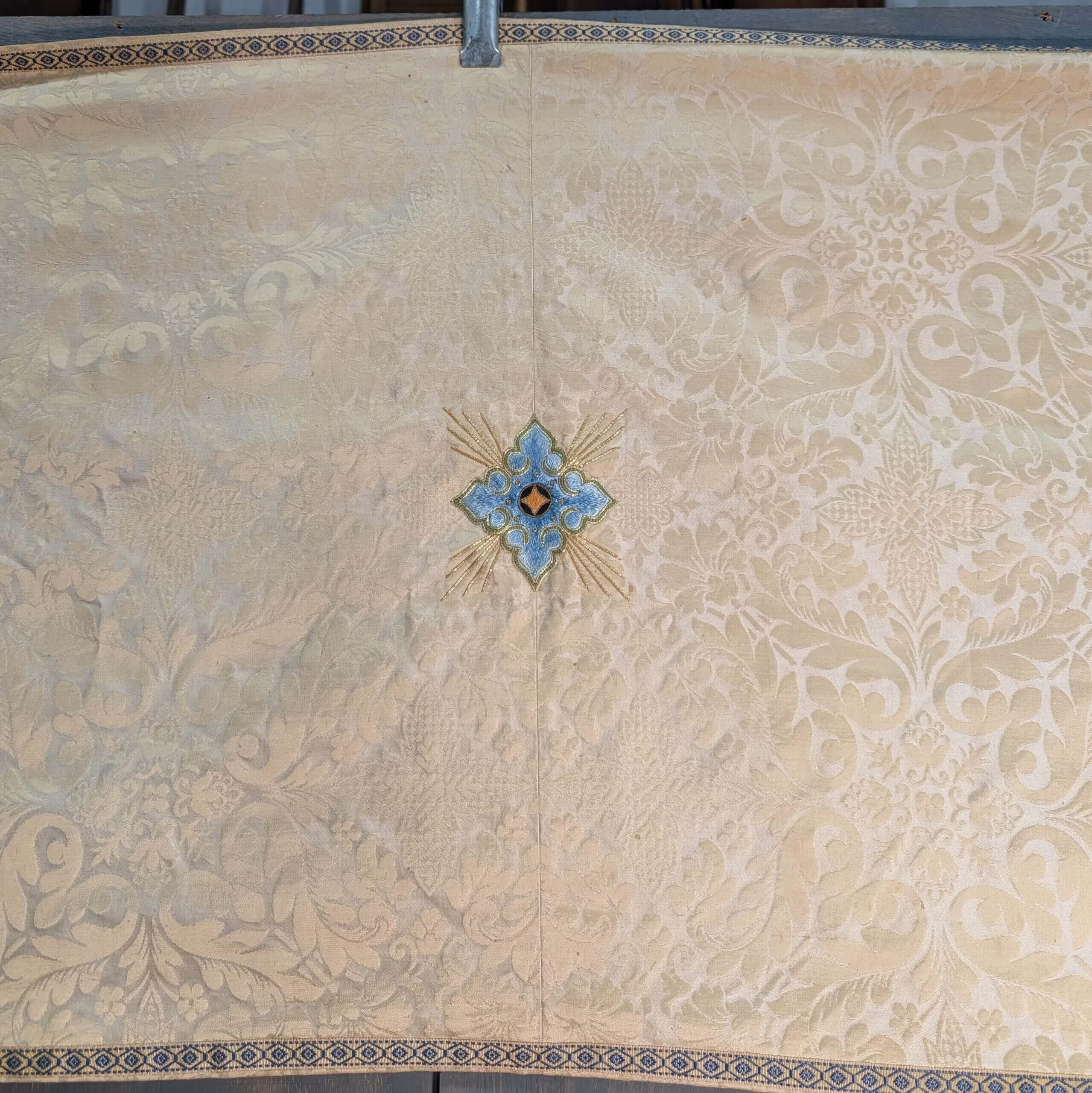 Humeral Veil in Ivory Damask Silk with Embroidered Blue Star (SOLD)